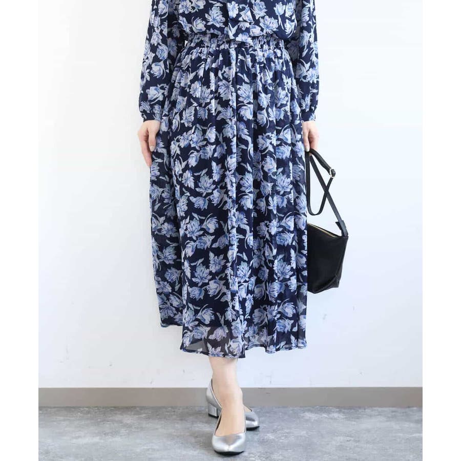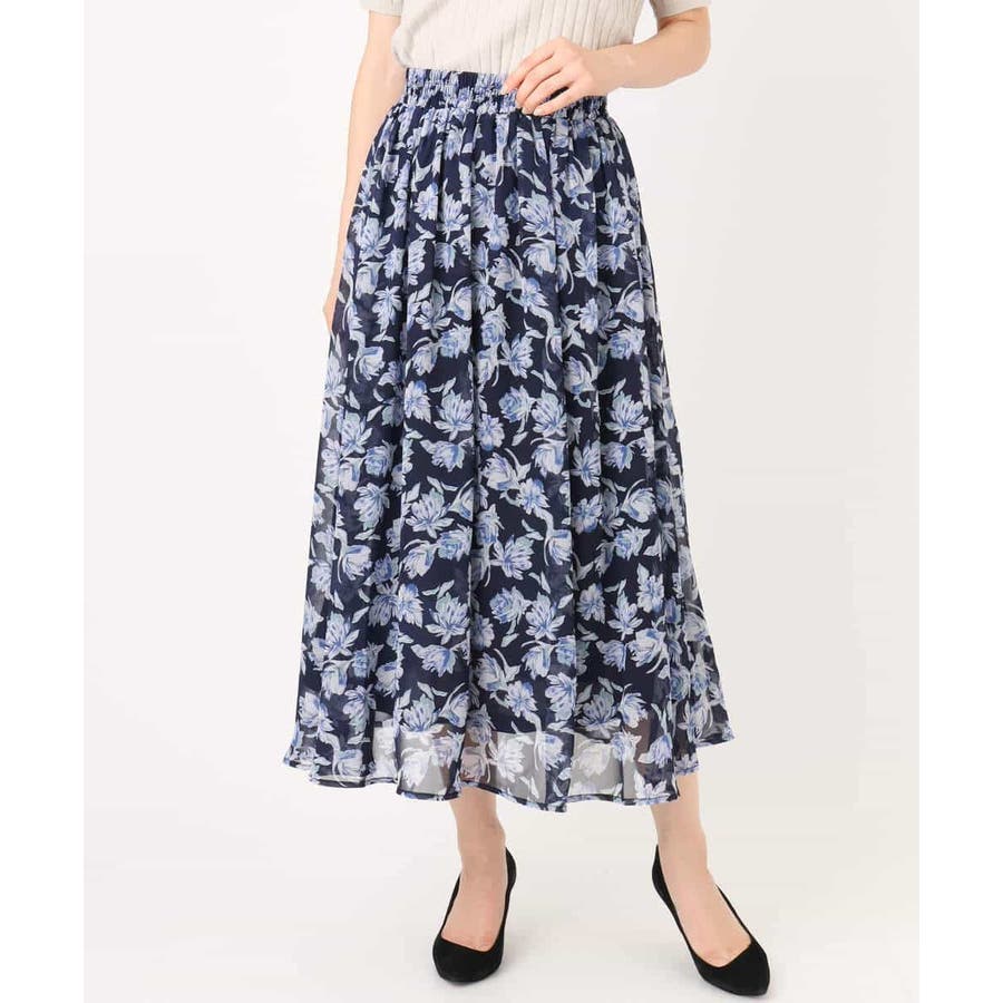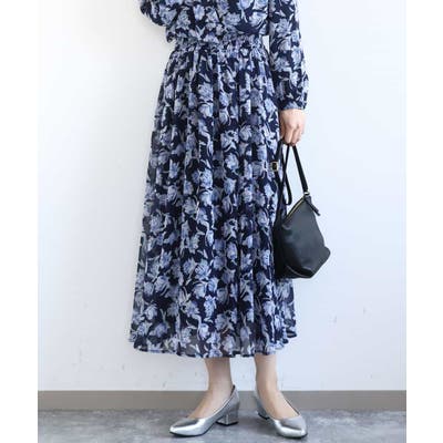 花柄シフォンスカート/洗える