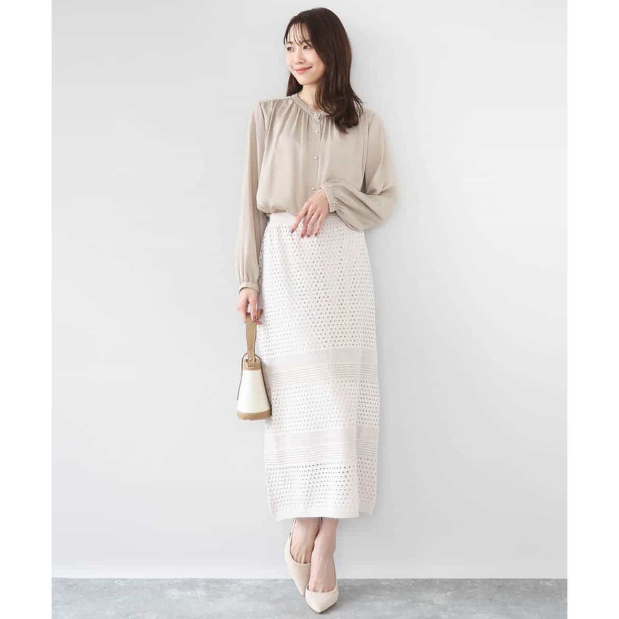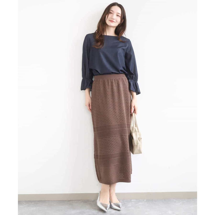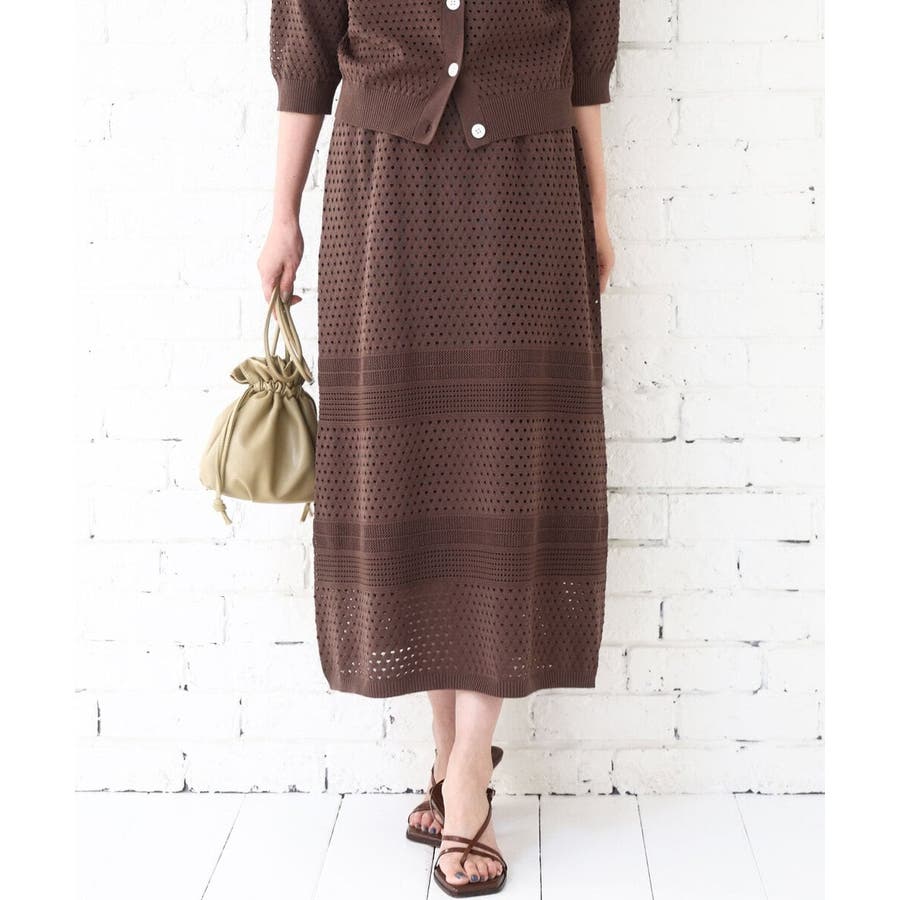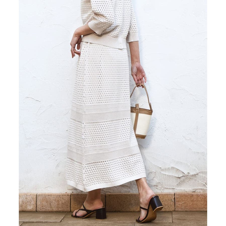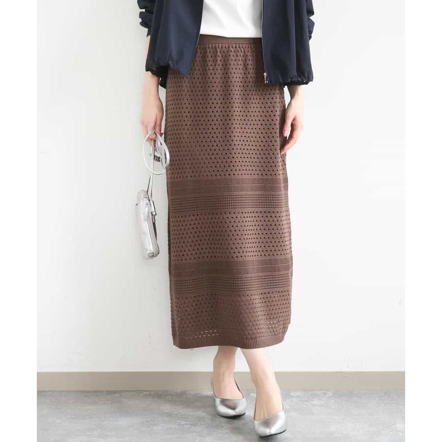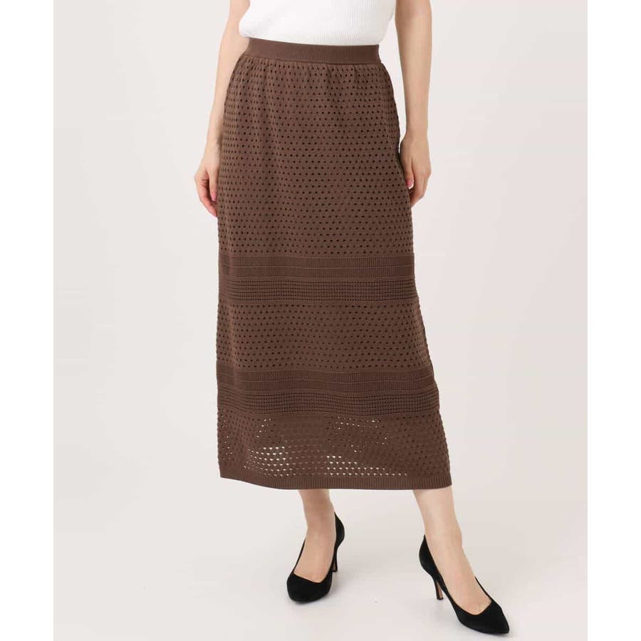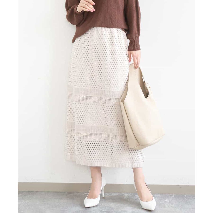 アイレット編みクロシェ風ニットスカート/洗える