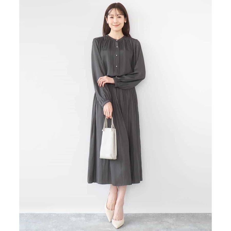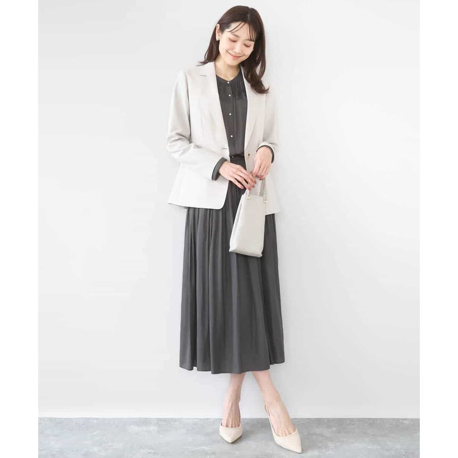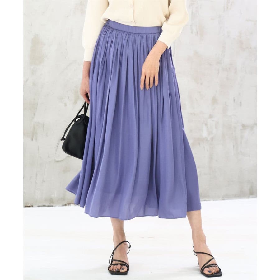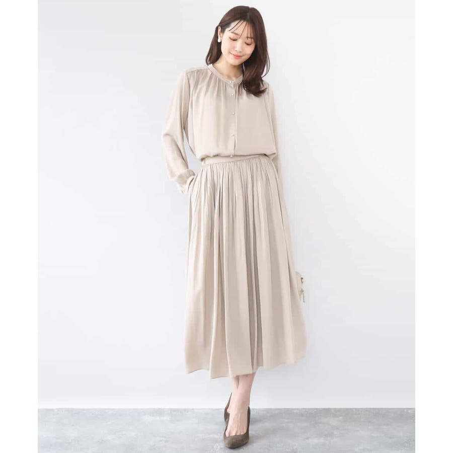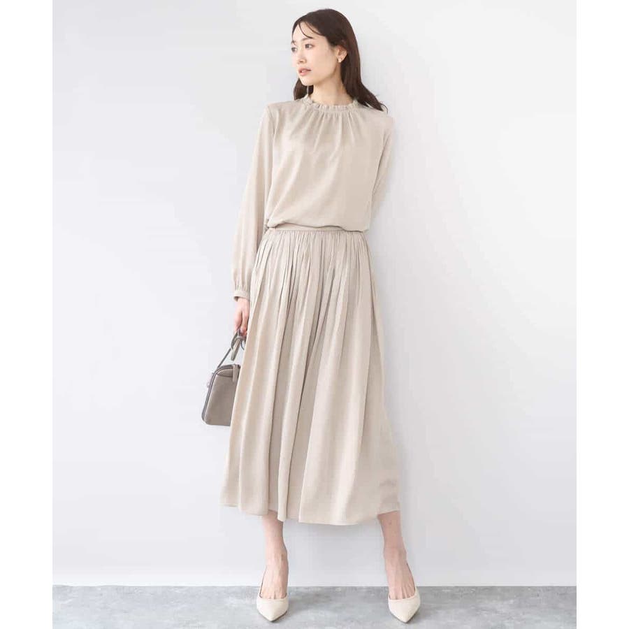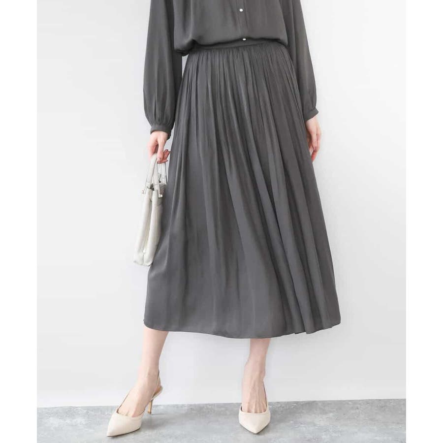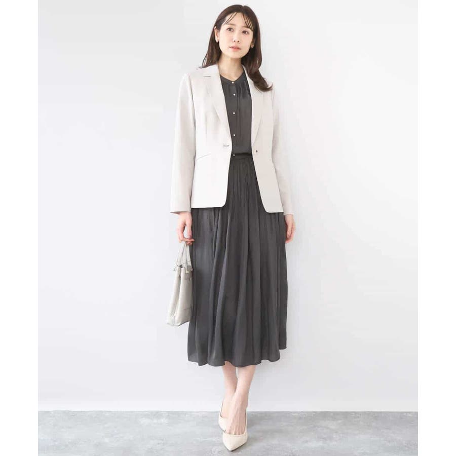 きれいな落ち感とさらりとした素材感にカジュアルすぎないきちんと見えのサテン素材を使用。ワッシャー消しプリーツ加工を入れ軽さのある素材は3シーズン長く着回し可能。UVカット機能付き素材です。
