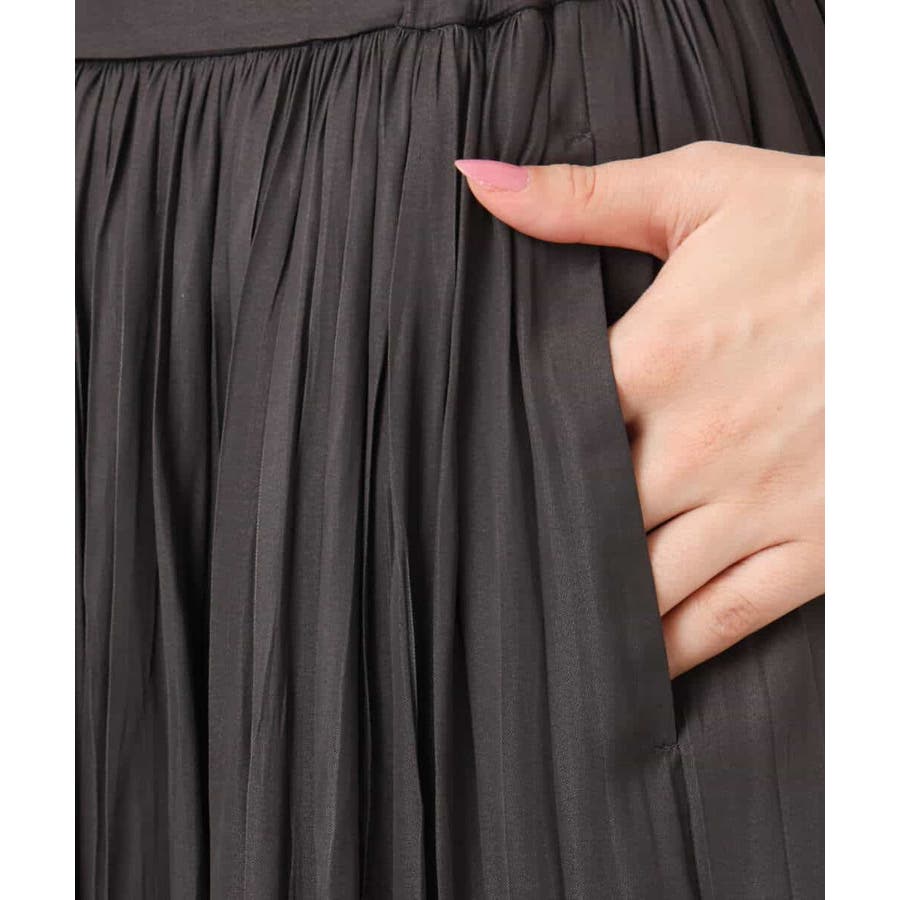 サテンプリーツスカート/UVカット/洗える