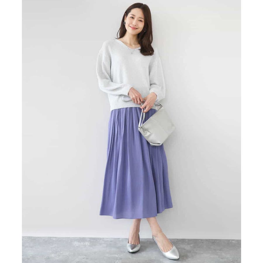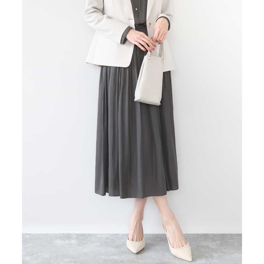 ブラウスをボトムにインしてきれいめに、Tシャツとさらっと合わせてカジュアルに。合わせるトップスや靴を選ばないボトムは汎用性◎。同素材のブラウスとセットアップでワンピース見えの着こなしも楽しめます。