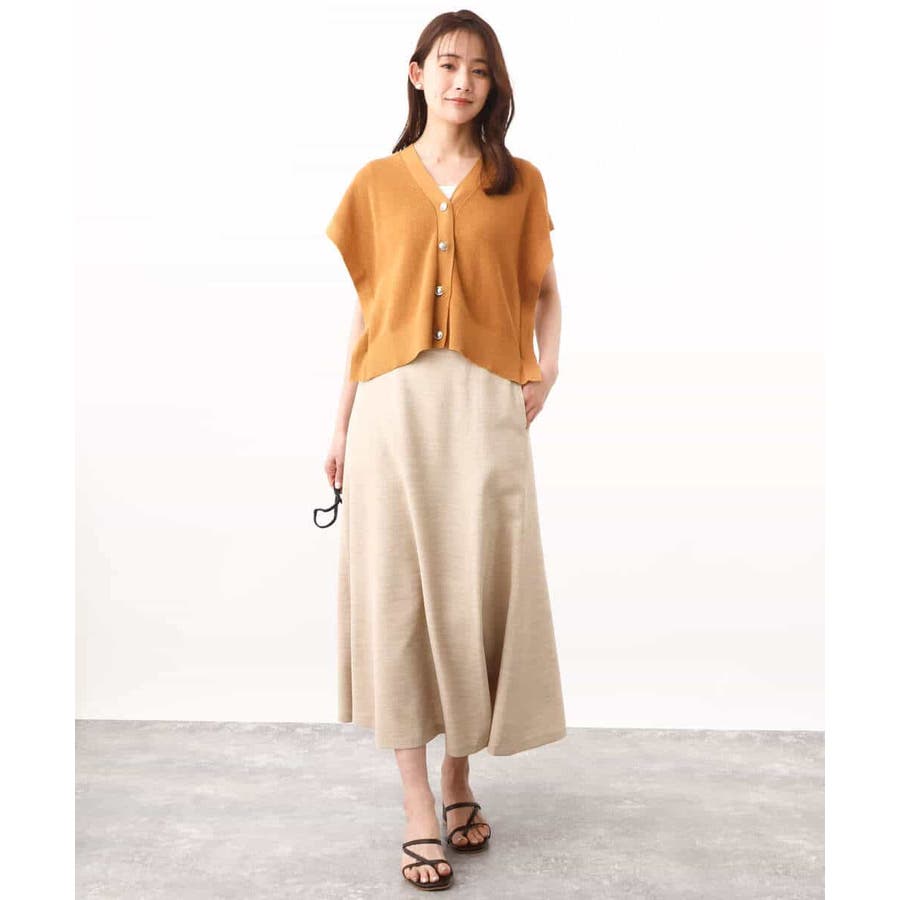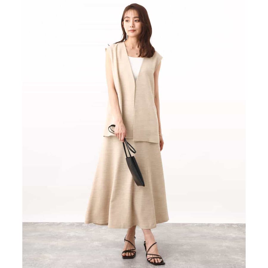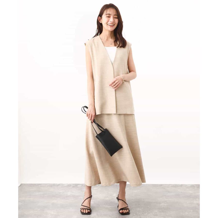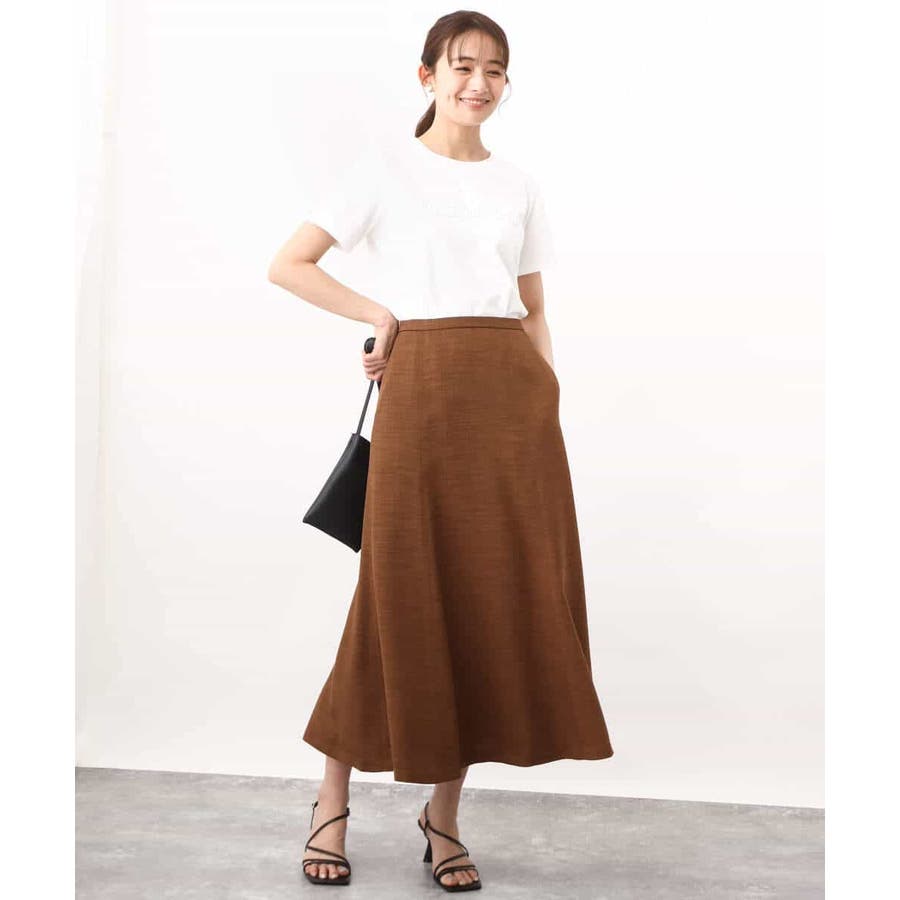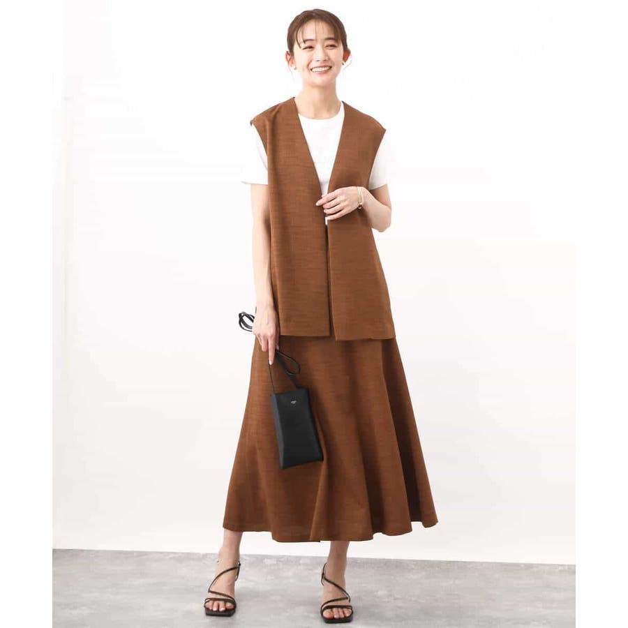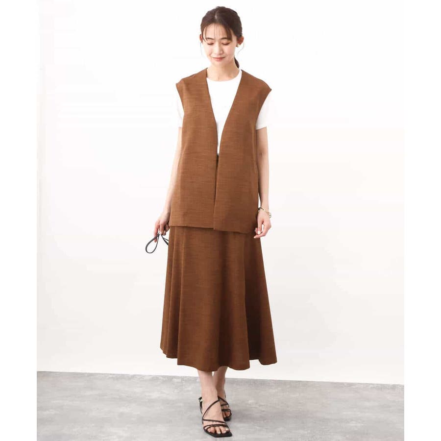 すっきりとしたマーメイドスカートは合わせるトップスを選びません。リネンライクな素材も相まり、トップス次第できれいめにもカジュアルにも楽しめるのが嬉しい。同素材のジレとセットアップでの着こなしもおすすめ。