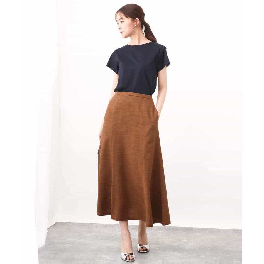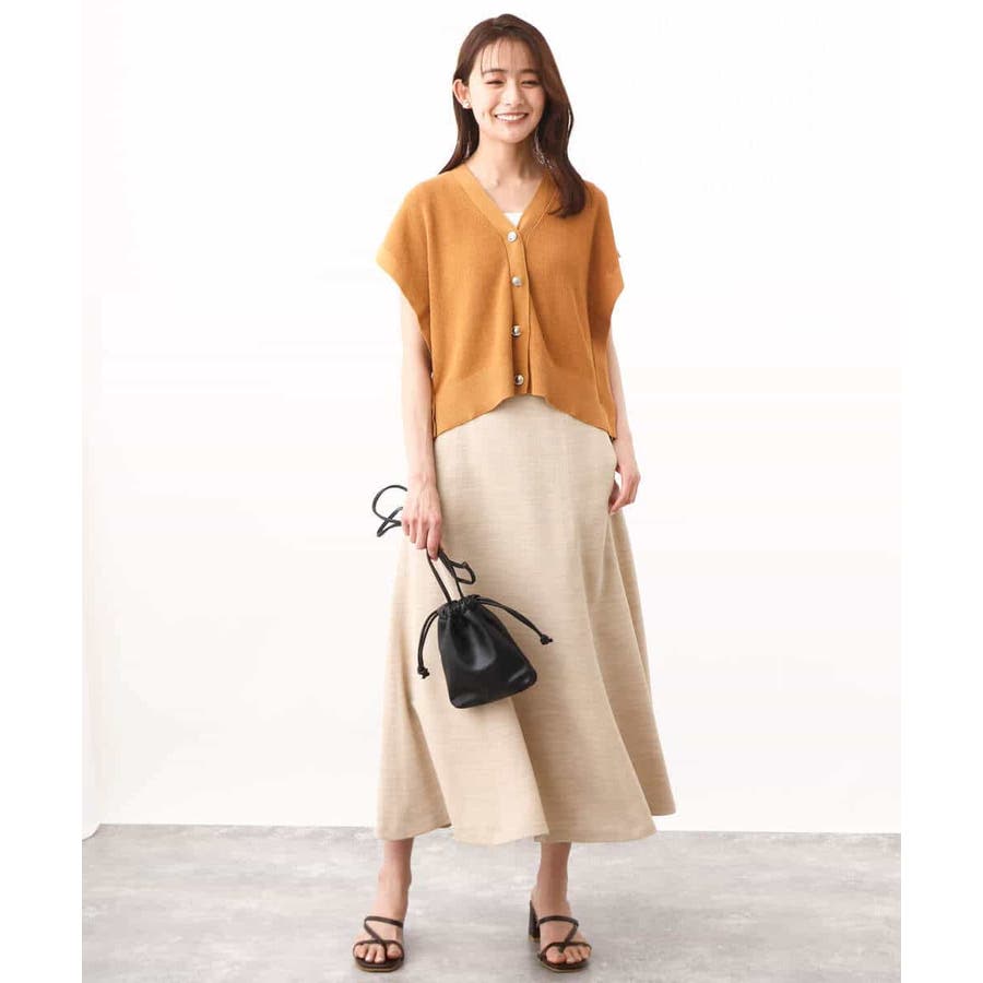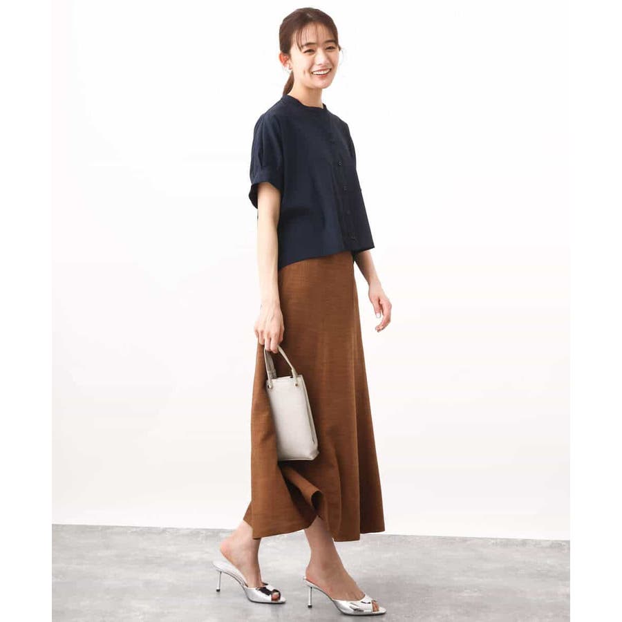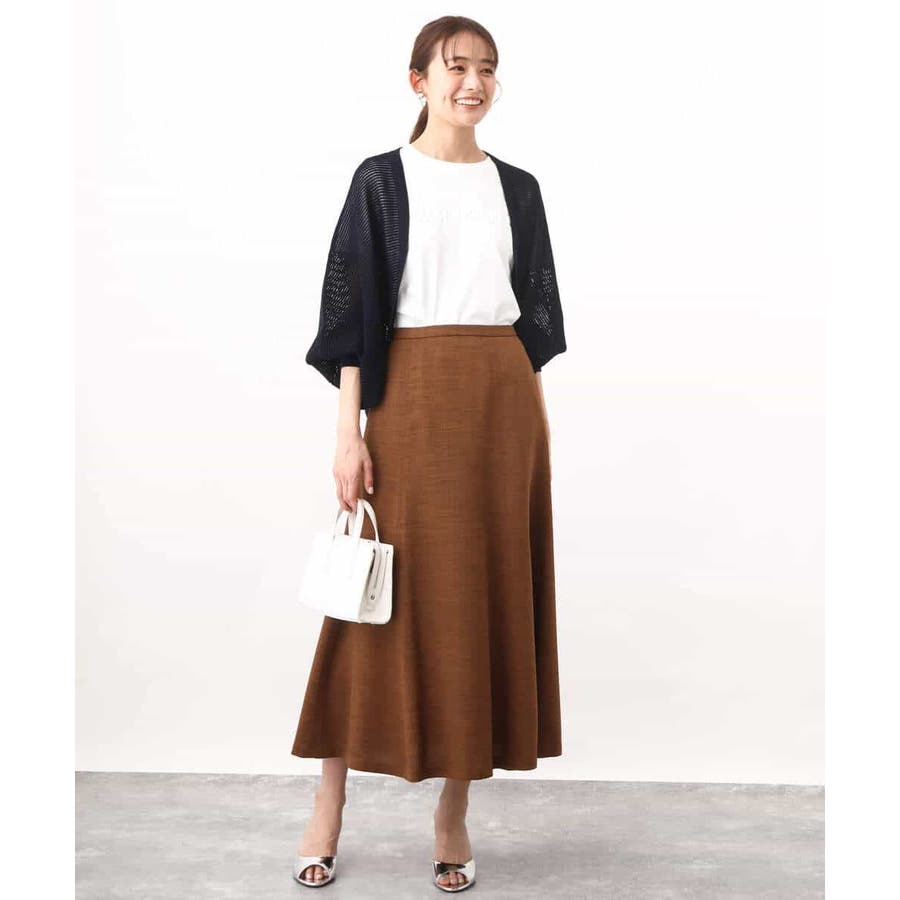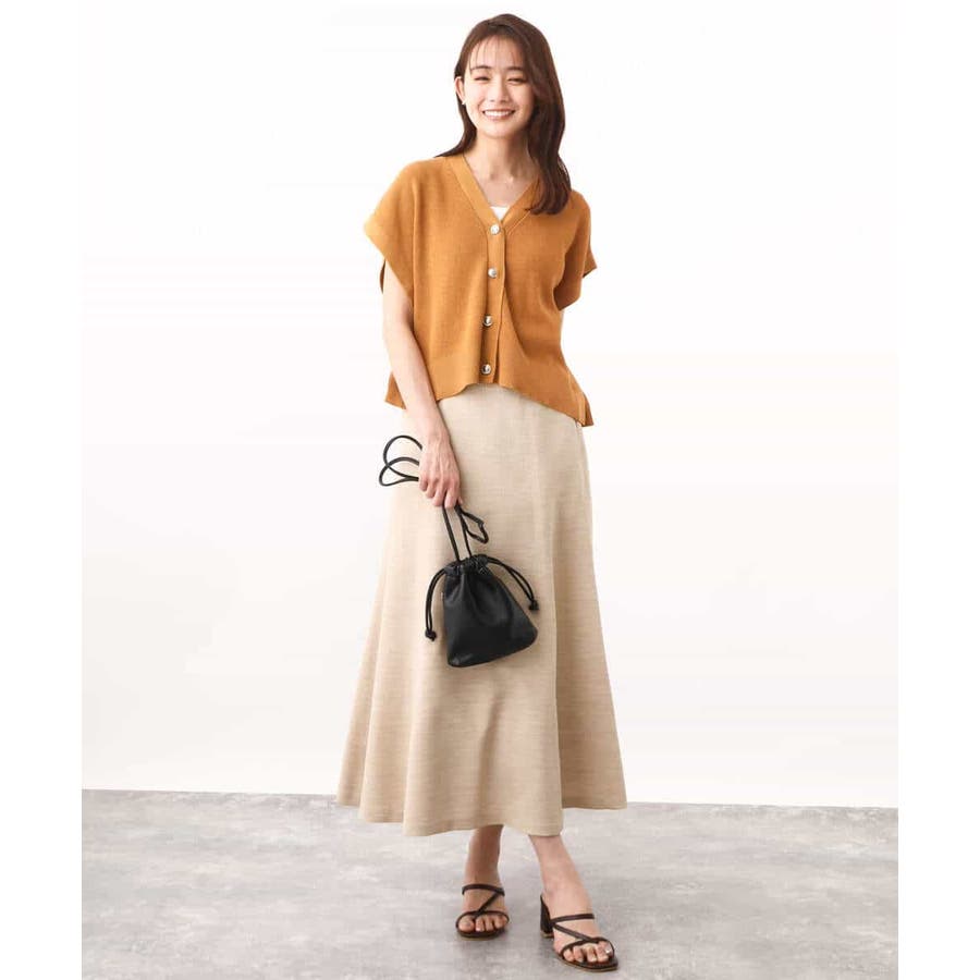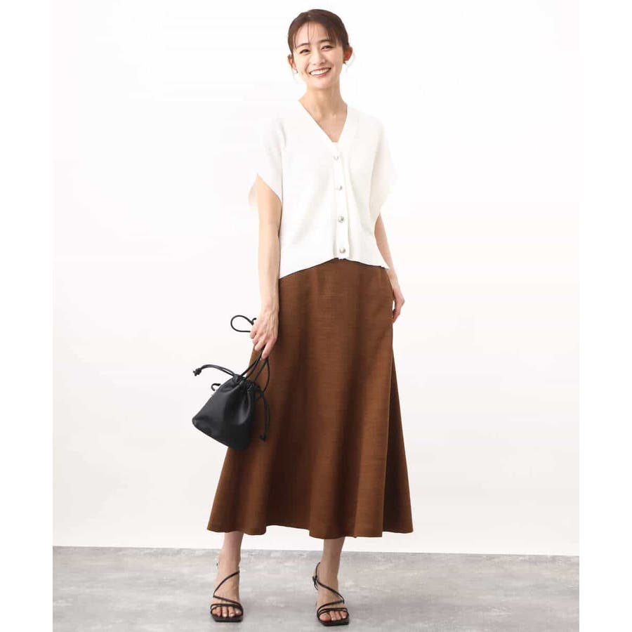 すっきりとしたマーメイドスカートは合わせるトップスを選びません。リネンライクな素材も相まり、トップス次第できれいめにもカジュアルにも楽しめるのが嬉しい。同素材のジレとセットアップでの着こなしもおすすめ。
