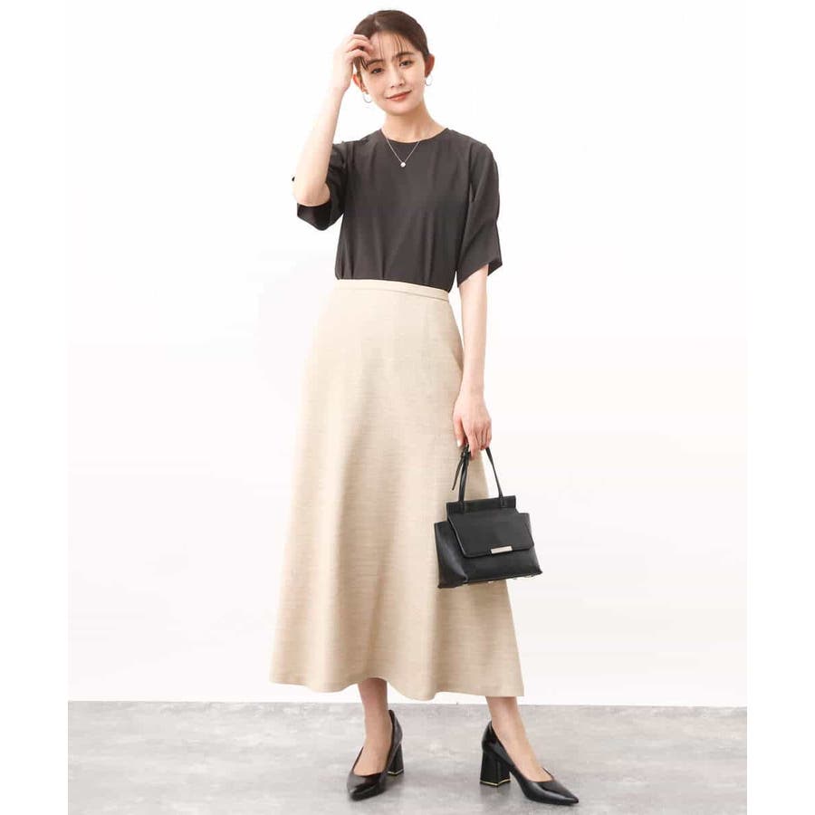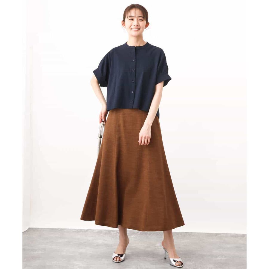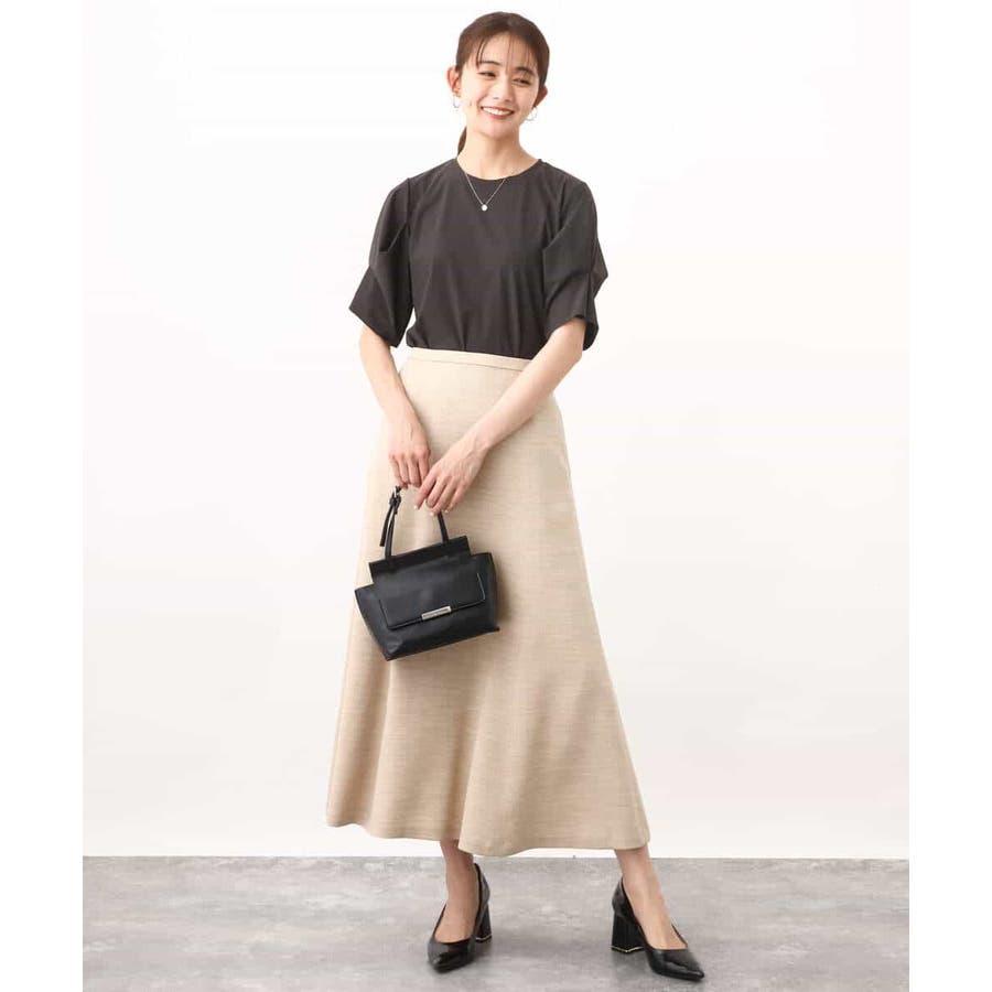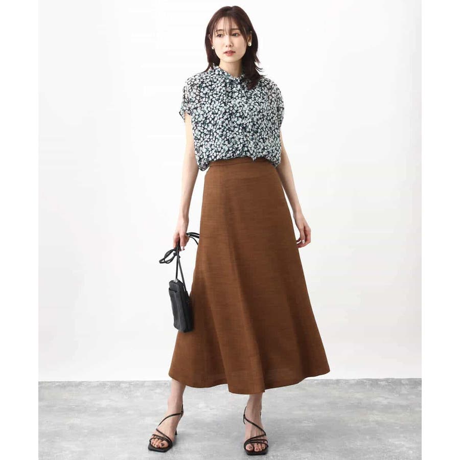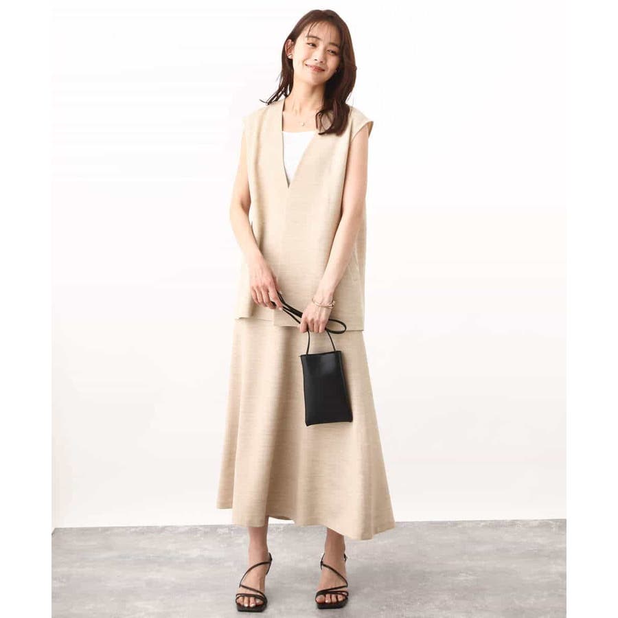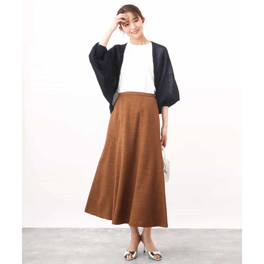 すっきりとしたマーメイドスカートは合わせるトップスを選びません。リネンライクな素材も相まり、トップス次第できれいめにもカジュアルにも楽しめるのが嬉しい。同素材のジレとセットアップでの着こなしもおすすめ。