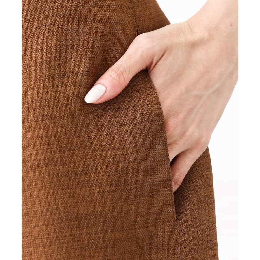 リネンライクなナチュラル見えの素材は清涼感たっぷり。さらっとした裏地付きで暑い季節も涼しく着用できます。ドライな風合いはシワになりにくく、肌離れの良いナチュラルストレッチの着心地の良い素材です。