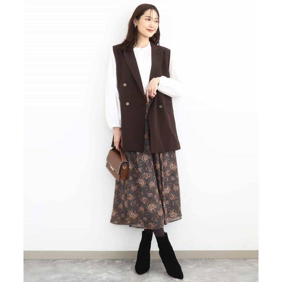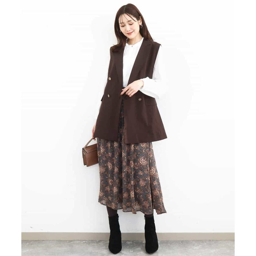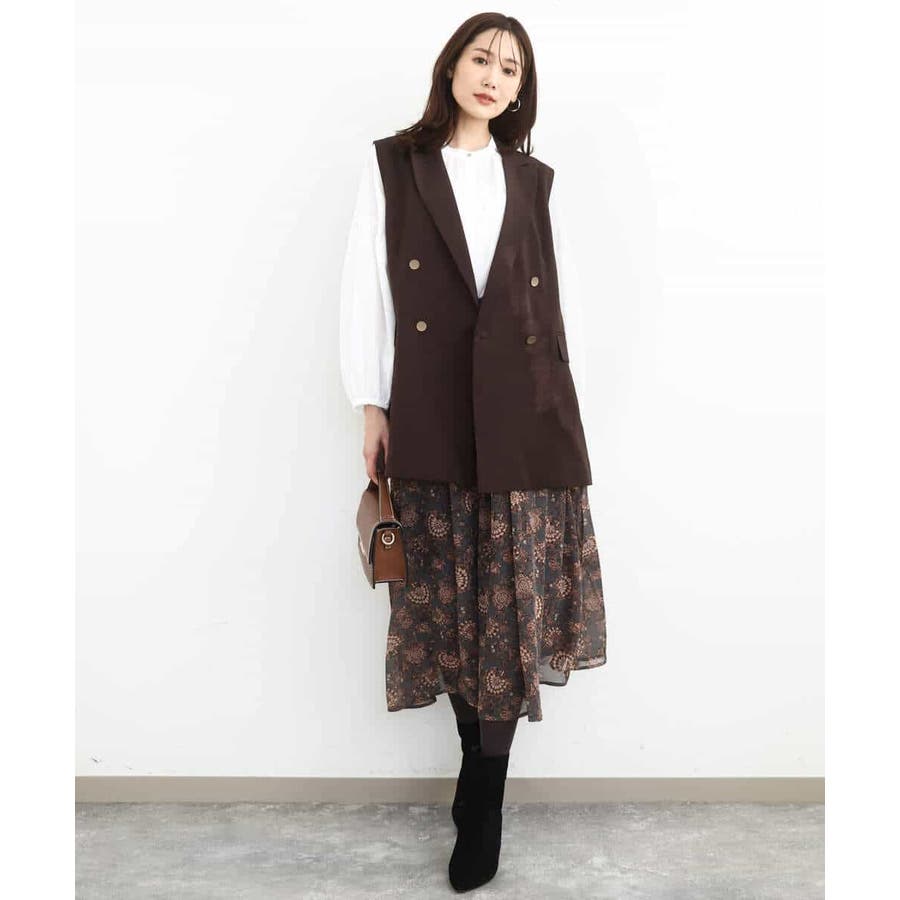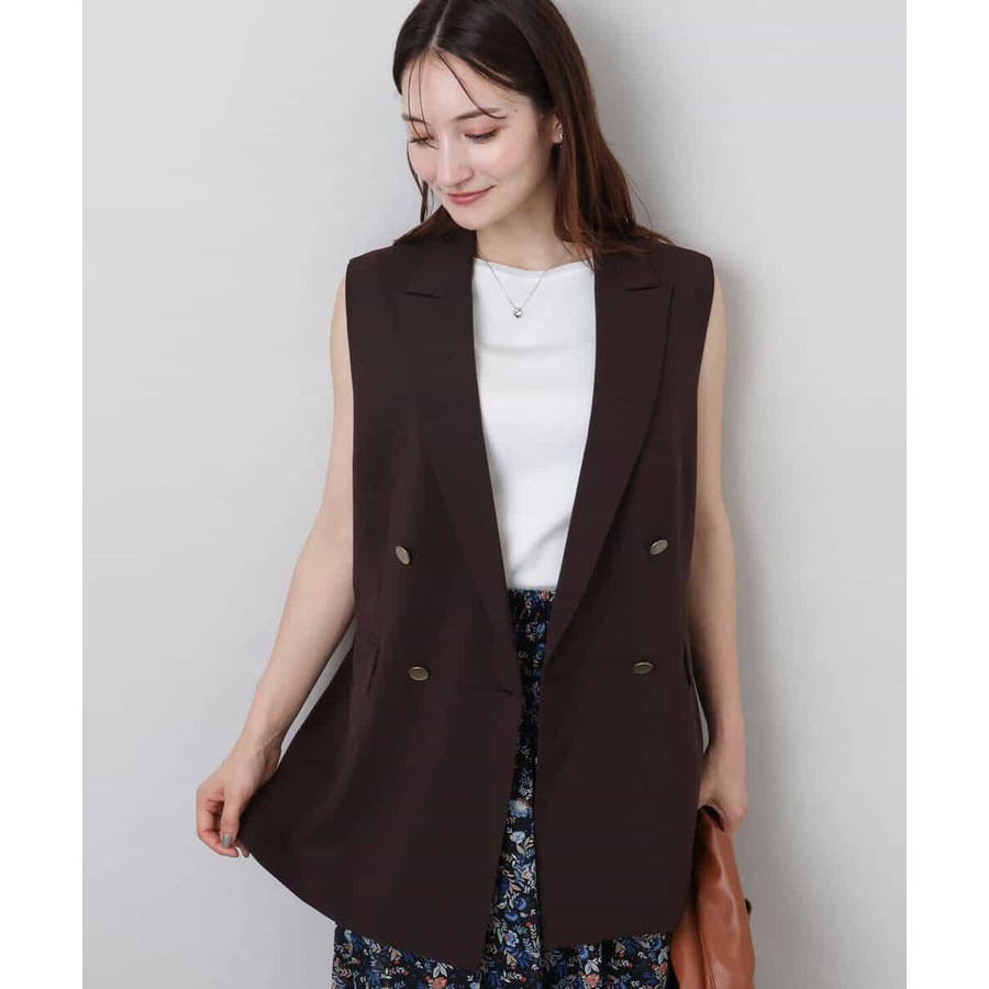 肩が大きく見えにくいような女性らしいパターンで仕上げたジレです!ゆったりとしながらもすっきりとしたシルエットに仕立てたトレンド感のあるダブルブレストデザインが特徴です。長めの丈感で気になるヒップ周りもカバーしてくれます!
