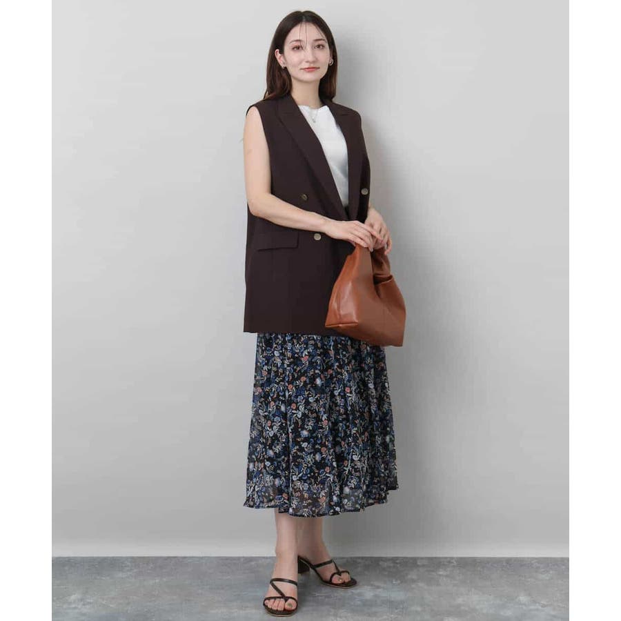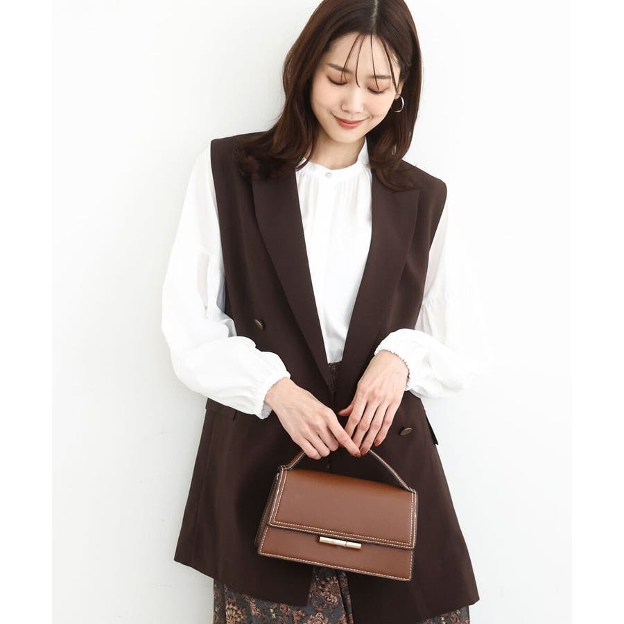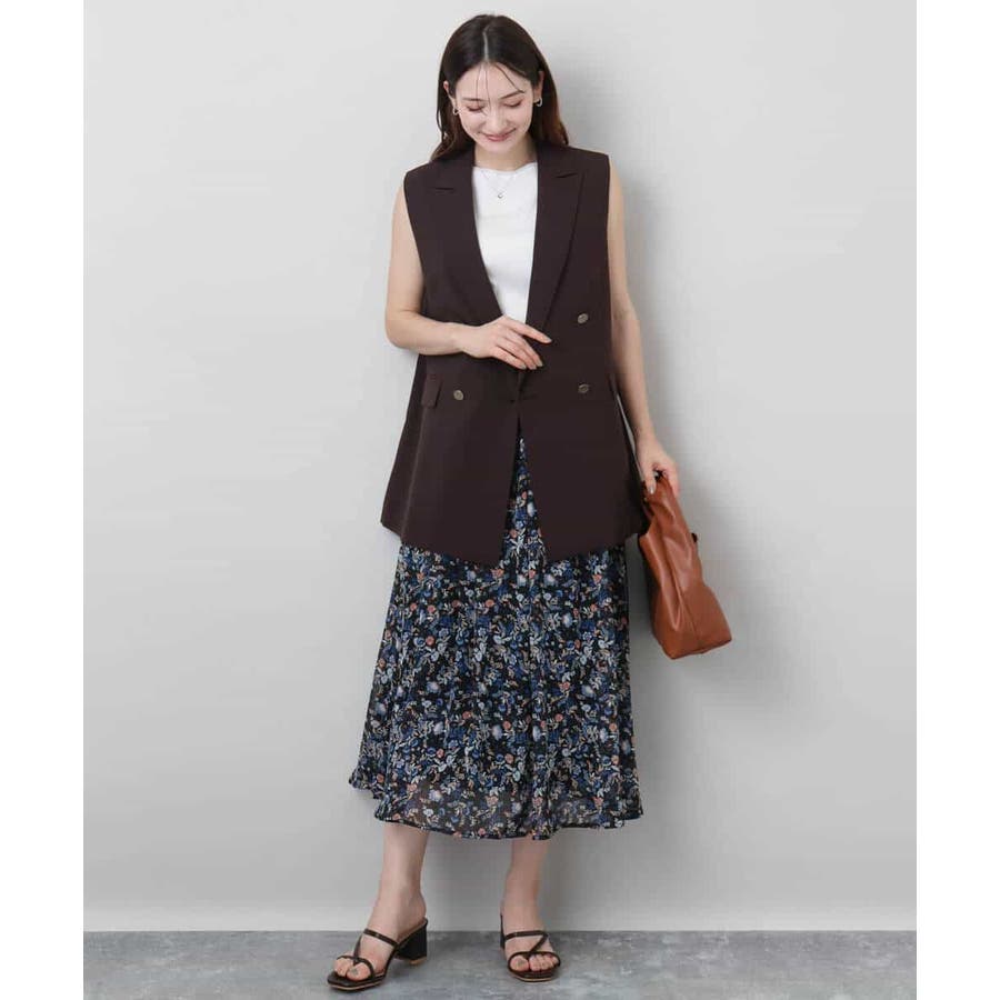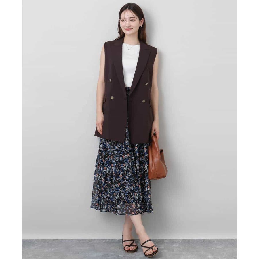 肩が大きく見えにくいような女性らしいパターンで仕上げたジレです!ゆったりとしながらもすっきりとしたシルエットに仕立てたトレンド感のあるダブルブレストデザインが特徴です。長めの丈感で気になるヒップ周りもカバーしてくれます!