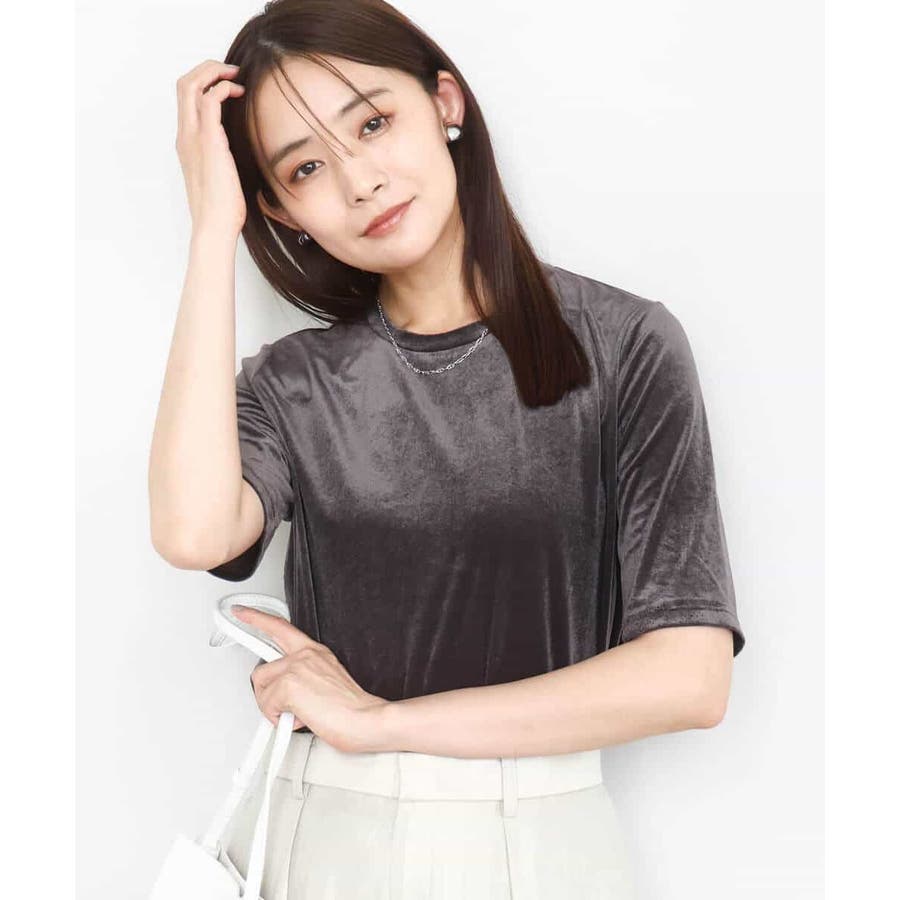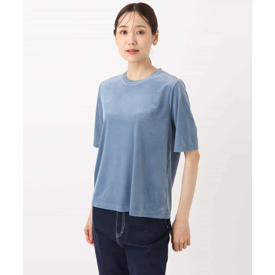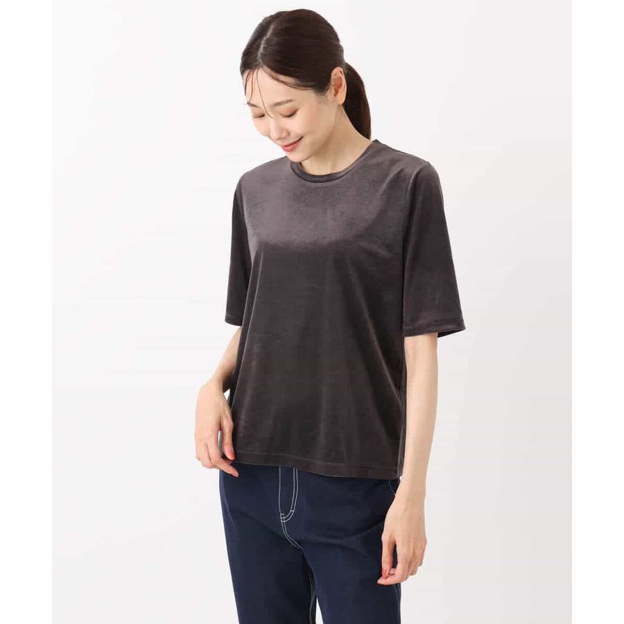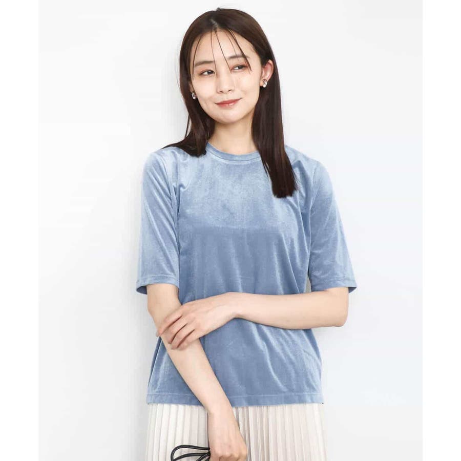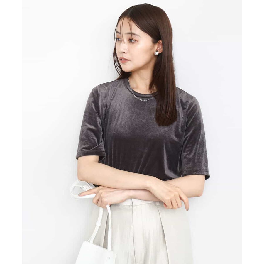 シンプルなベロアTシャツは使い勝手の良さ抜群。カジュアルアイテムとの合わせはもちろん、上品さもあるTシャツはジャケットのインナーとしてお仕事服にも活躍してくれます。