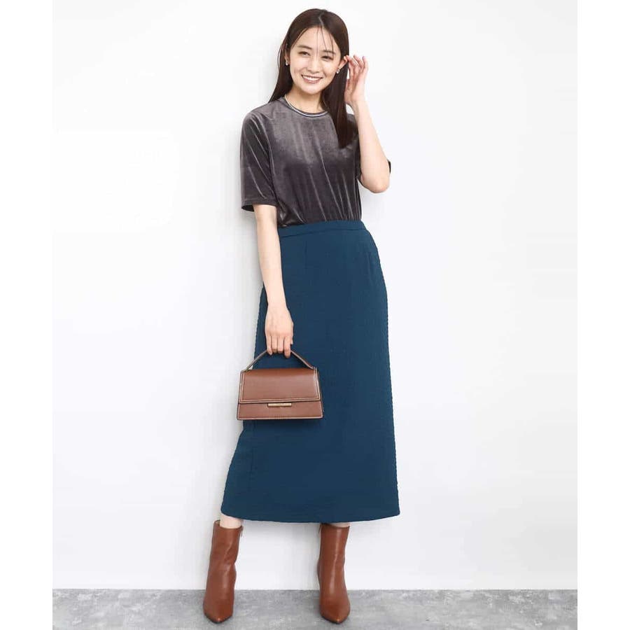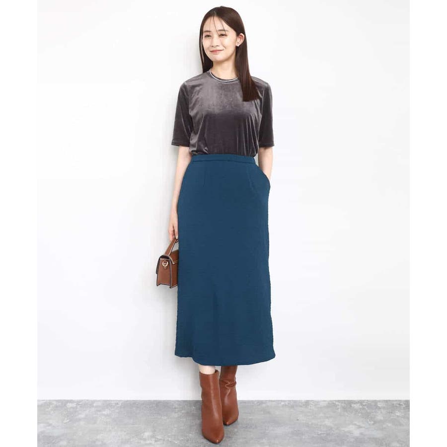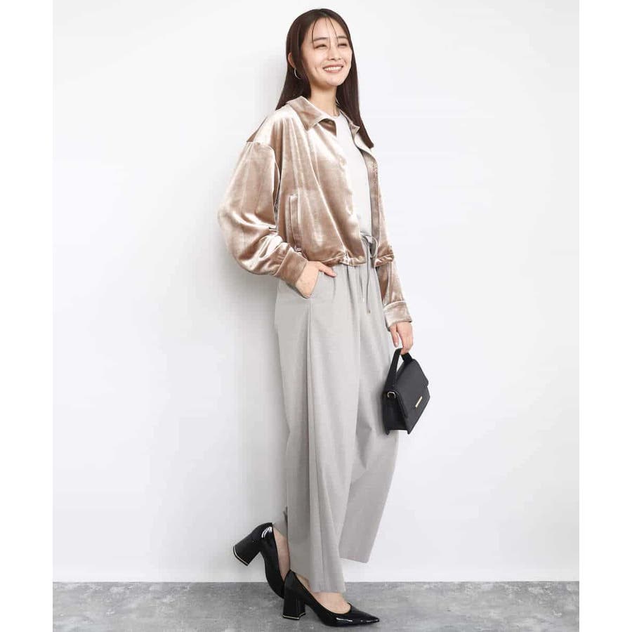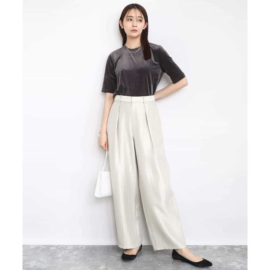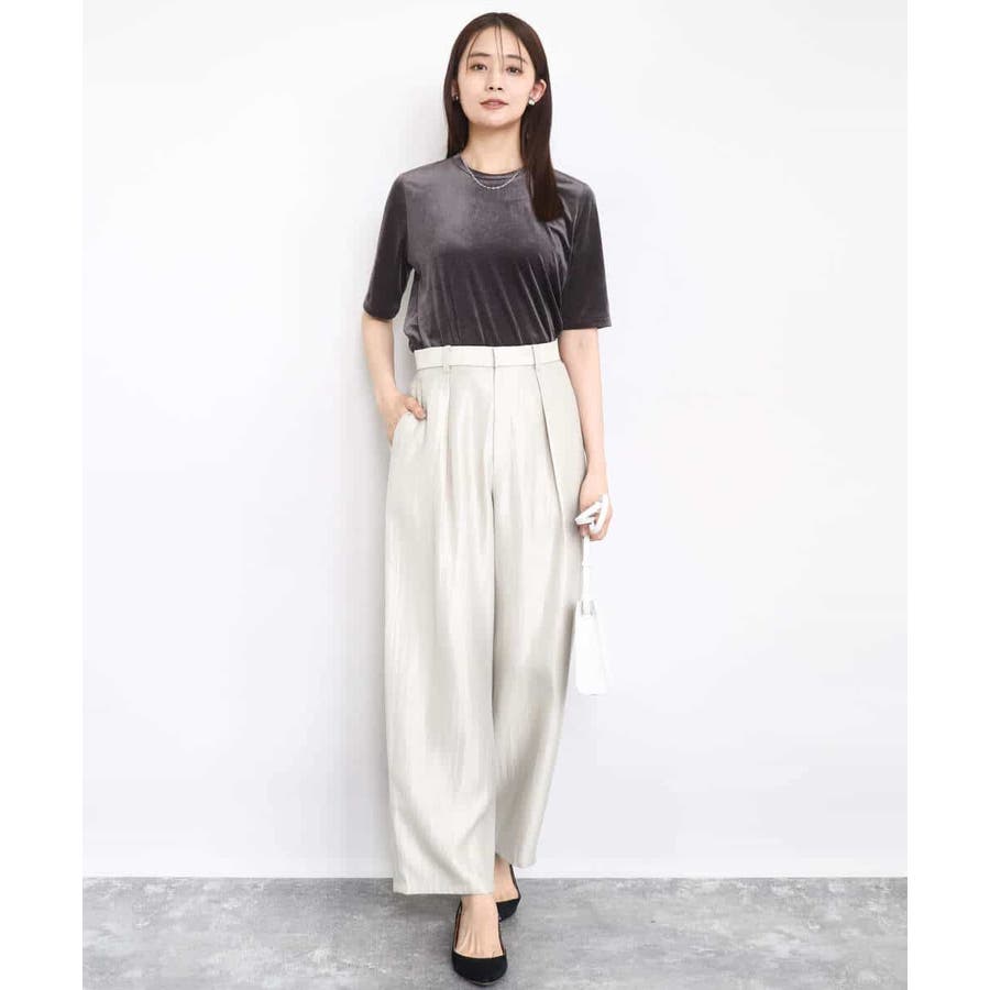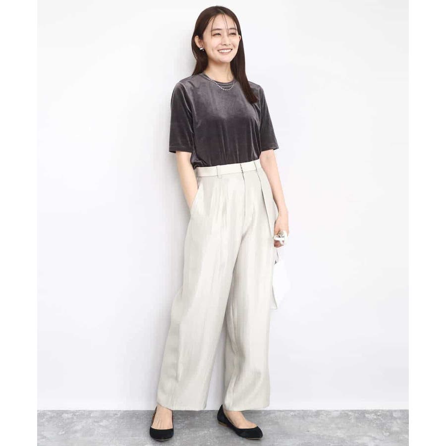 シンプルなベロアTシャツは使い勝手の良さ抜群。カジュアルアイテムとの合わせはもちろん、上品さもあるTシャツはジャケットのインナーとしてお仕事服にも活躍してくれます。