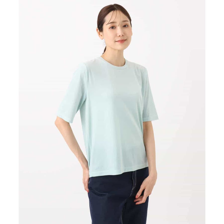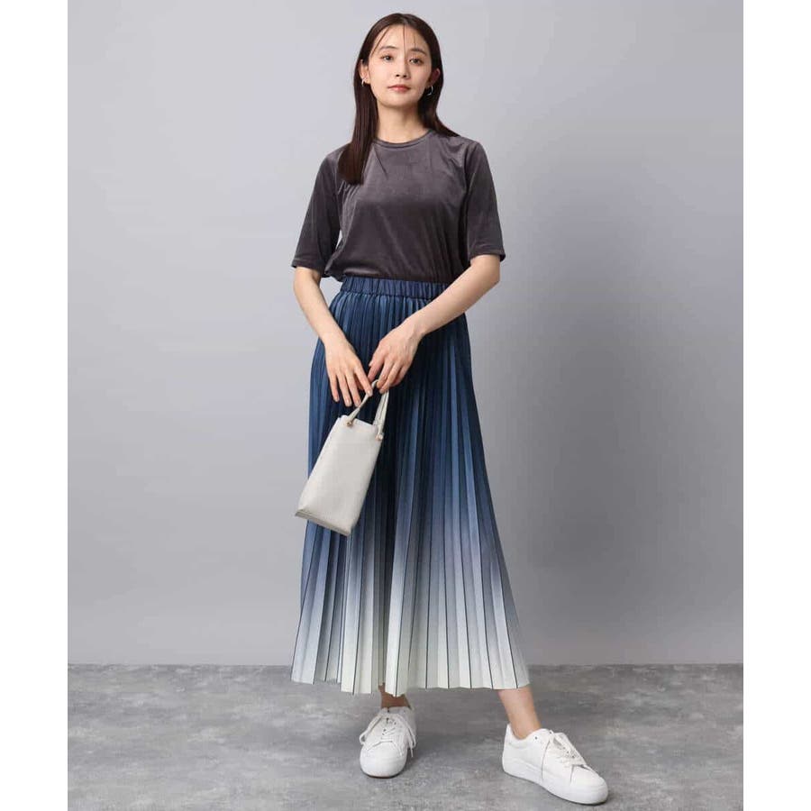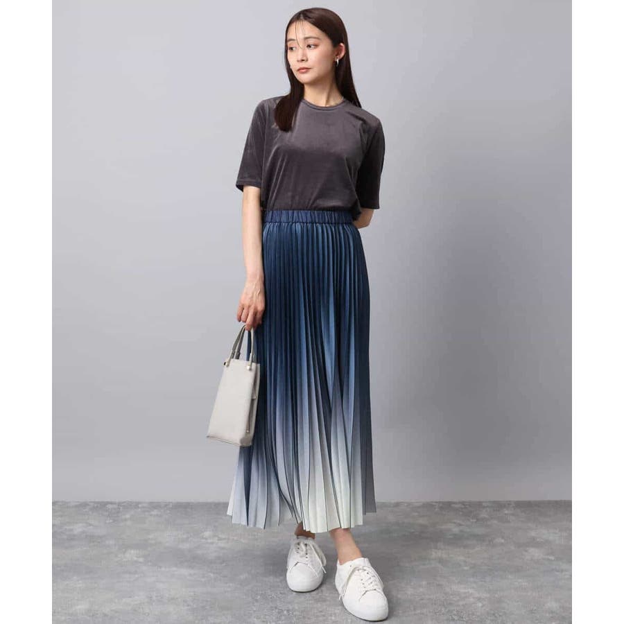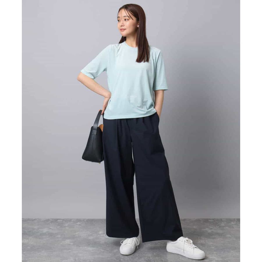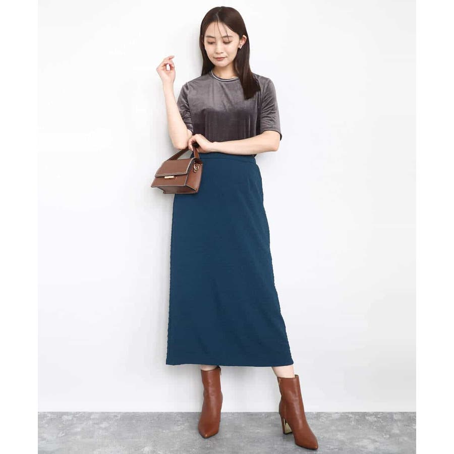 シンプルなベロアTシャツは使い勝手の良さ抜群。カジュアルアイテムとの合わせはもちろん、上品さもあるTシャツはジャケットのインナーとしてお仕事服にも活躍してくれます。