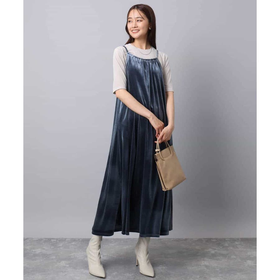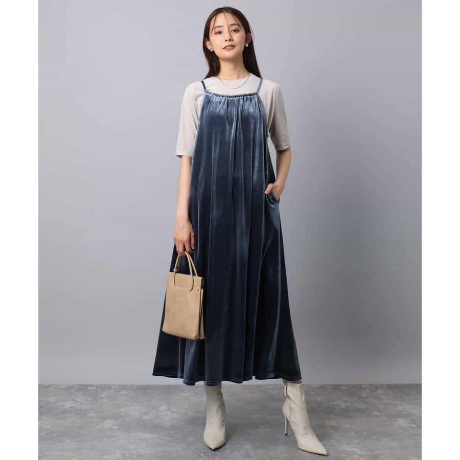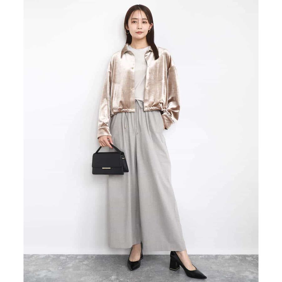 程良いシアー感のある薄手のベロア素材を使用。ソフトでしなやかな風合いで、ストレッチの効いた心地いい着心地です。