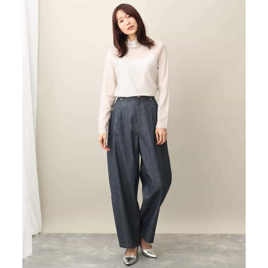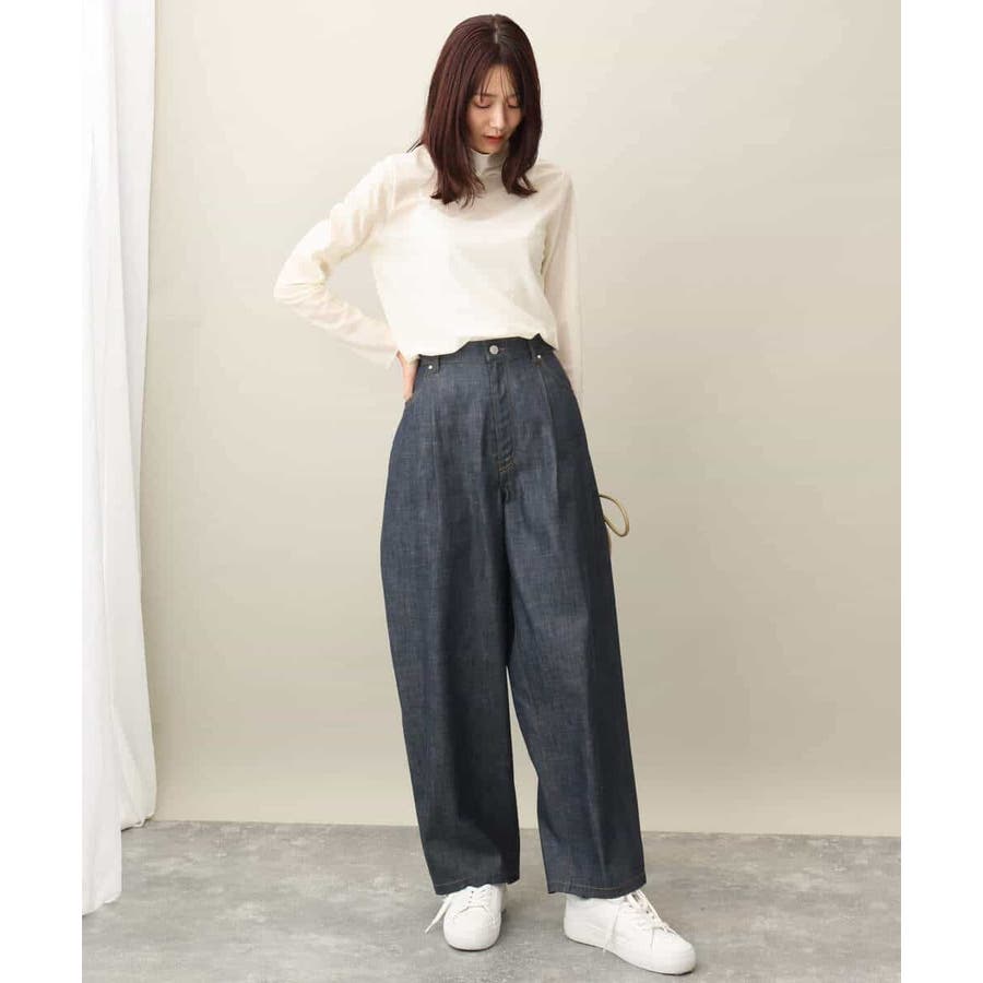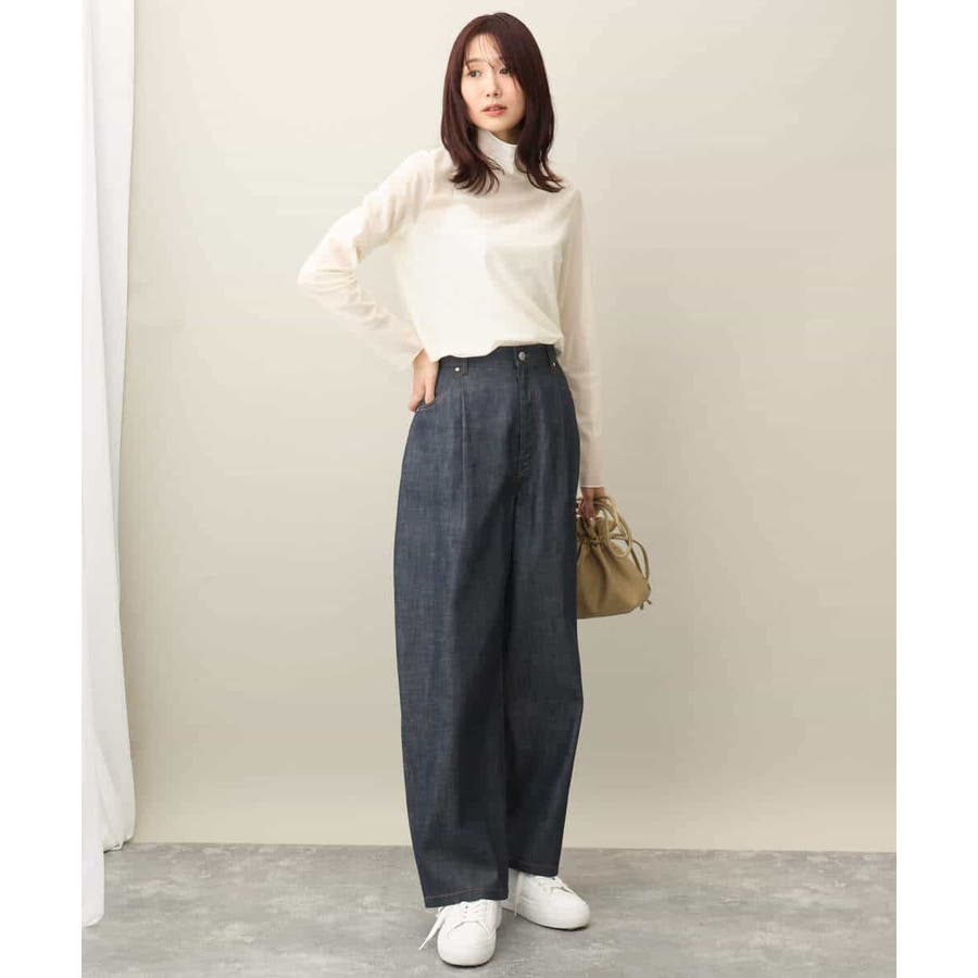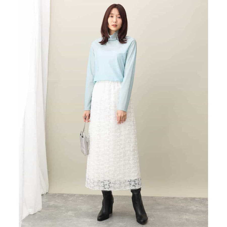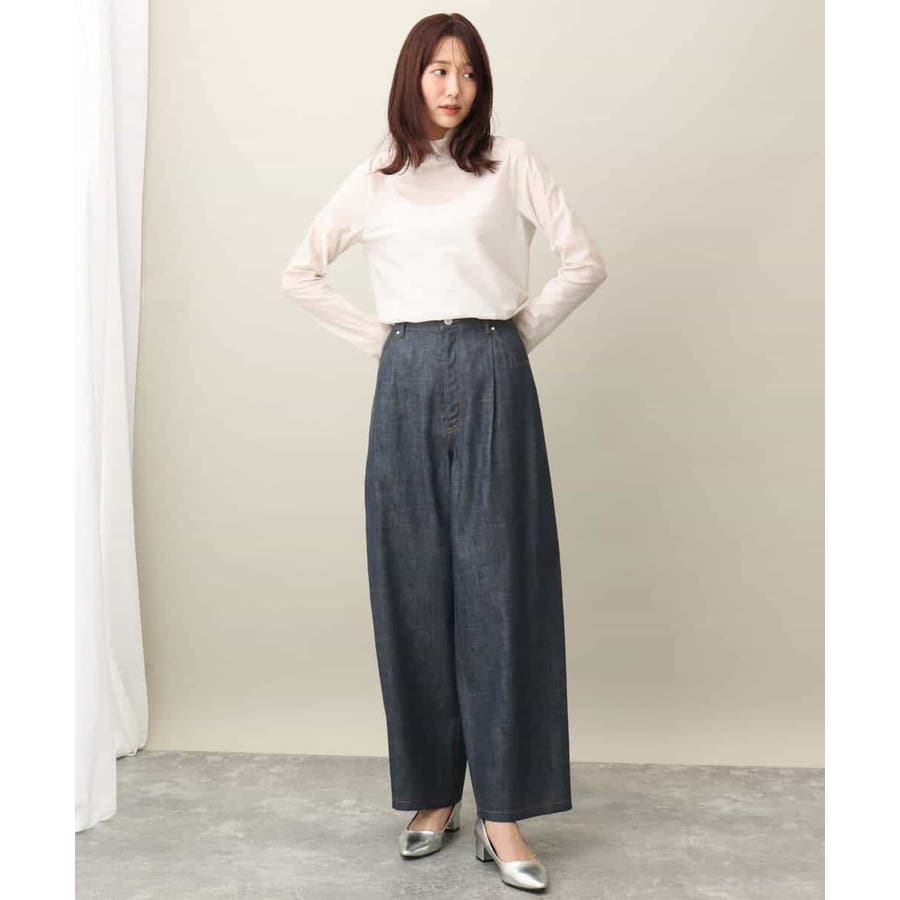 引き続きトレンドのシアー素材のハイネックカットソー。コンパクトなサイズ感はインナー使いにおすすめ。光沢感のある素材はキラキラとインナーに忍ばせてもさりげないポイントに活躍してくれるはず。