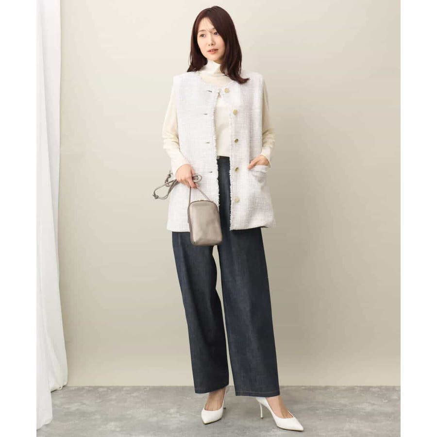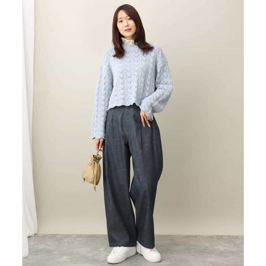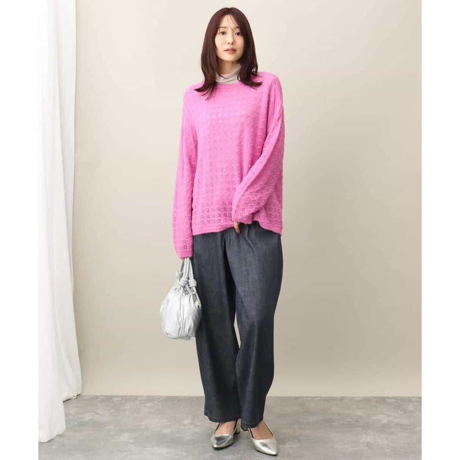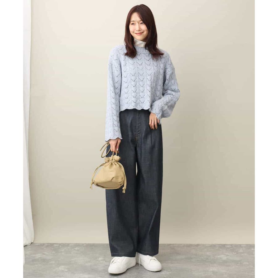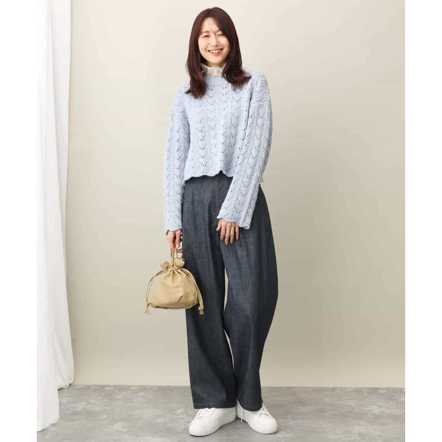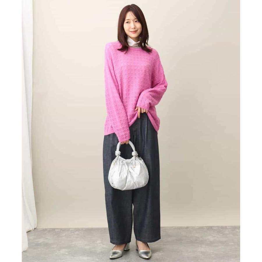 引き続きトレンドのシアー素材のハイネックカットソー。コンパクトなサイズ感はインナー使いにおすすめ。光沢感のある素材はキラキラとインナーに忍ばせてもさりげないポイントに活躍してくれるはず。
