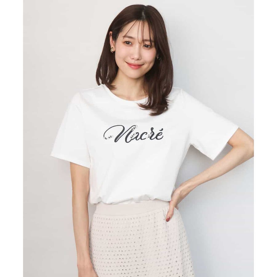 ビーズ刺繍がポイントの大人ロゴTシャツ