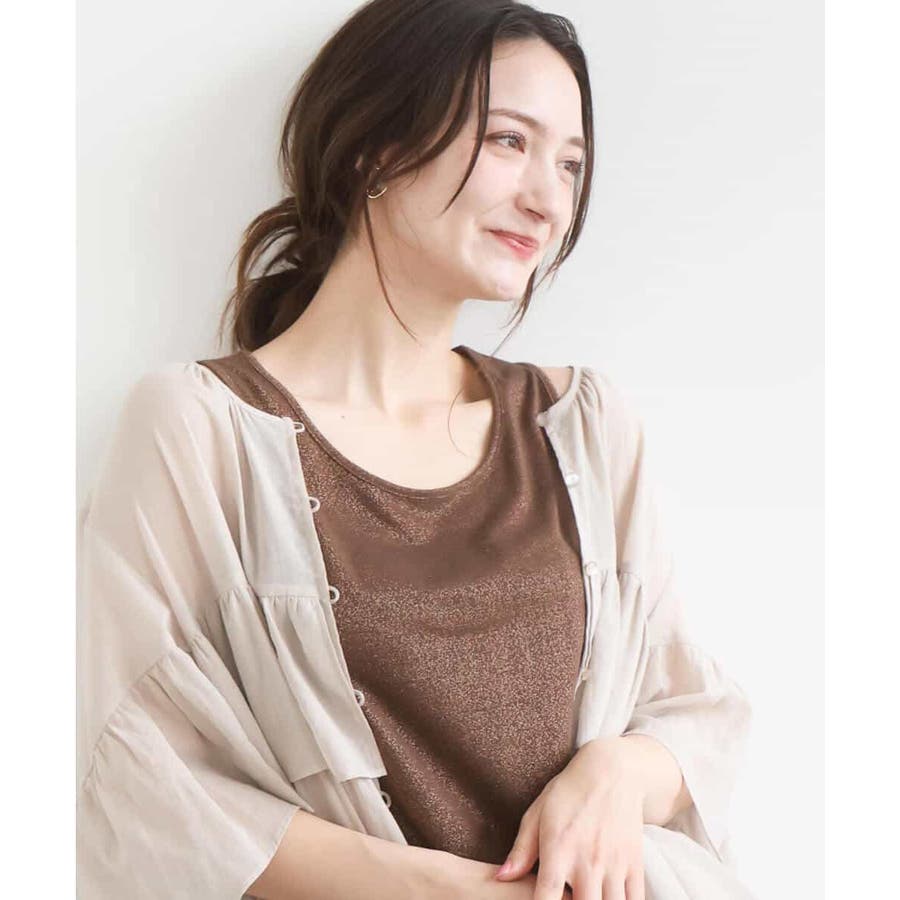 さりげないラメの輝きにさらりとした光沢感のある素材はチラリと見えてもインナー感がなくオシャレな印象に。UVカット機能付き。
