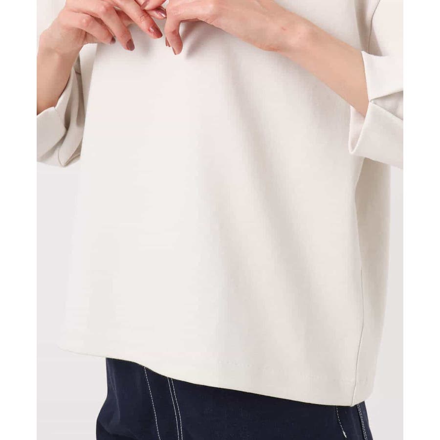 伸縮性があり、適度なハリ感としなやかさのある着心地の良いポンチ素材を使用。型崩れしにくくきれいめな印象で着こなせる素材です。