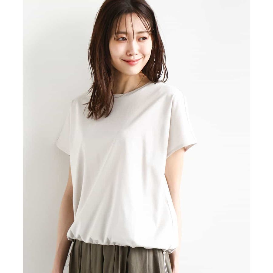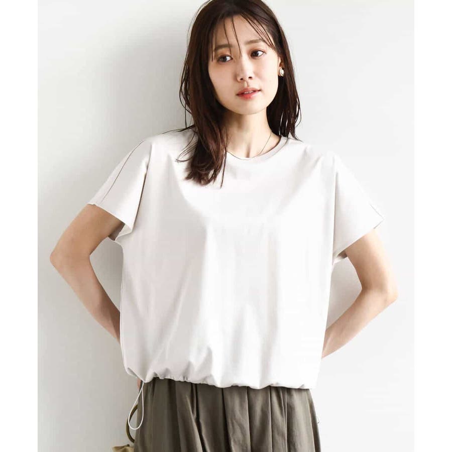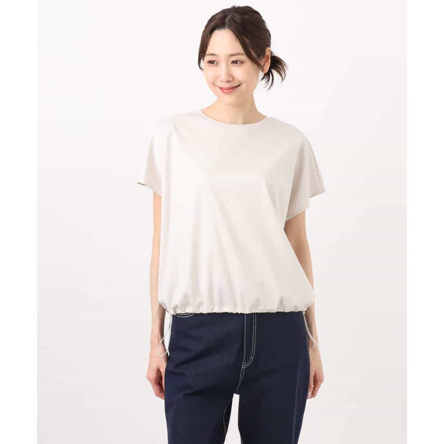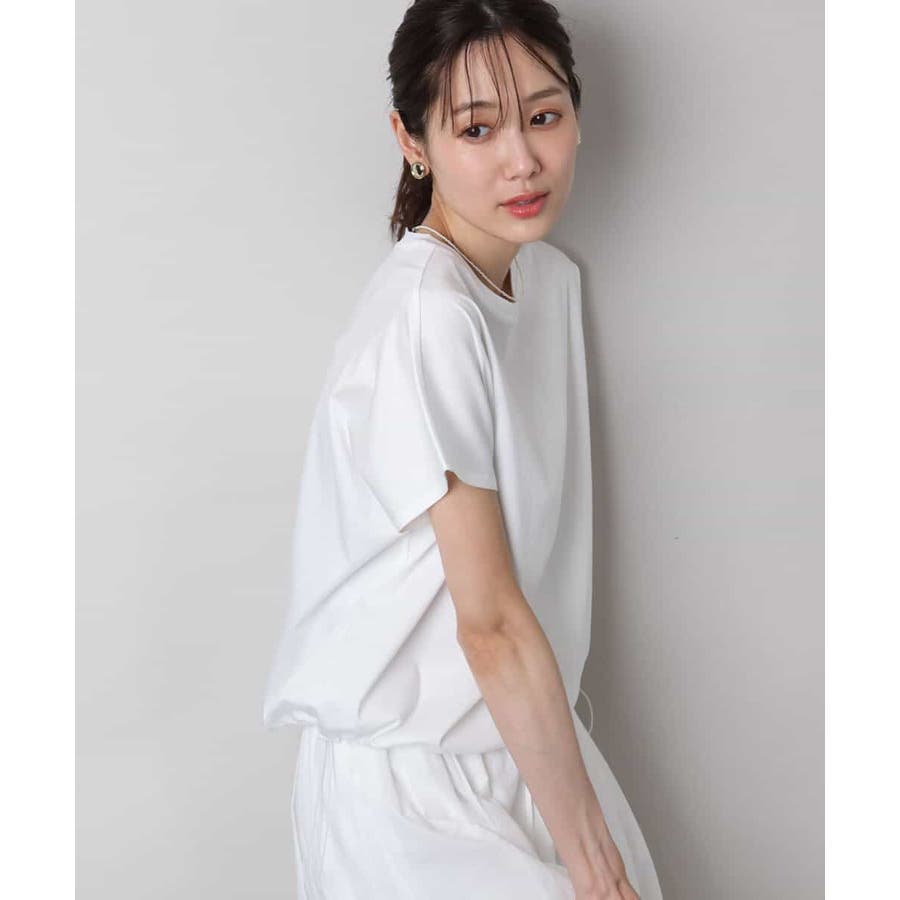 トレンドディティールのドローストリングを裾にあしらったカットソー。裾を絞ってフォルムを作って着こなして。絞ってもゴム紐なのでストレスフリーな着心地です。