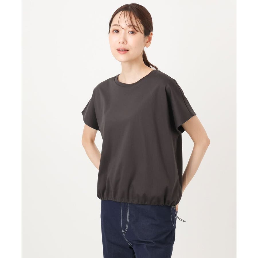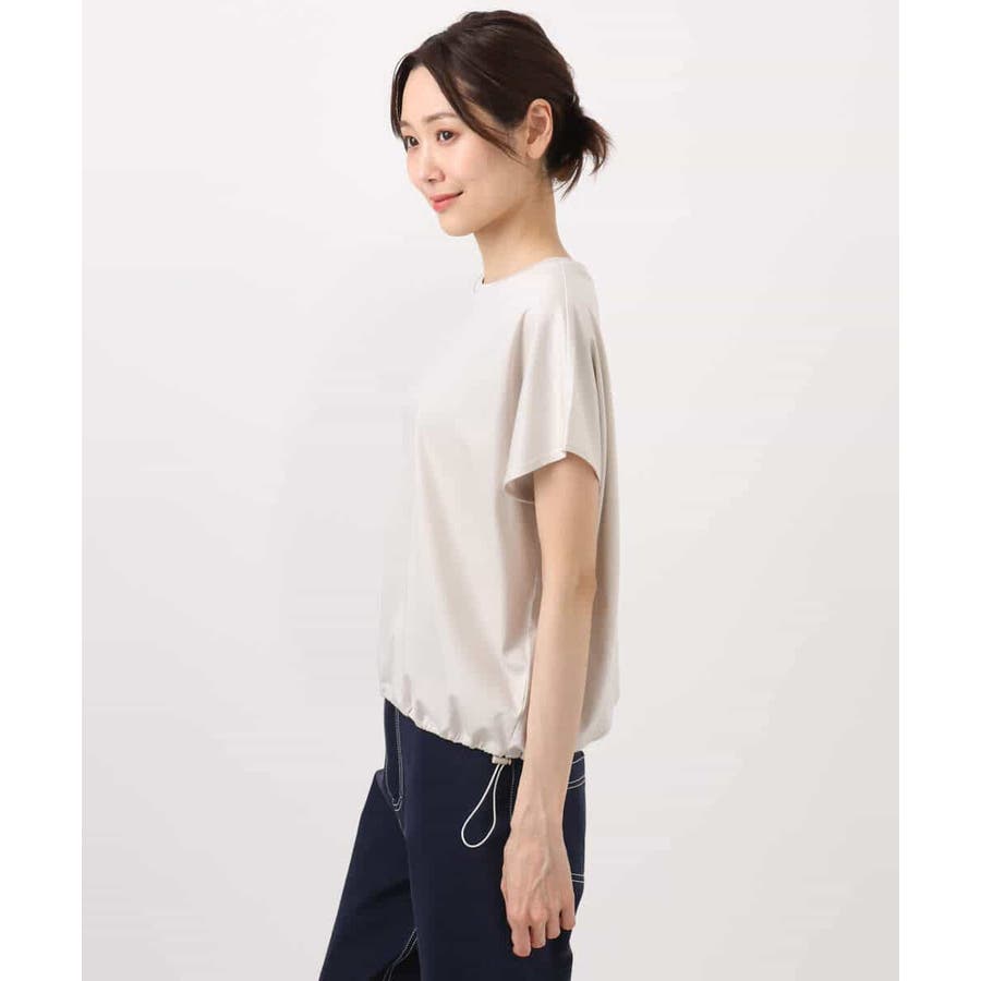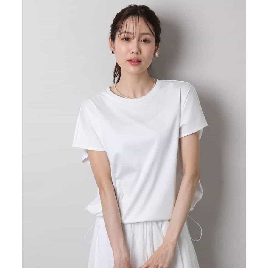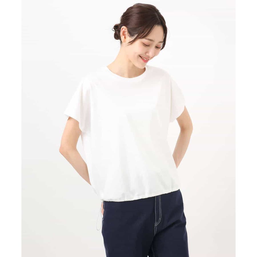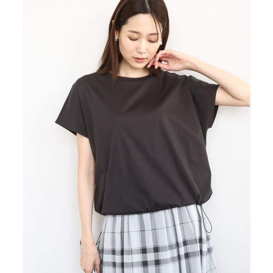 トレンドディティールのドローストリングを裾にあしらったカットソー。裾を絞ってフォルムを作って着こなして。絞ってもゴム紐なのでストレスフリーな着心地です。