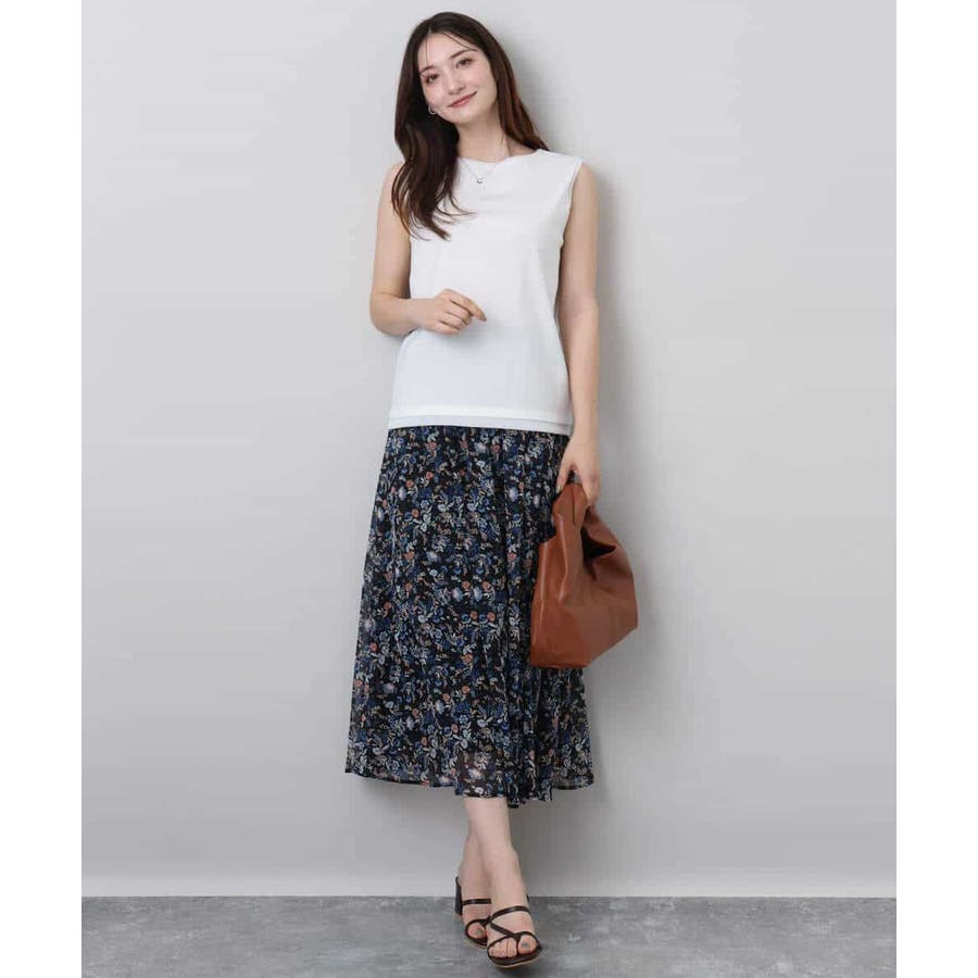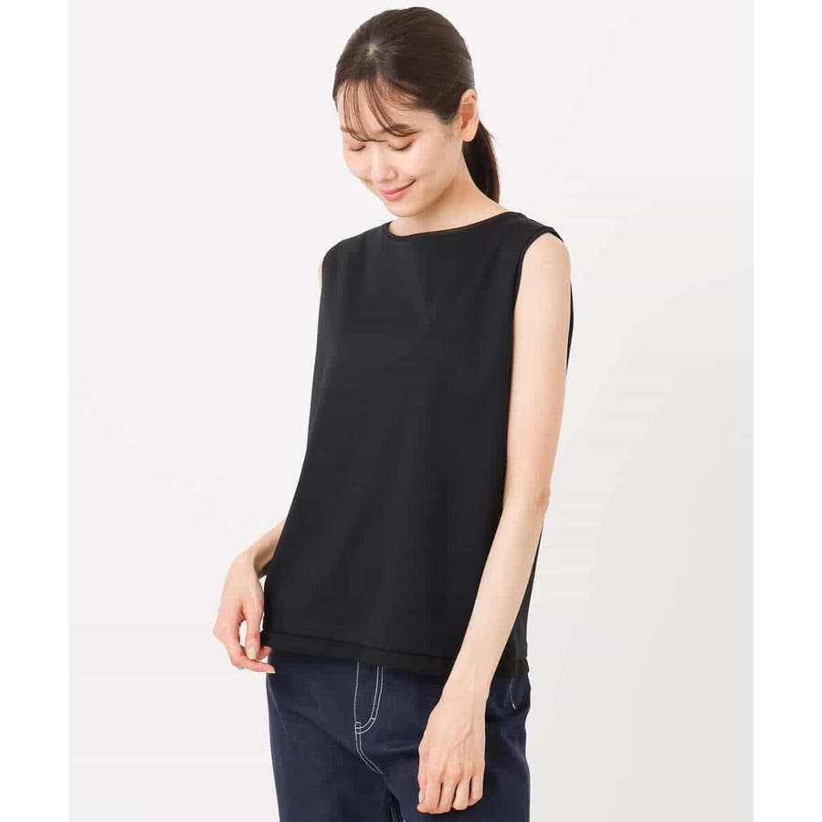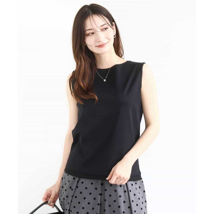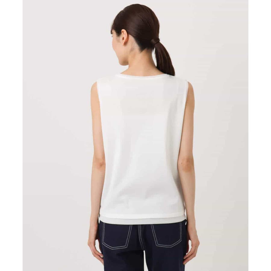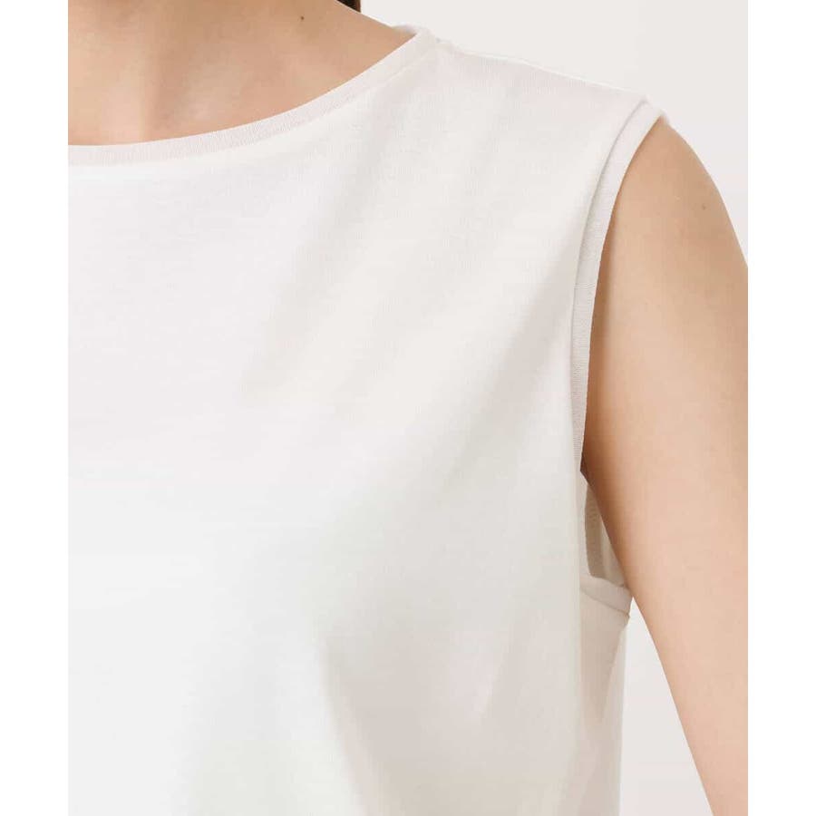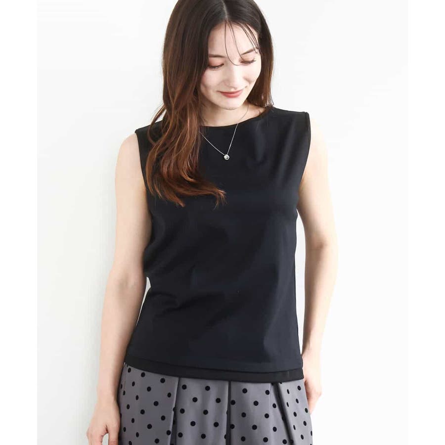 タンクトップよりもしっかりとしたノースリーブカットソーはジャンスカやシャツのインナーとしても安心感があり使い勝手抜群。衿ぐりのシアー素材など、インナー感も強すぎず一枚でトップスとしても十分活躍してくれる優秀プルオーバーです。