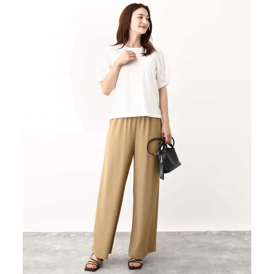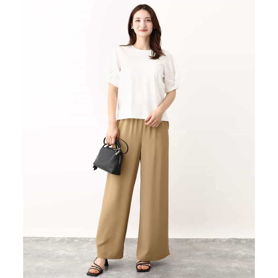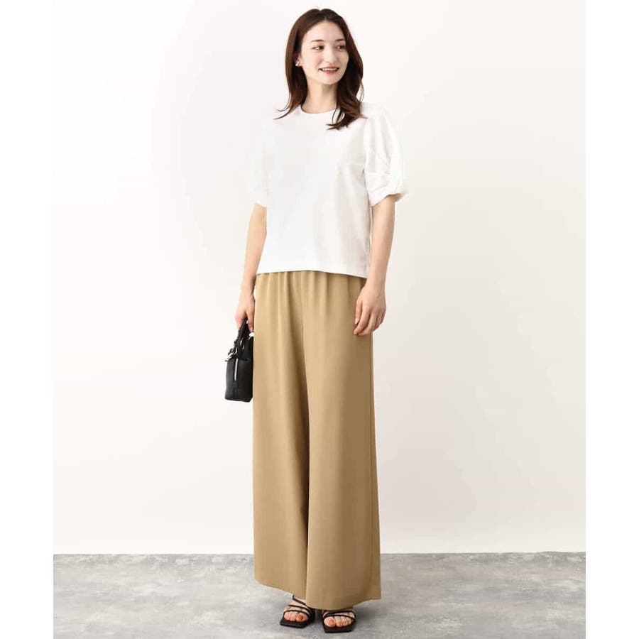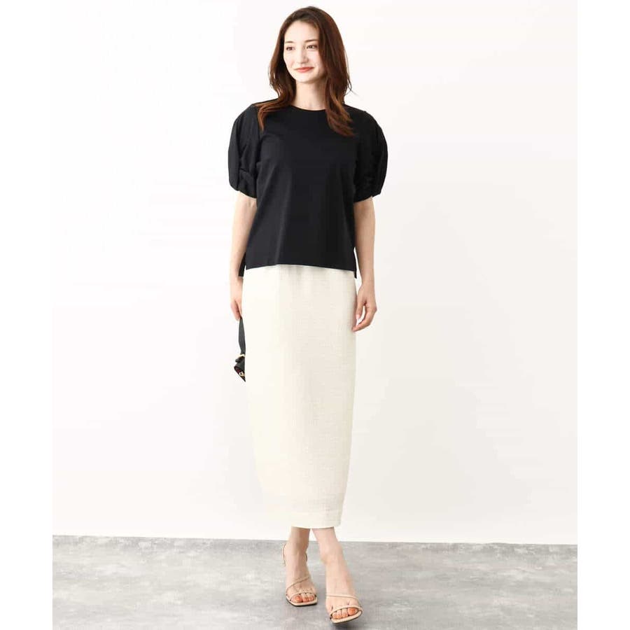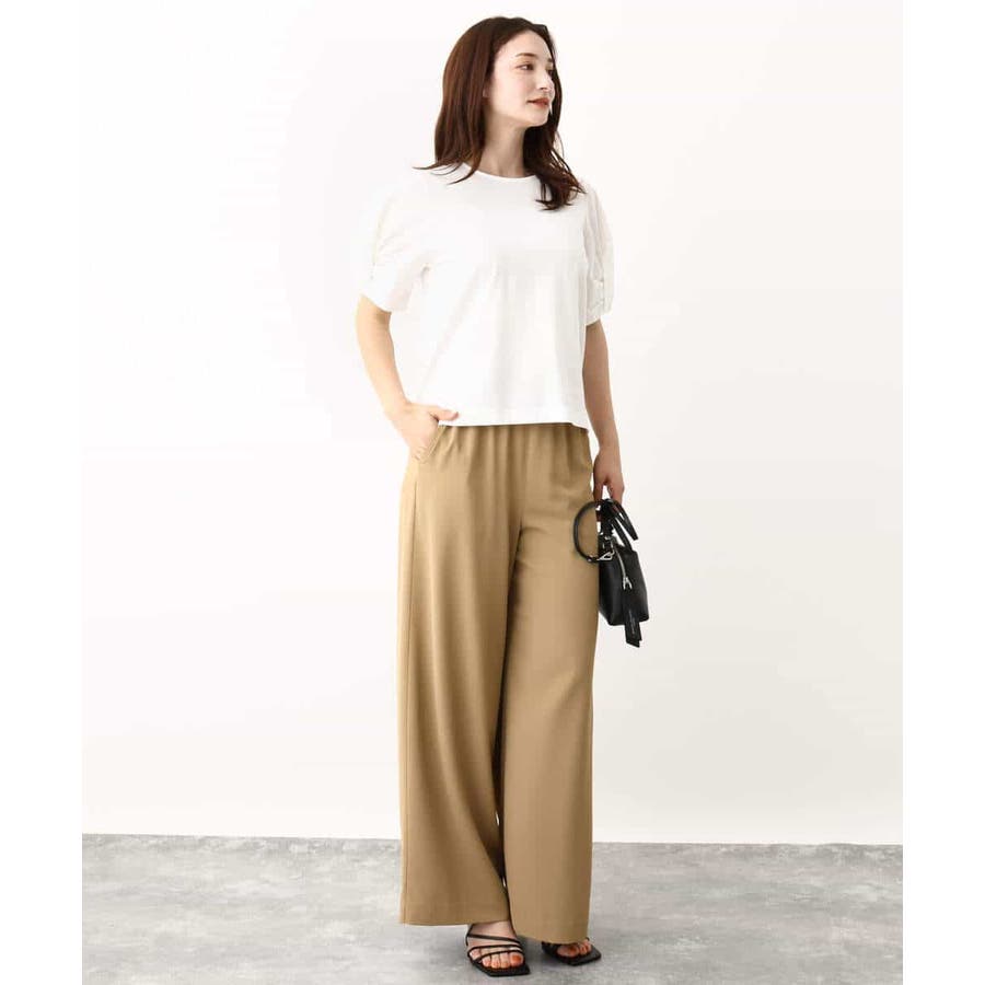 袖口をツイストした袖コンシャスなデザインがポイントのカットソー。一枚で映えるデザインが暑い時期に嬉しいアイテムです。