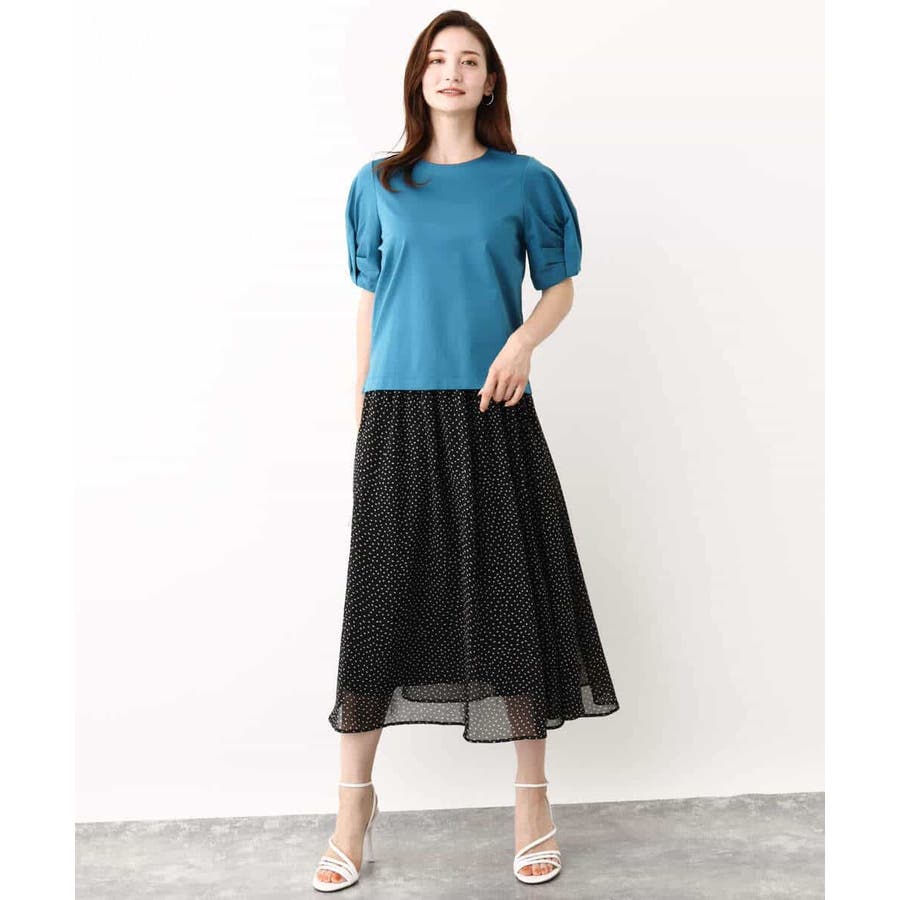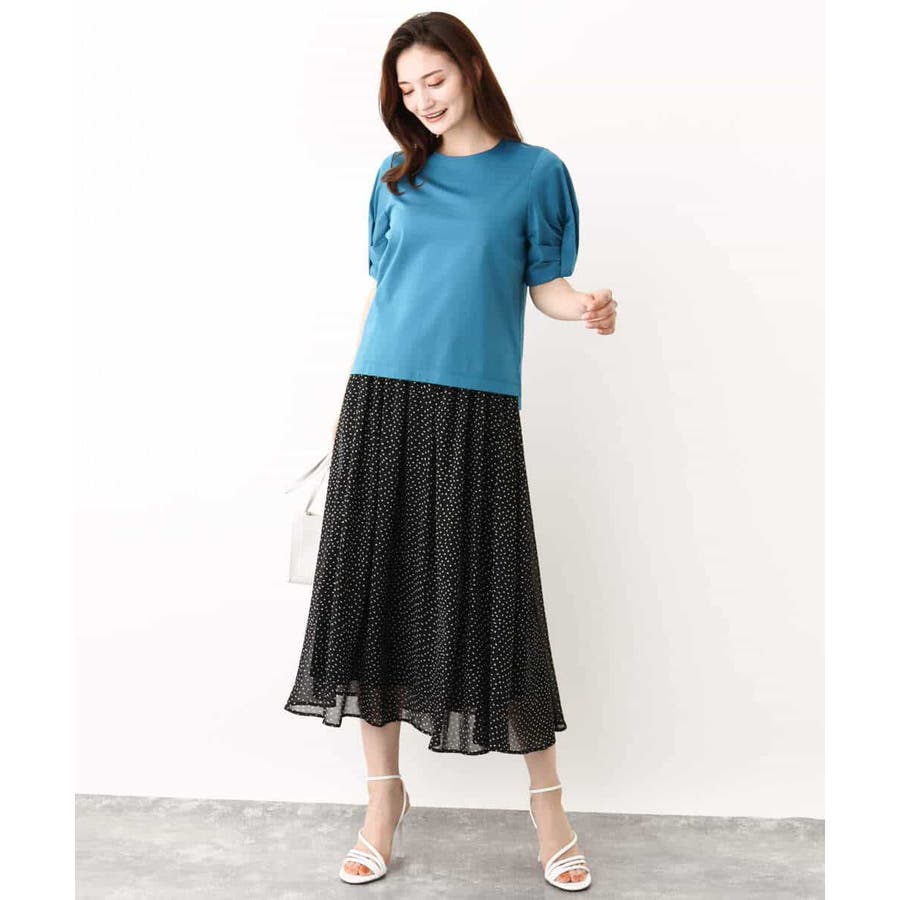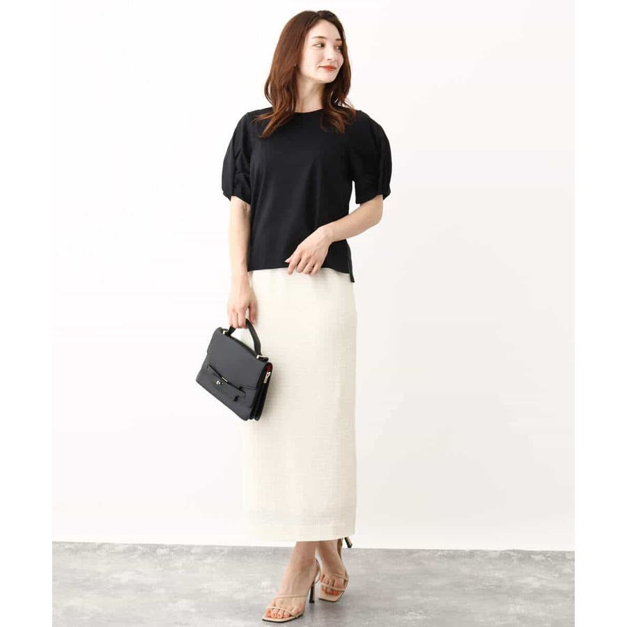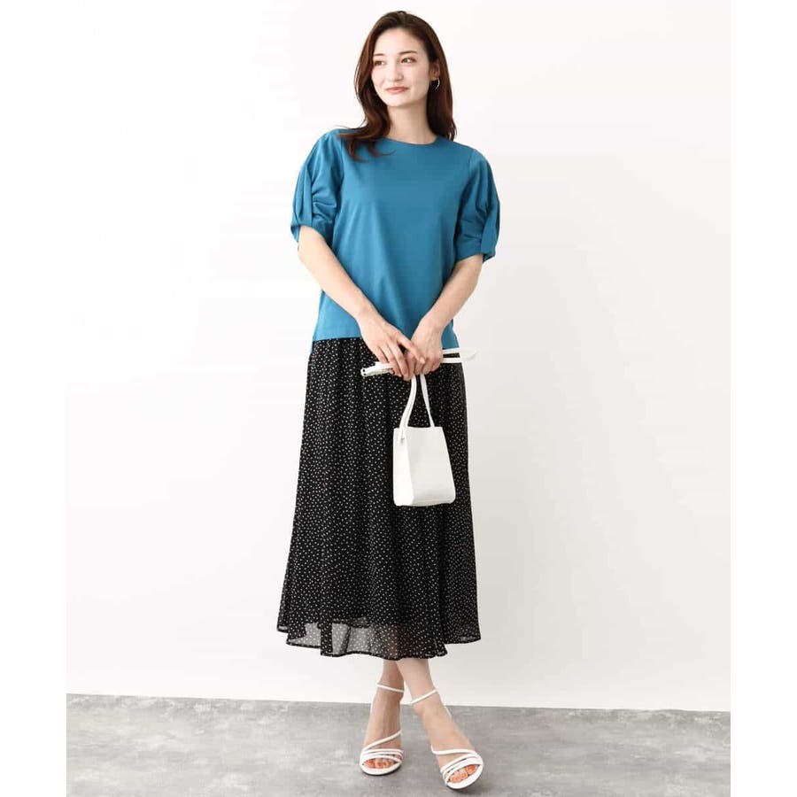 着丈に前後差があり、前はボトムにインせずにもすっきりと決まるようこだわりました。スカート、パンツと合わせるボトムを選びません。袖のデザインがポイントなので、キャミワンピースなどのインナーに合わせても着映えます。