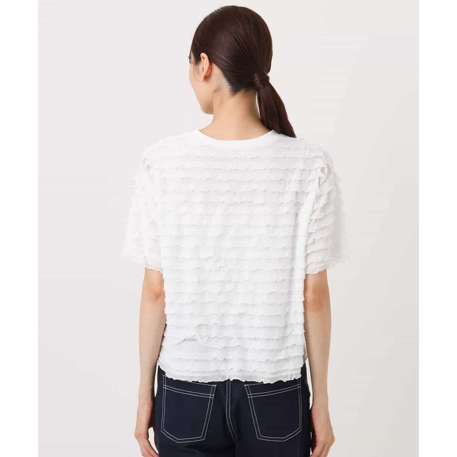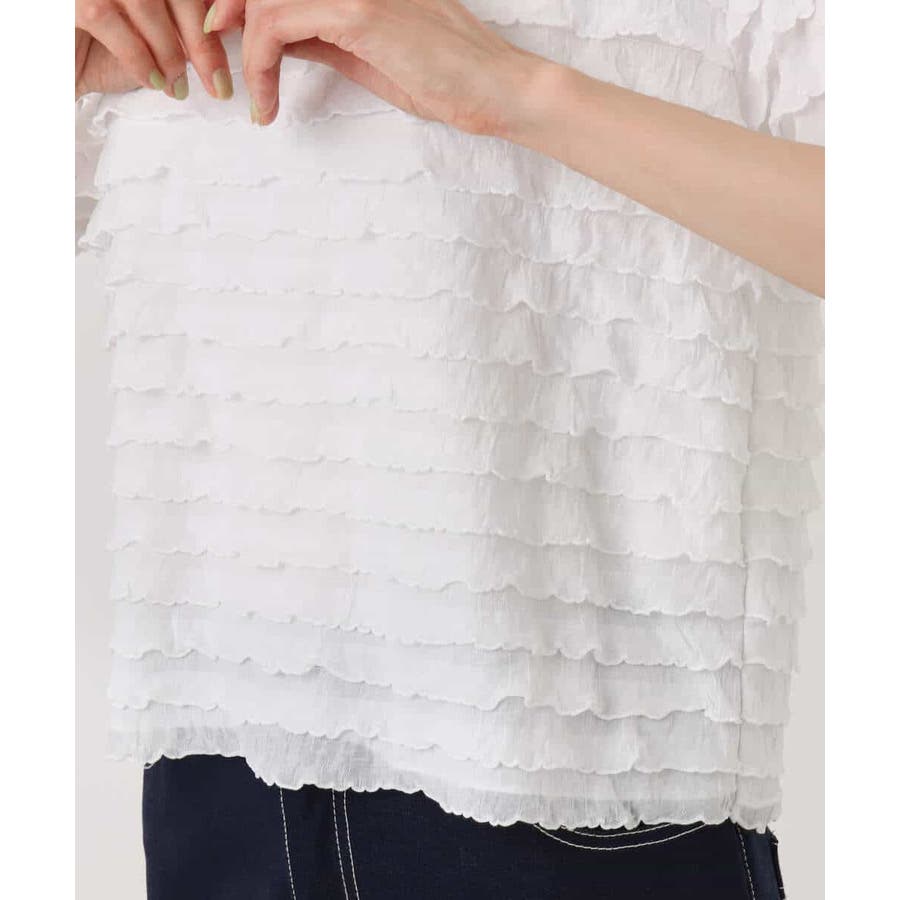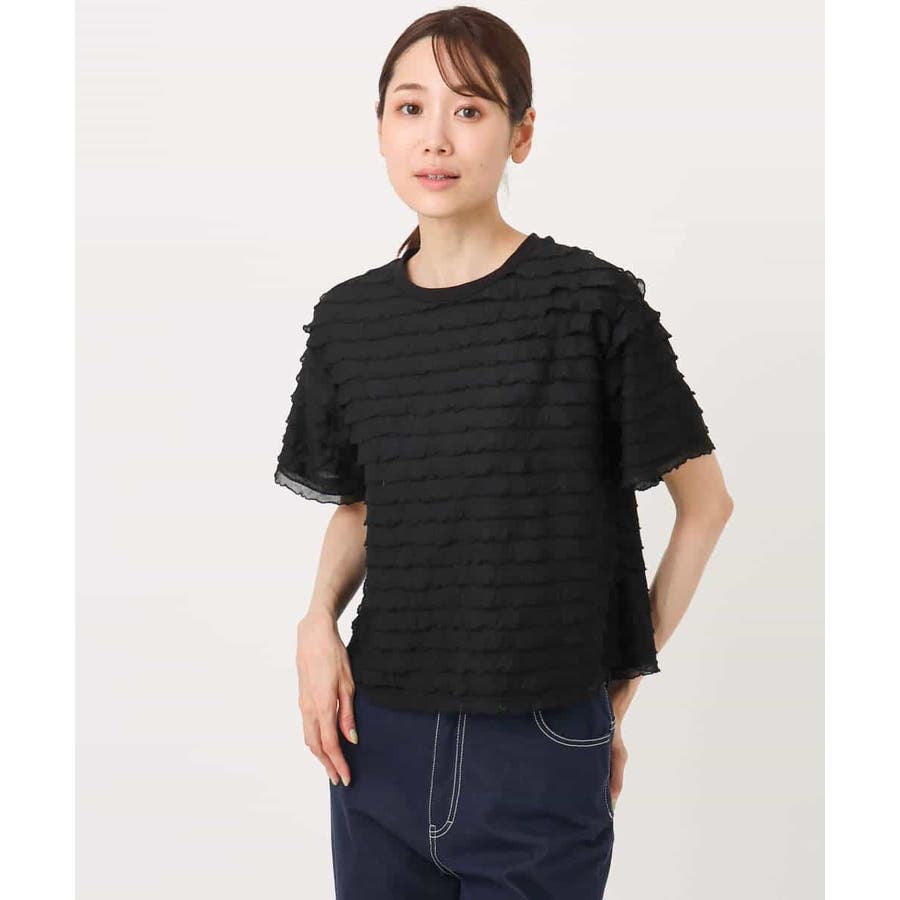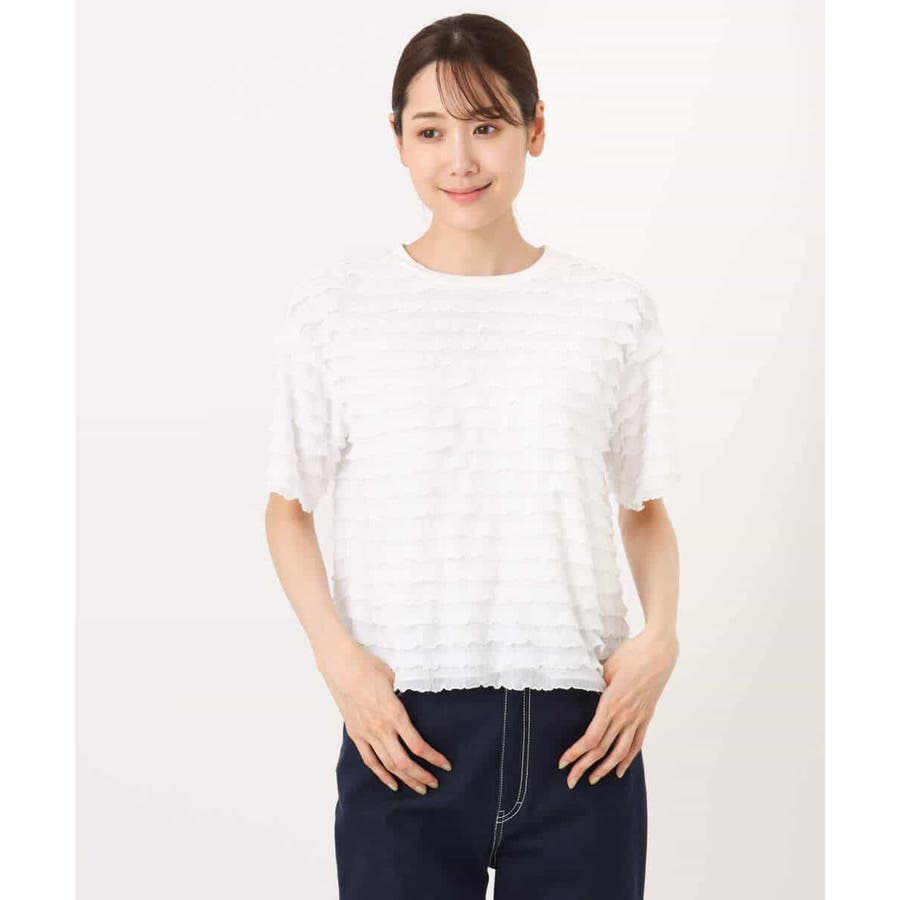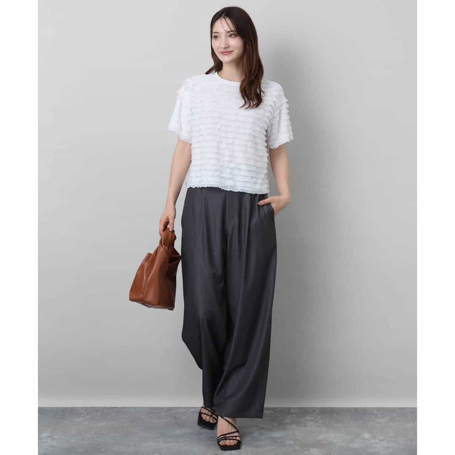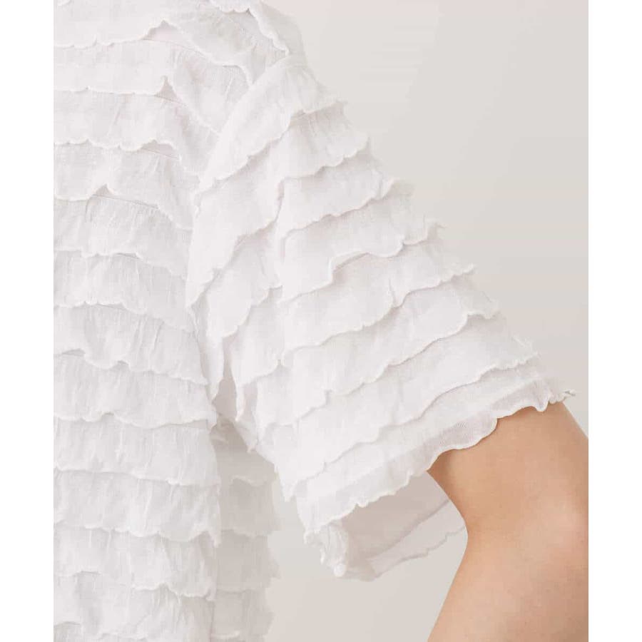 素材感が目をひくフリルティアードのカットソー。コンパクトな丈感とサイジングが着こなしやすい。