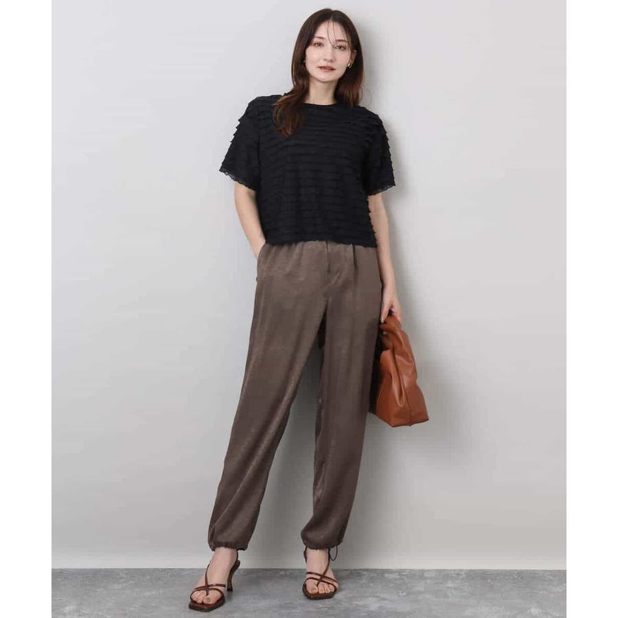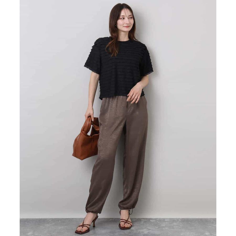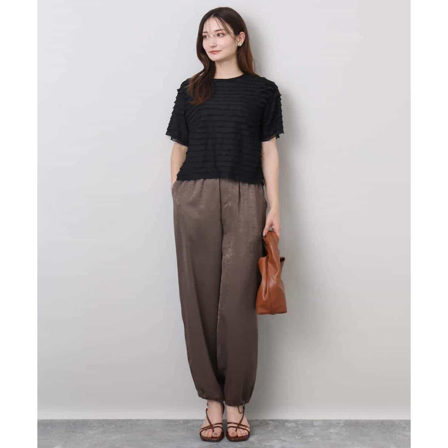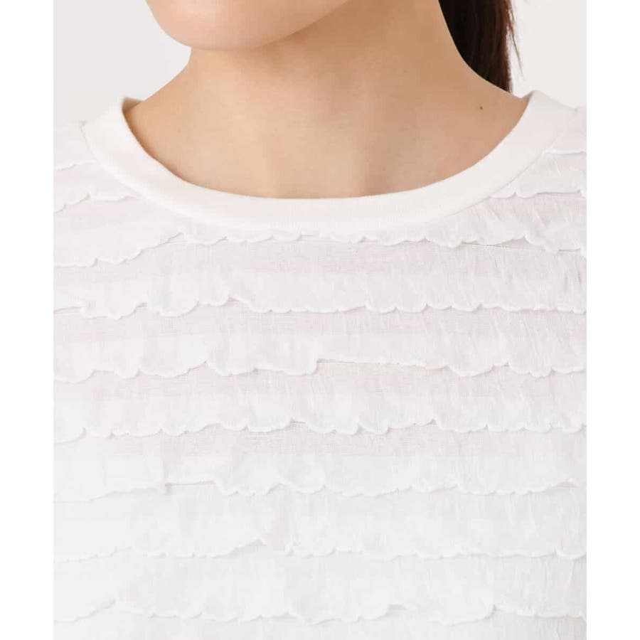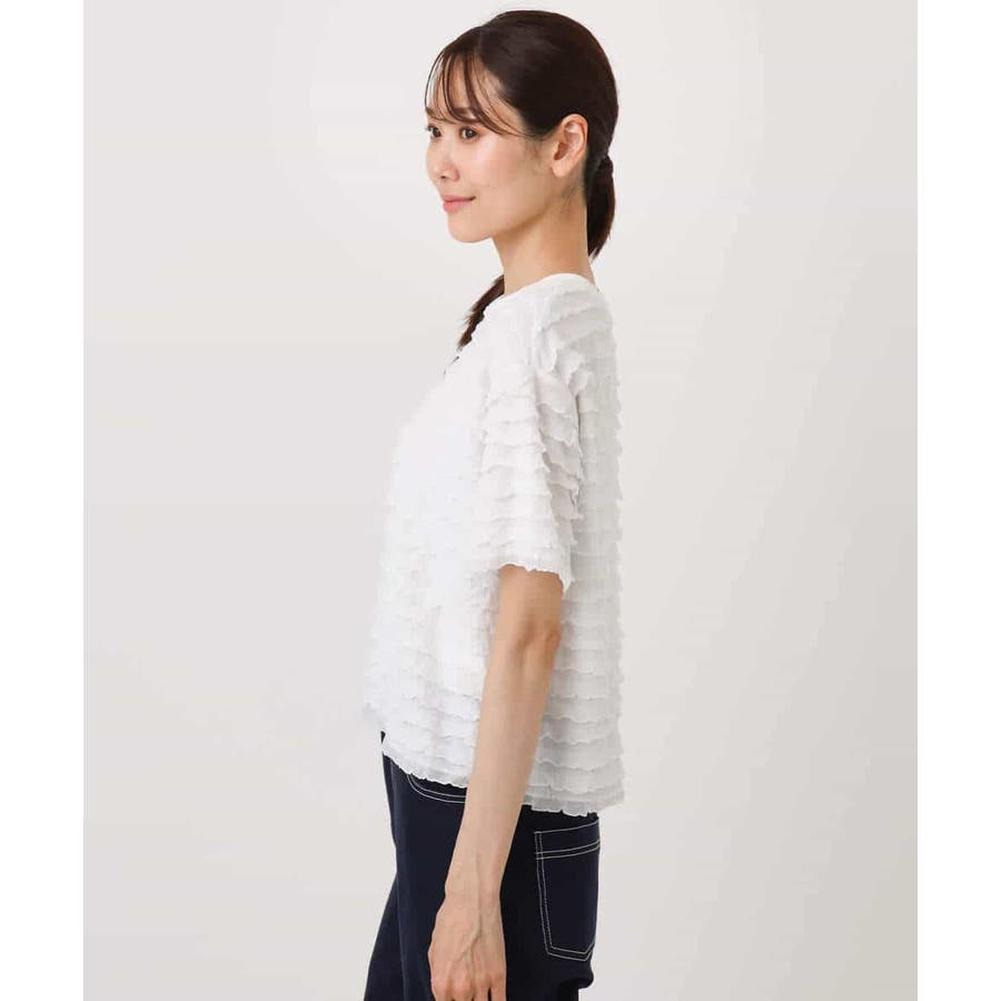 素材感が目をひくフリルティアードのカットソー。コンパクトな丈感とサイジングが着こなしやすい。