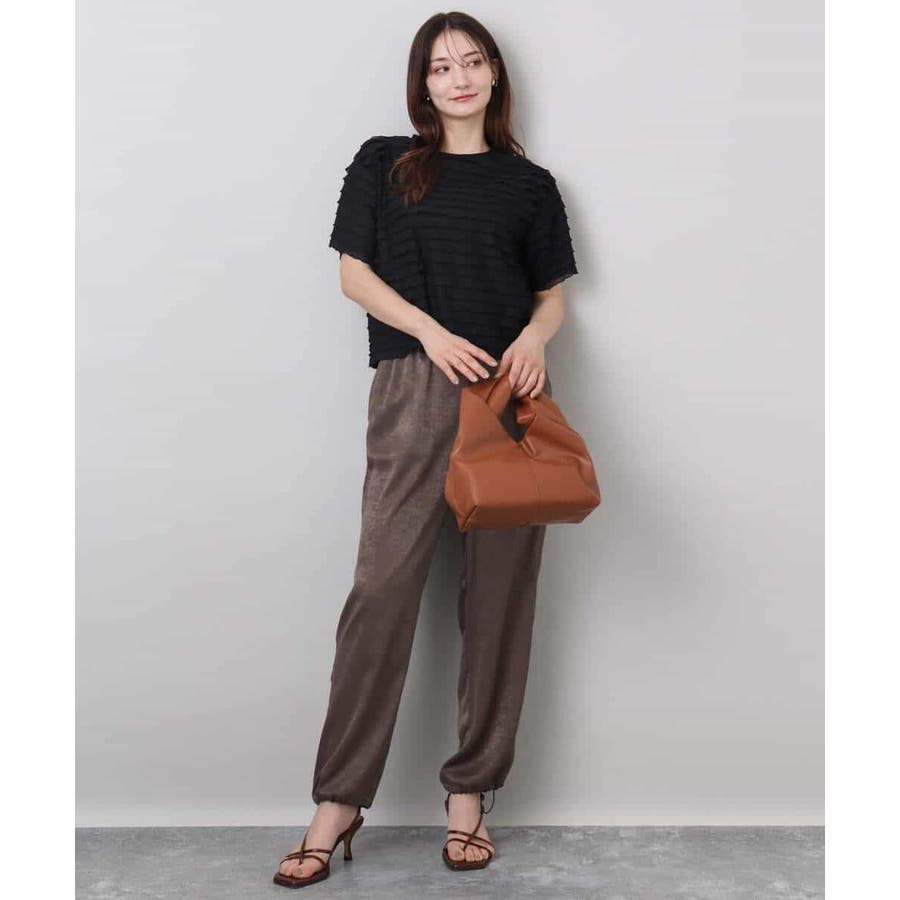細かめのフリルティアードデザインなので、体のラインを拾わずに膨張感もゼロ◎薄くてストレッチの効いた素材感はサラサラとしていて暑い日でもストレスフリーな着心地です。短めな着丈はボトムにインしないで着られてポッコリお腹の私でも問題ナシでした!!脚長効果もあるのでぜひ取り入れてみてください!