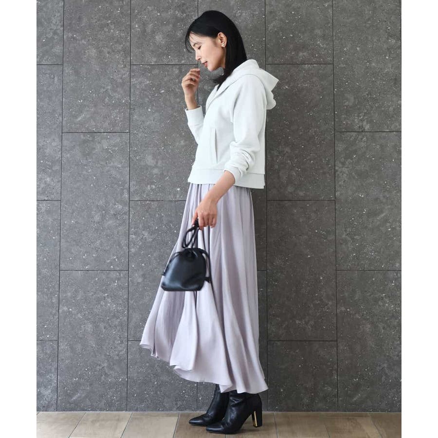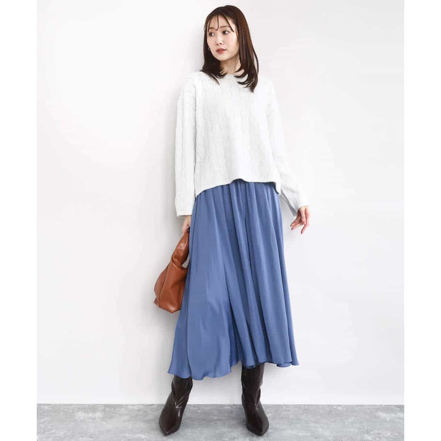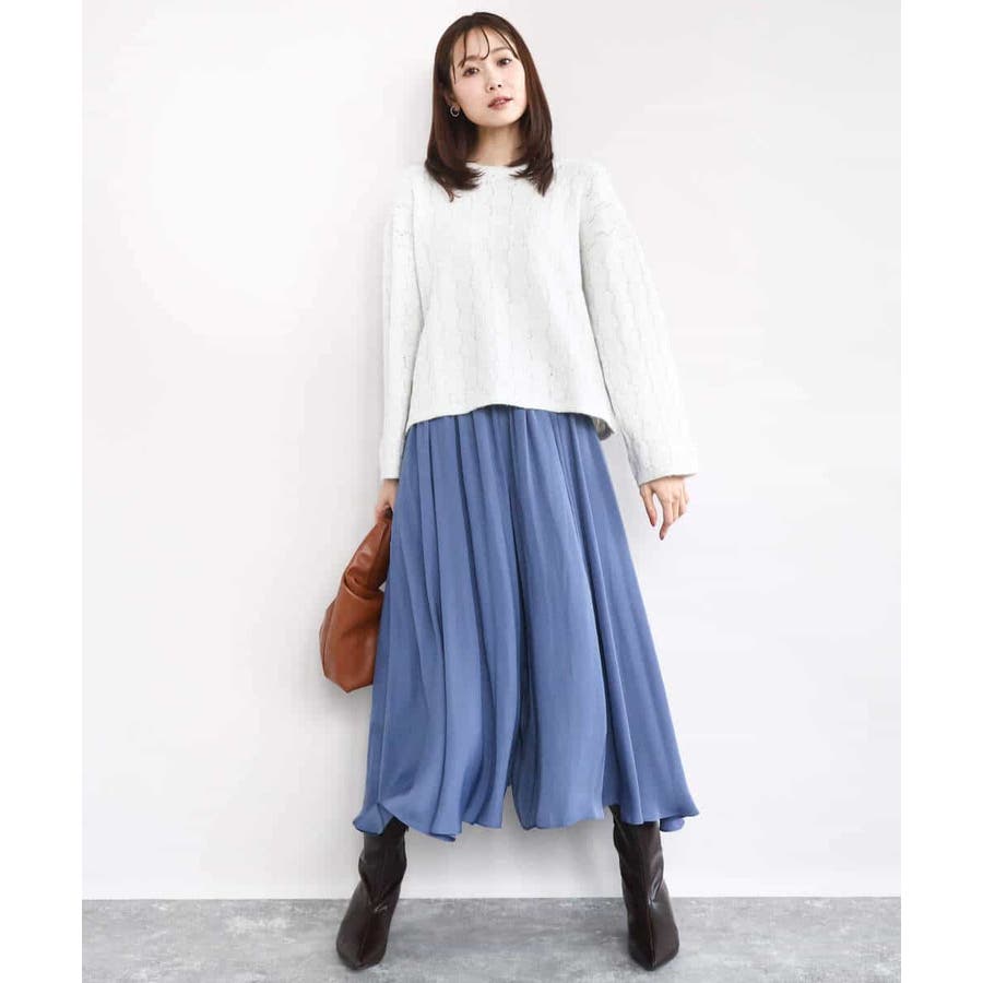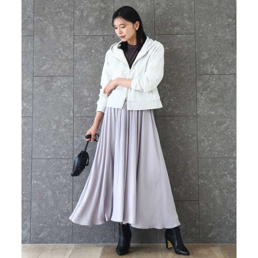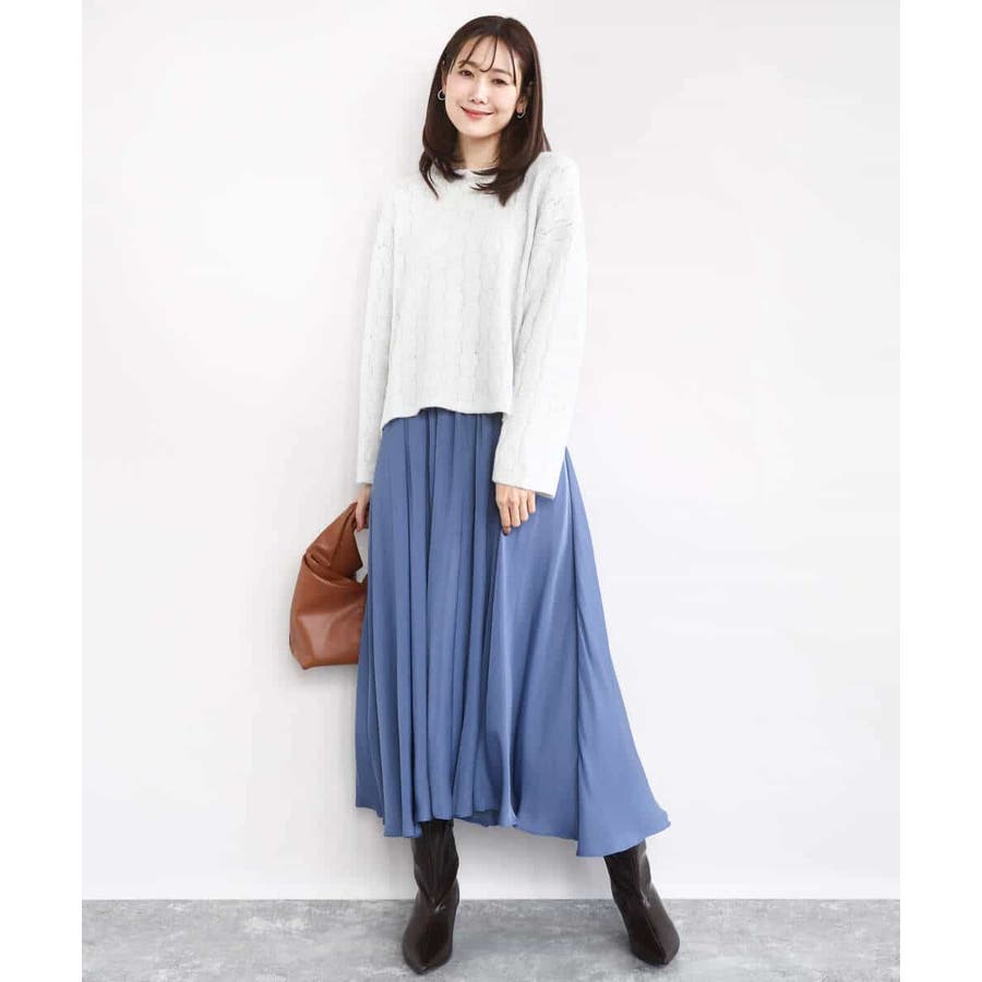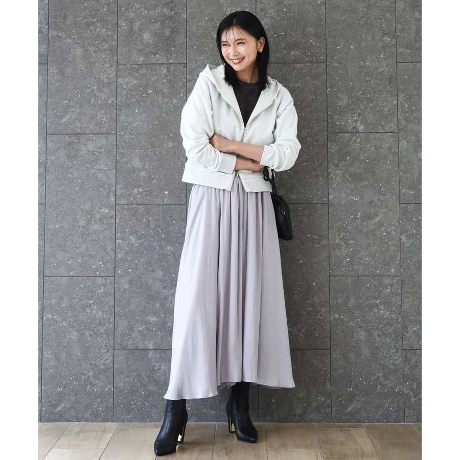 ボリュームのあるシルエットはコンパクトなトップスを合わせてきれいめに、ゆったりしたニットを合わせてカジュアルにと着こなしの幅を楽しめます。同素材のブラウスとセットアップでワンピース見えの着こなしもおすすめです。