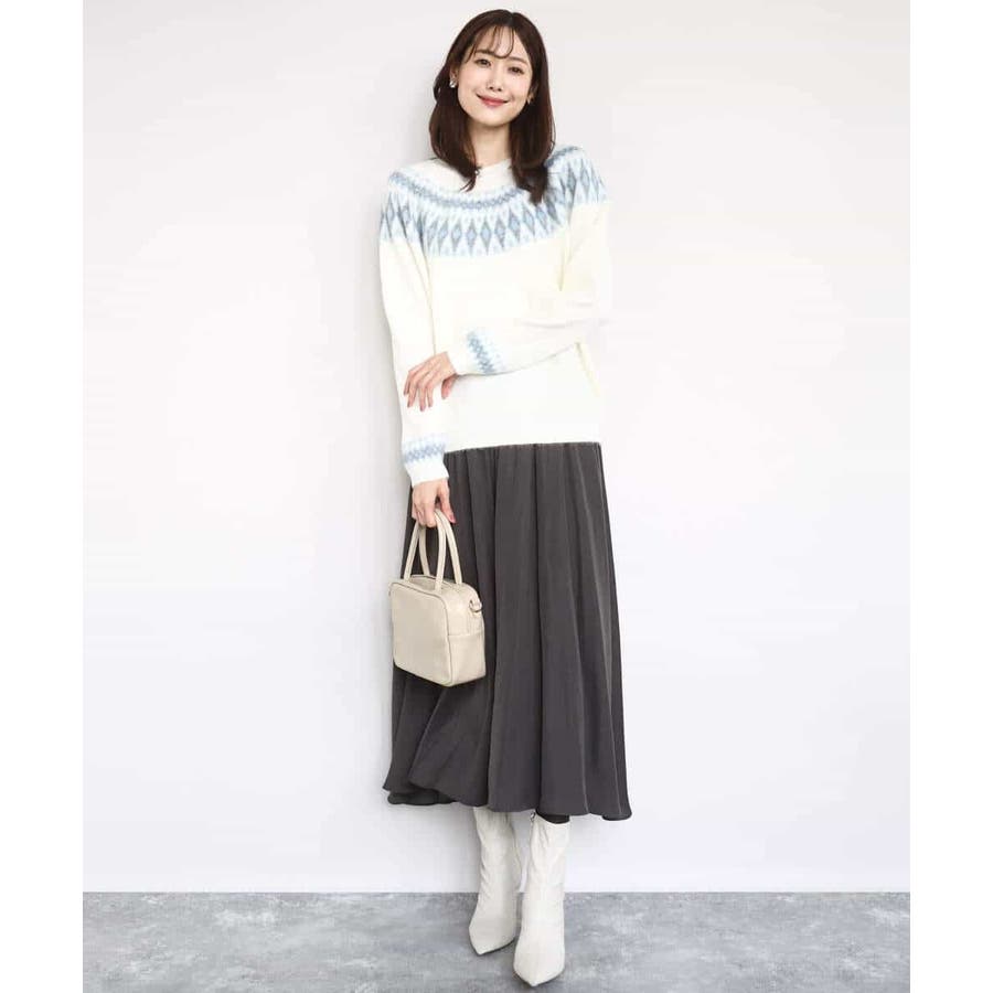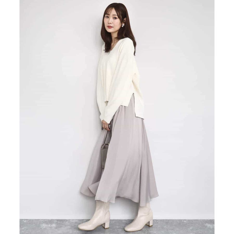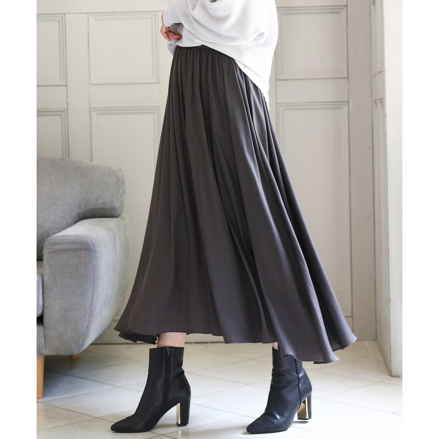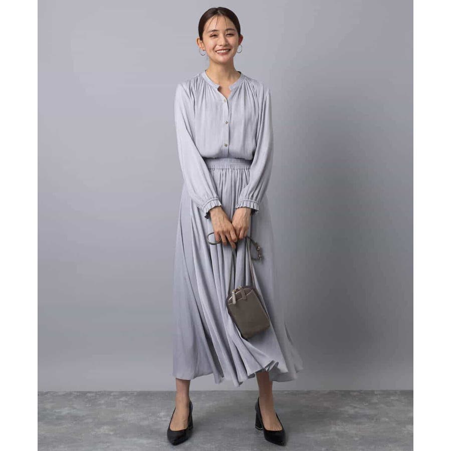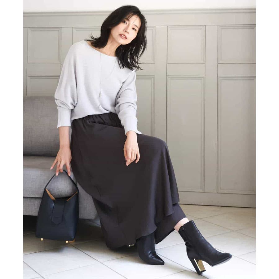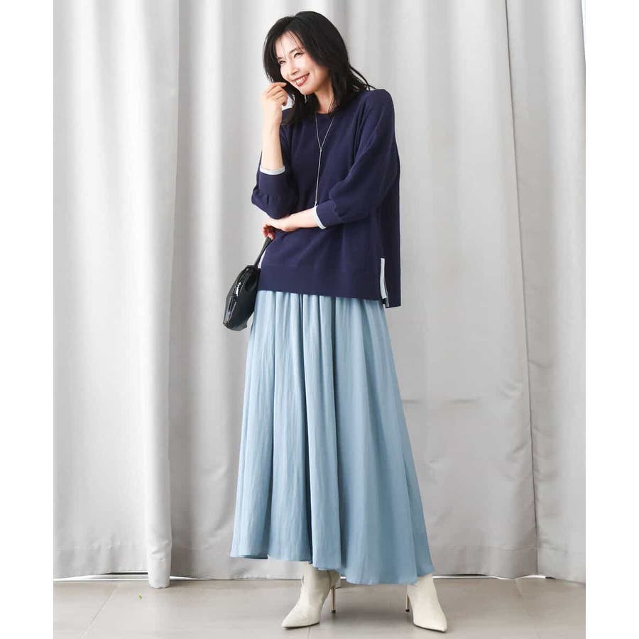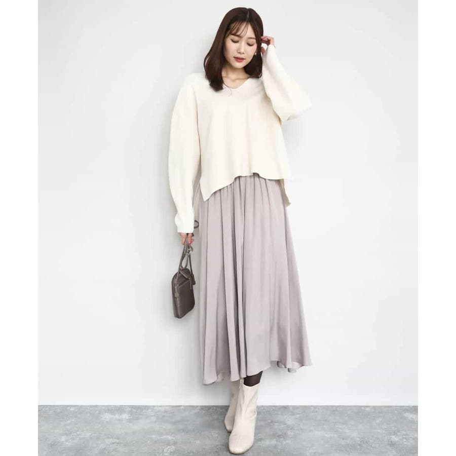 ボリュームのあるシルエットはコンパクトなトップスを合わせてきれいめに、ゆったりしたニットを合わせてカジュアルにと着こなしの幅を楽しめます。同素材のブラウスとセットアップでワンピース見えの着こなしもおすすめです。