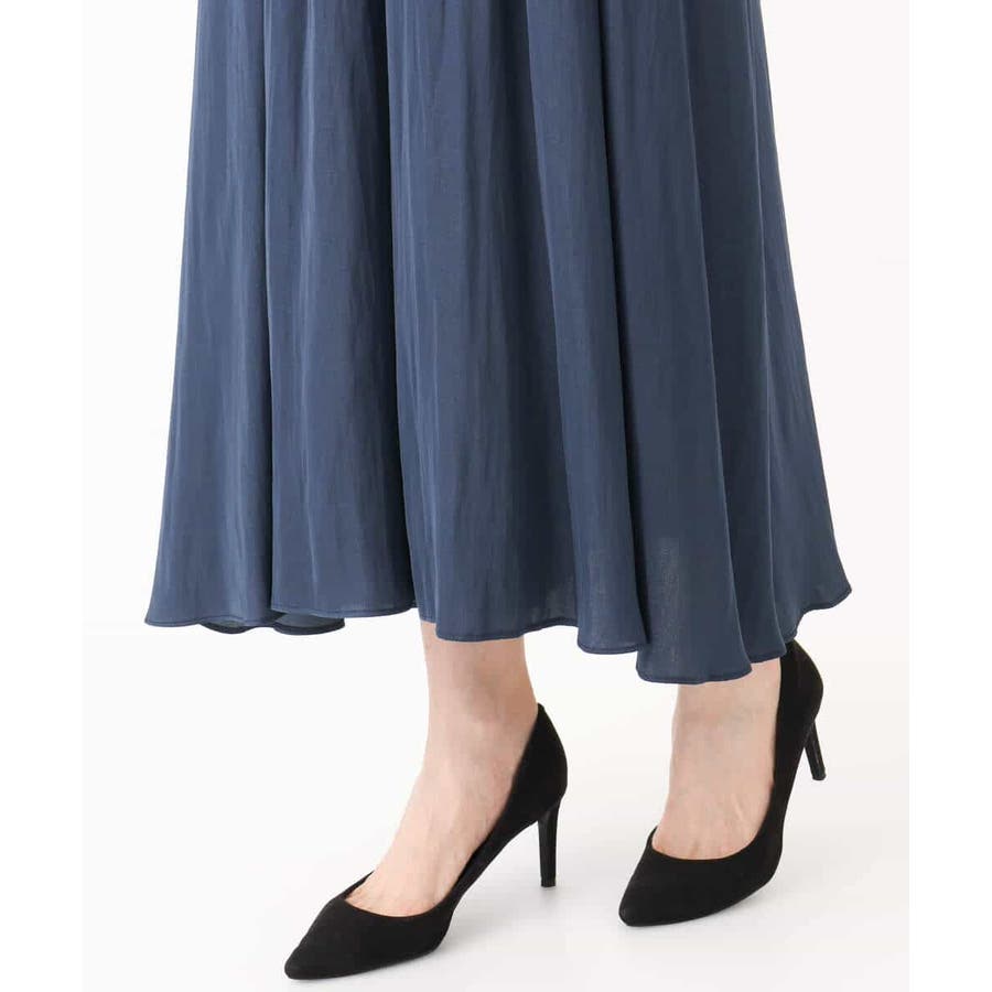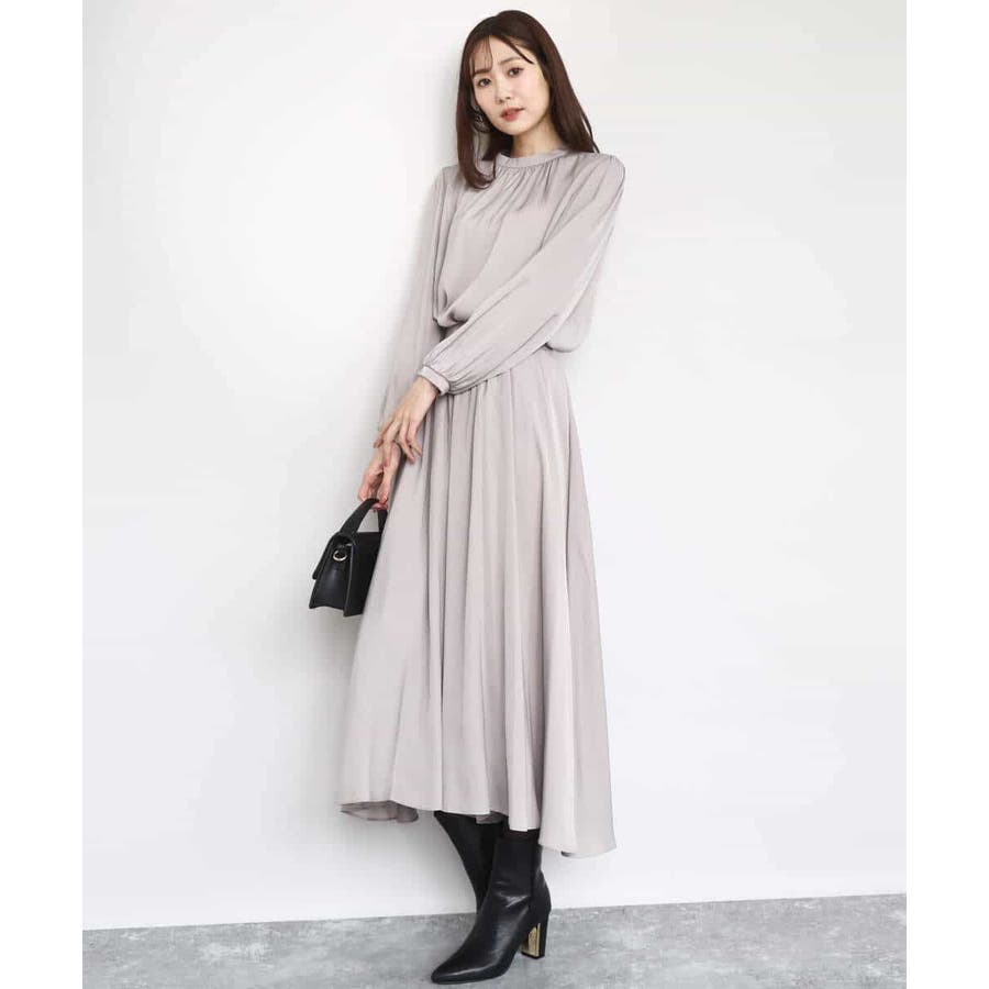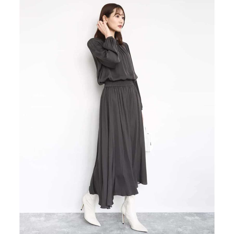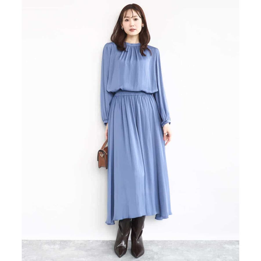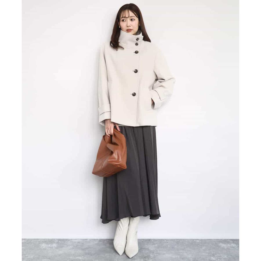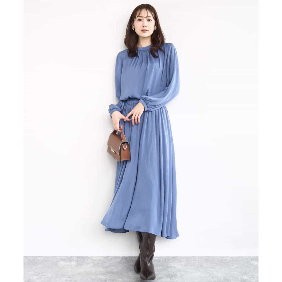 上品な光沢感と程よいパウダリータッチの起毛サテン地を使用。合繊素材なのでシワになりにくく、扱いのラクさも魅力的。裏地ありで秋から春にかけてちょうどいい素材感です。