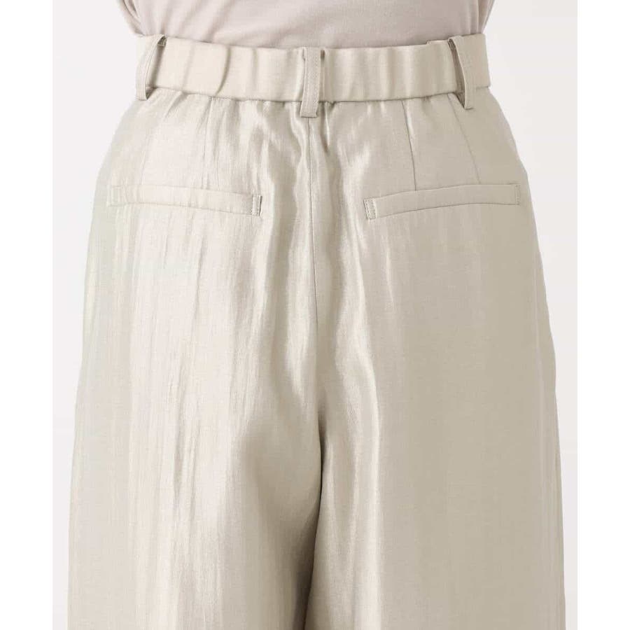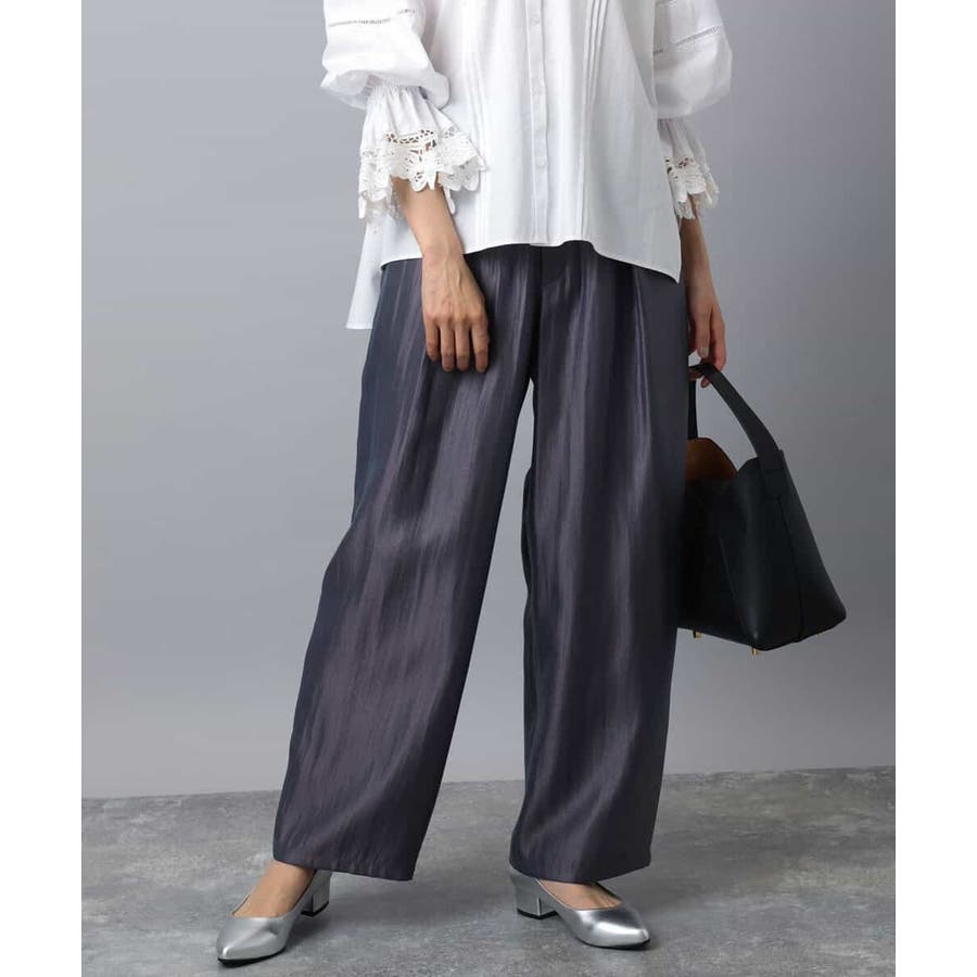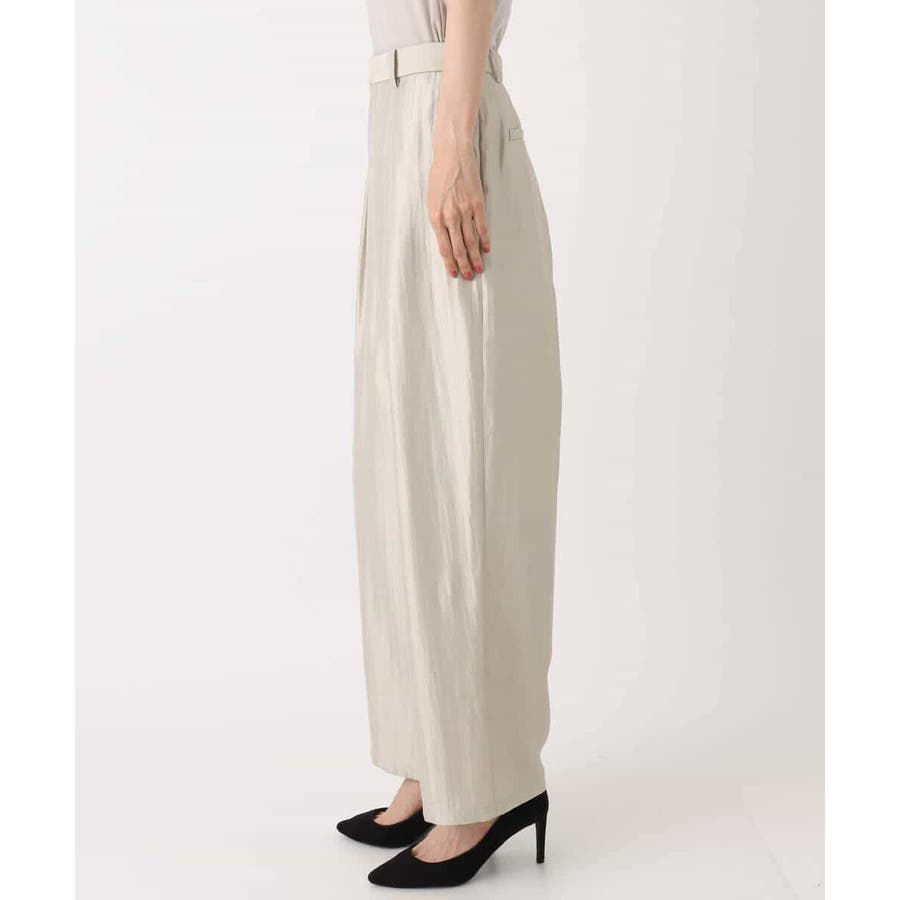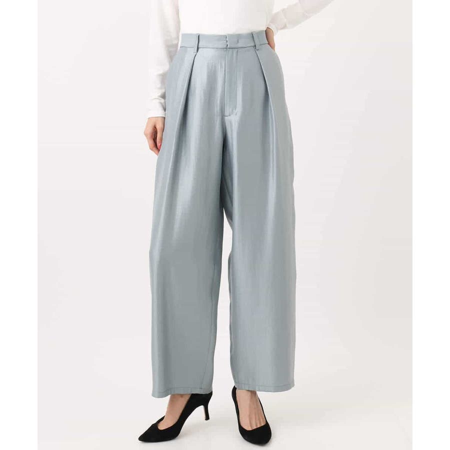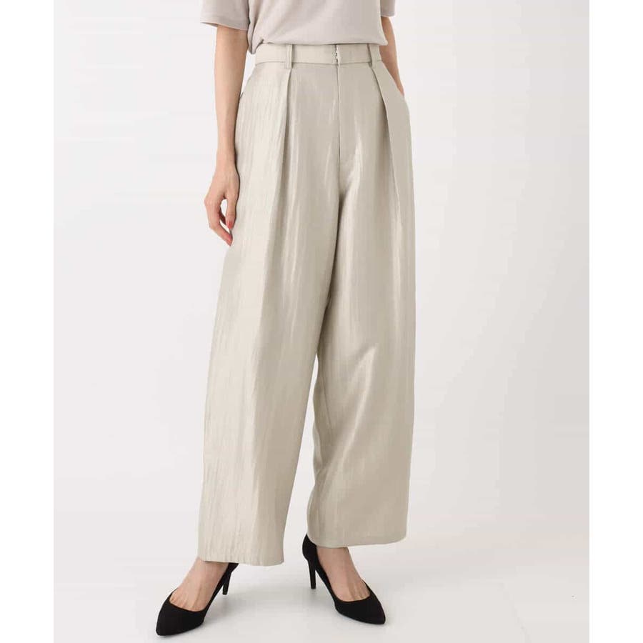 艶やかな光沢がトレンド感たっぷりのパンツ。フロントのタックをしっかりと取ることで、履きやすいバレルシルエットに仕上げています。