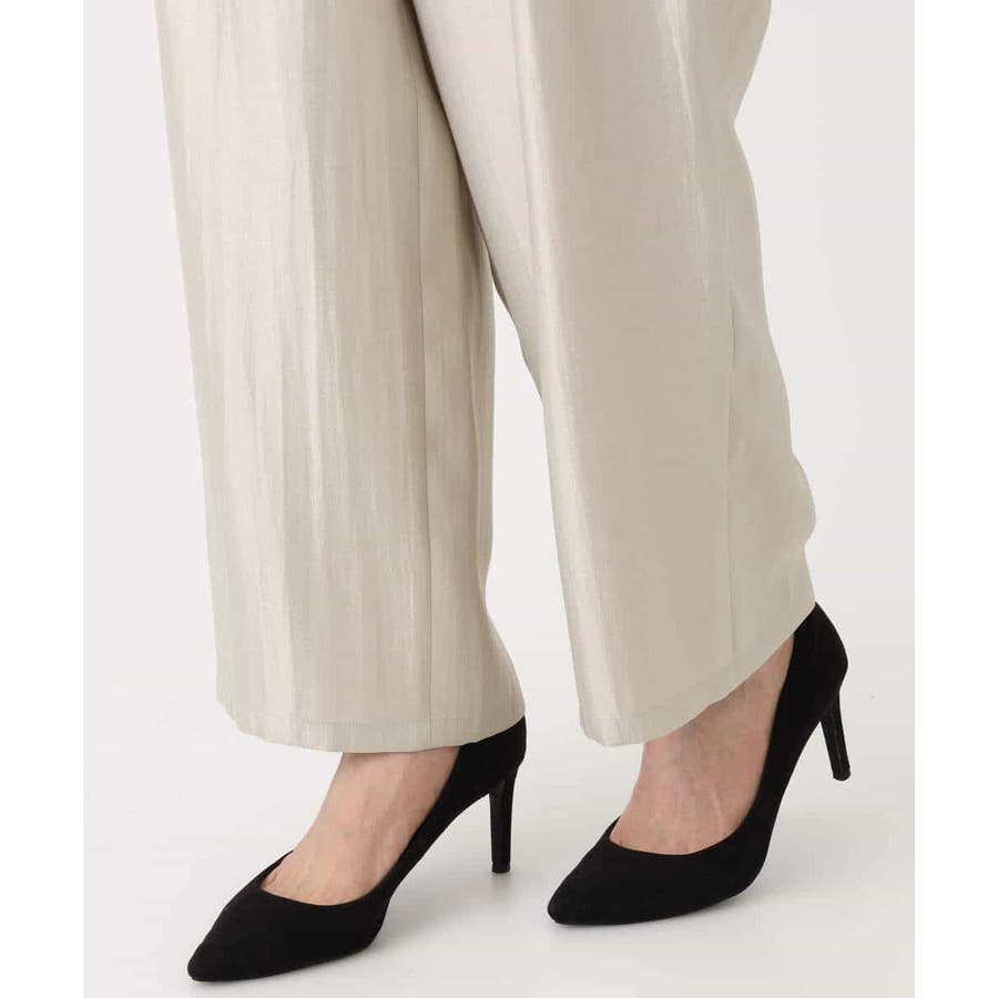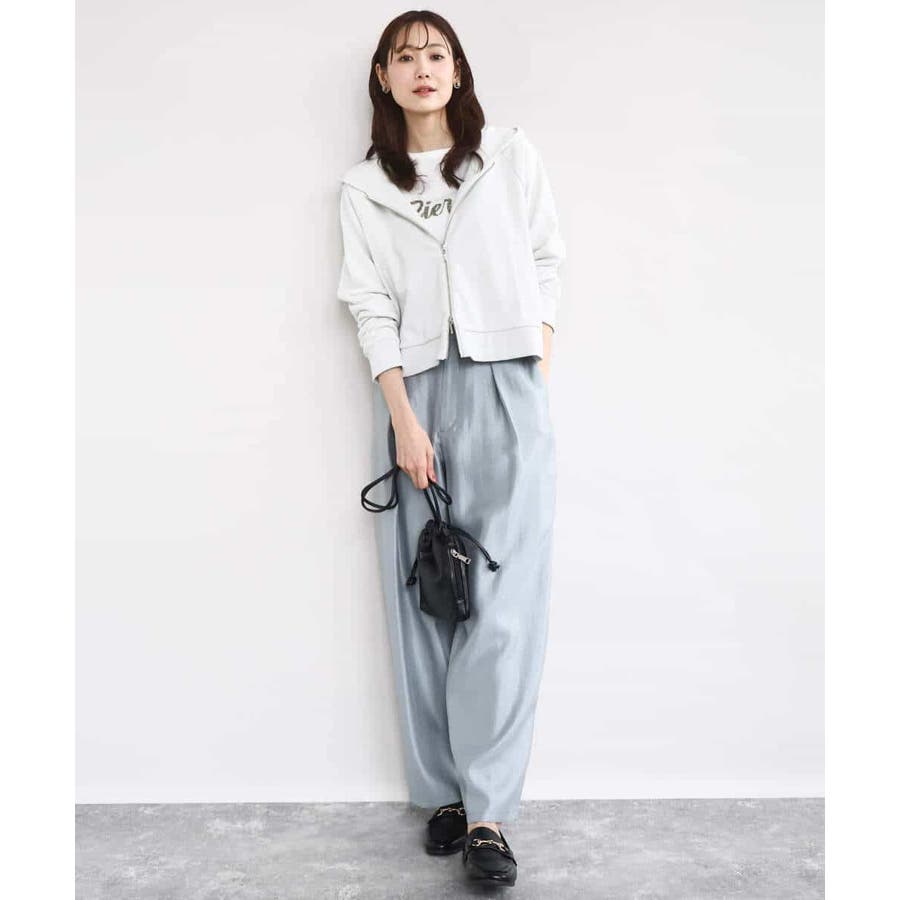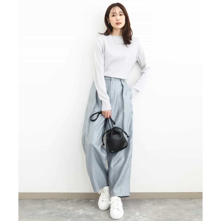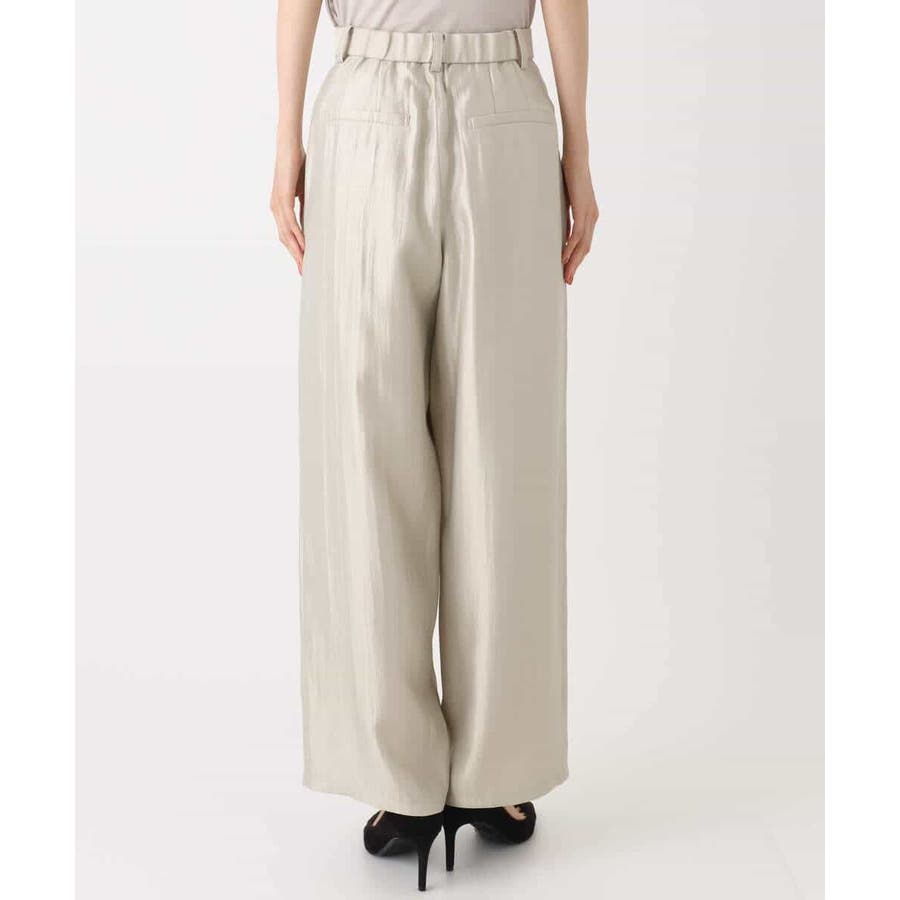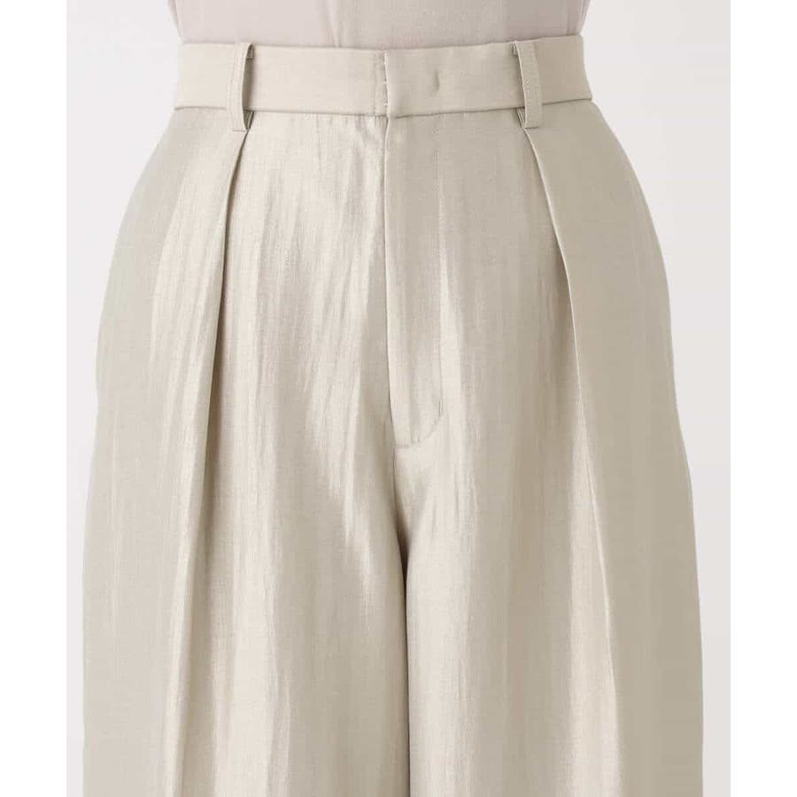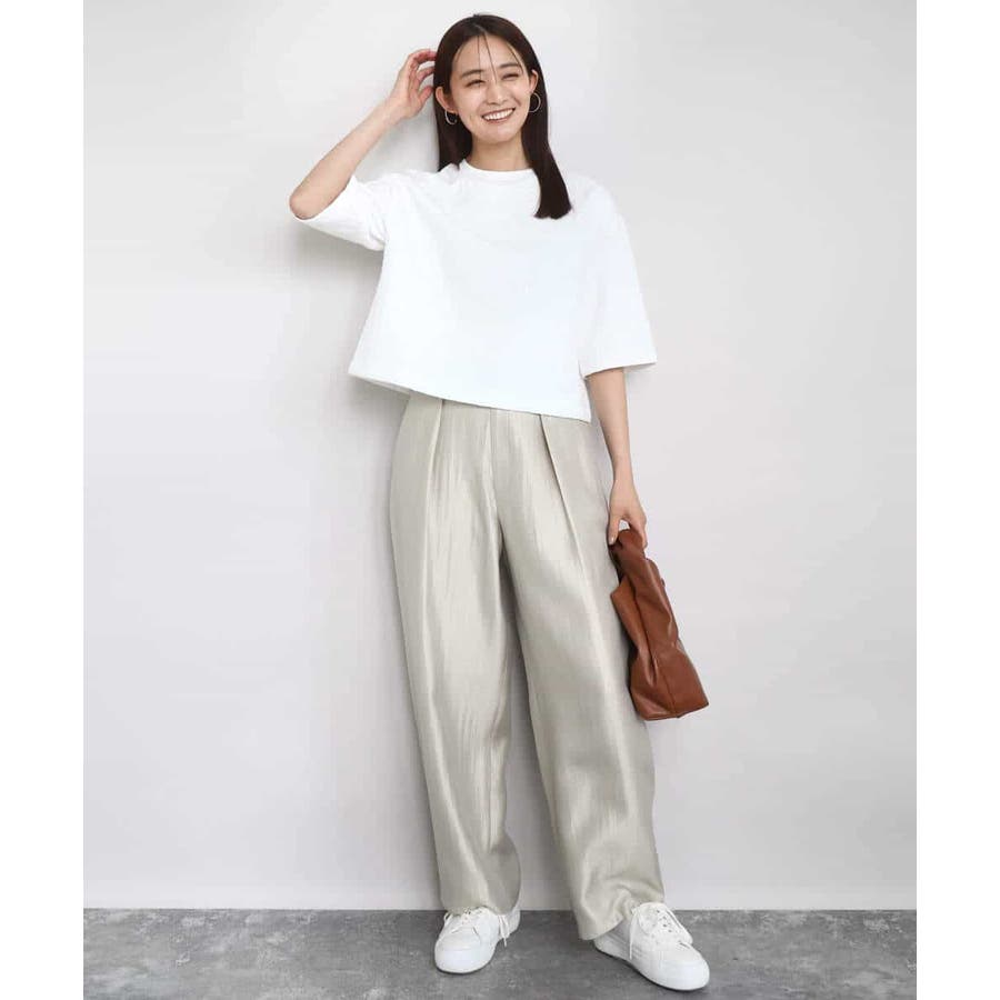 艶やかな光沢がトレンド感たっぷりのパンツ。フロントのタックをしっかりと取ることで、履きやすいバレルシルエットに仕上げています。