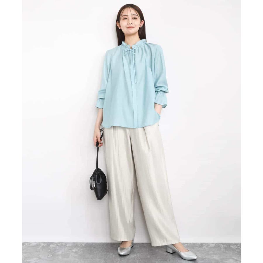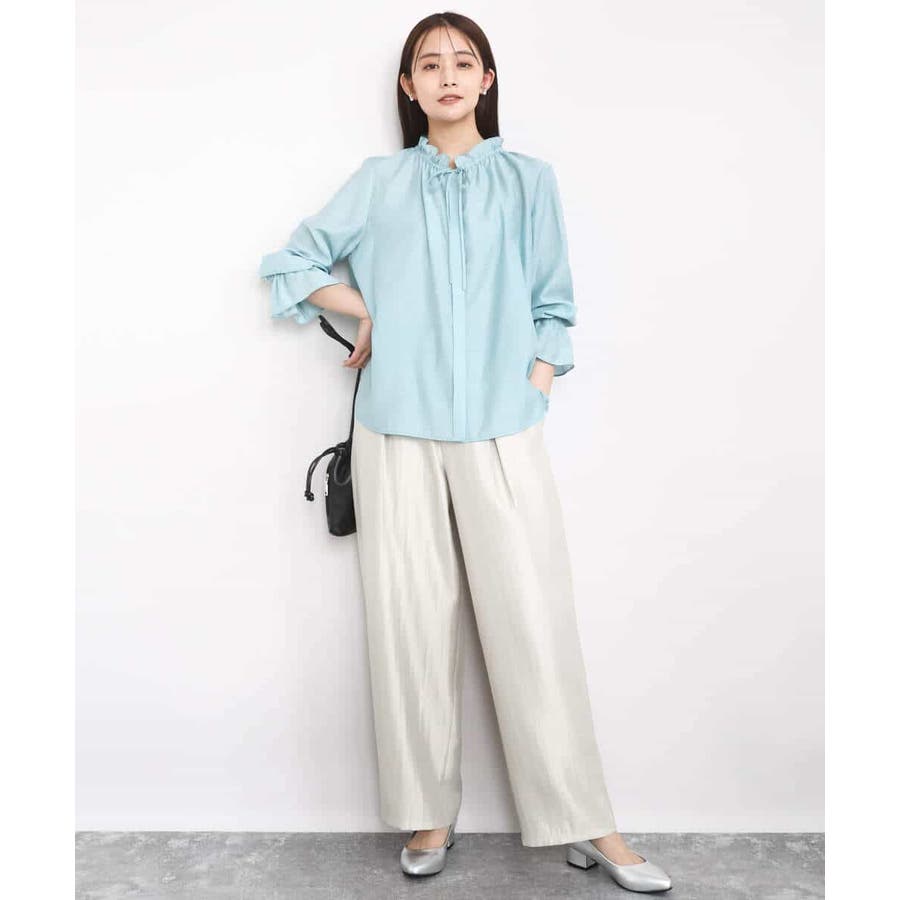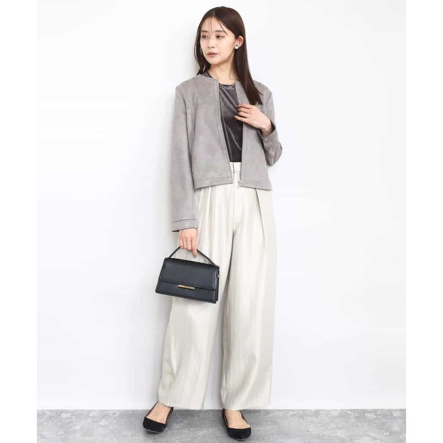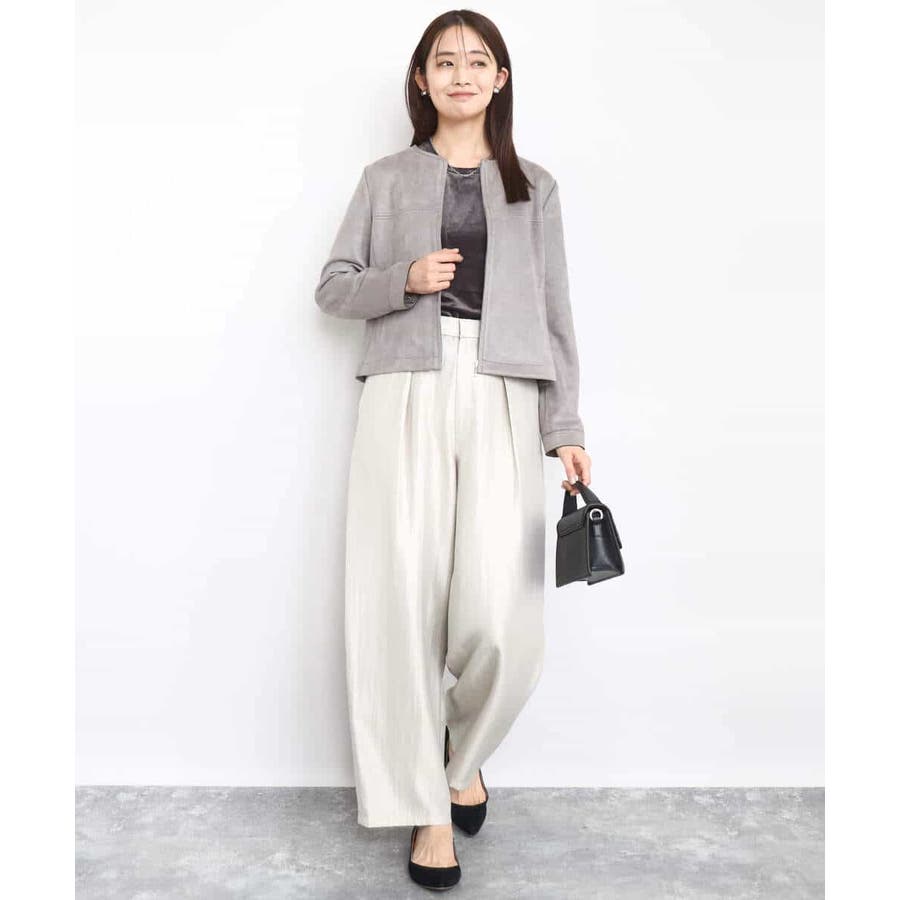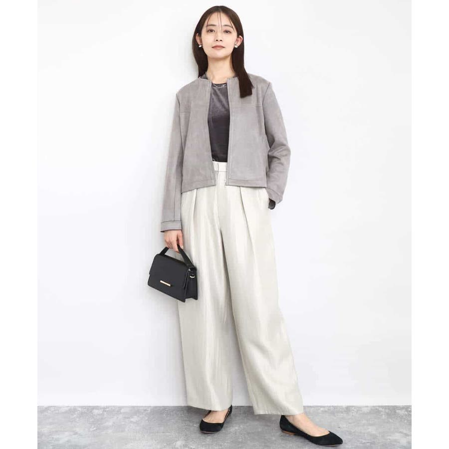 艶やかな光沢がトレンド感たっぷりのパンツ。フロントのタックをしっかりと取ることで、履きやすいバレルシルエットに仕上げています。