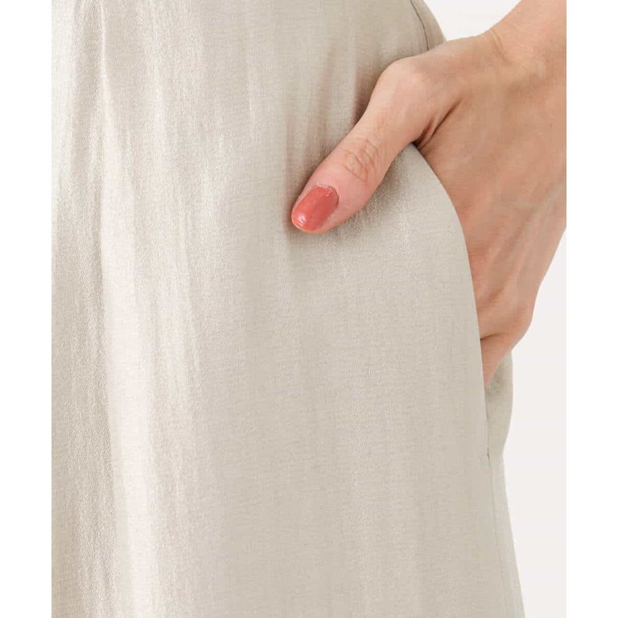 光沢感がきれいなサテン素材を使用。角度によって色味が変化しコーディネートのポイントに。