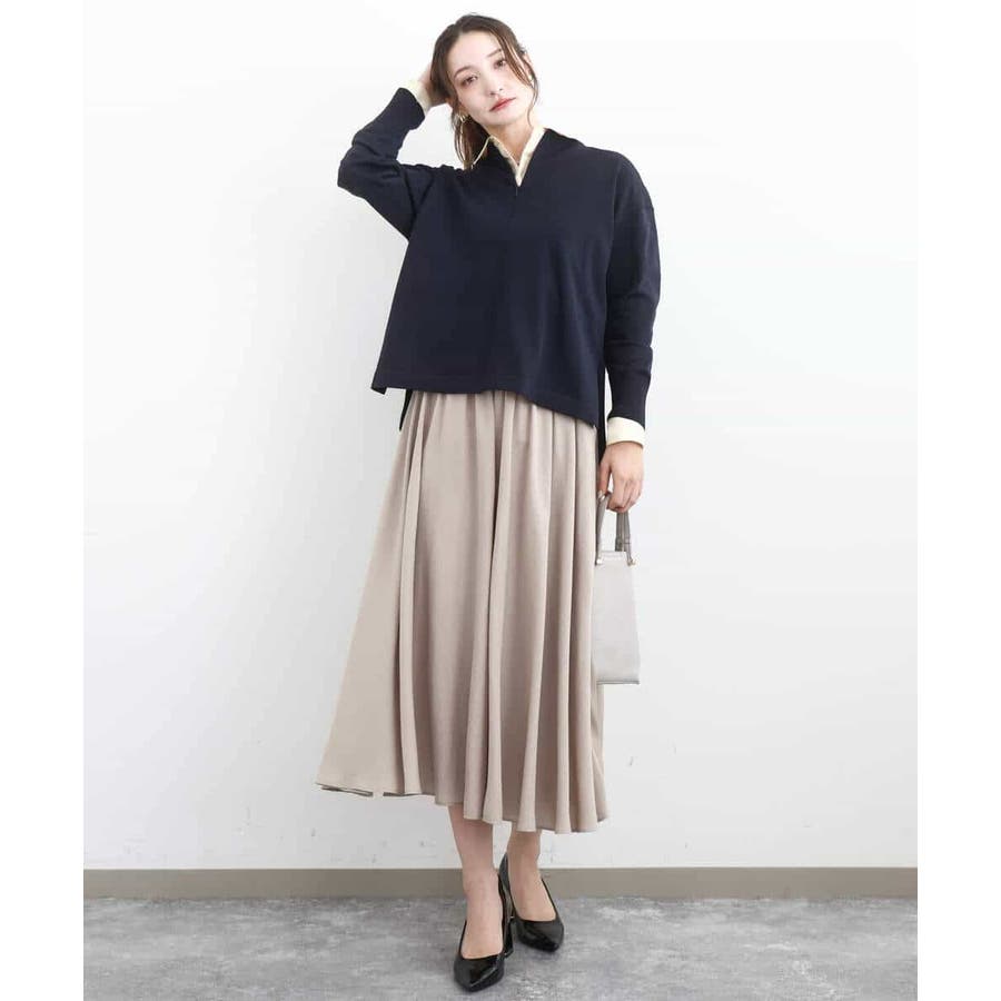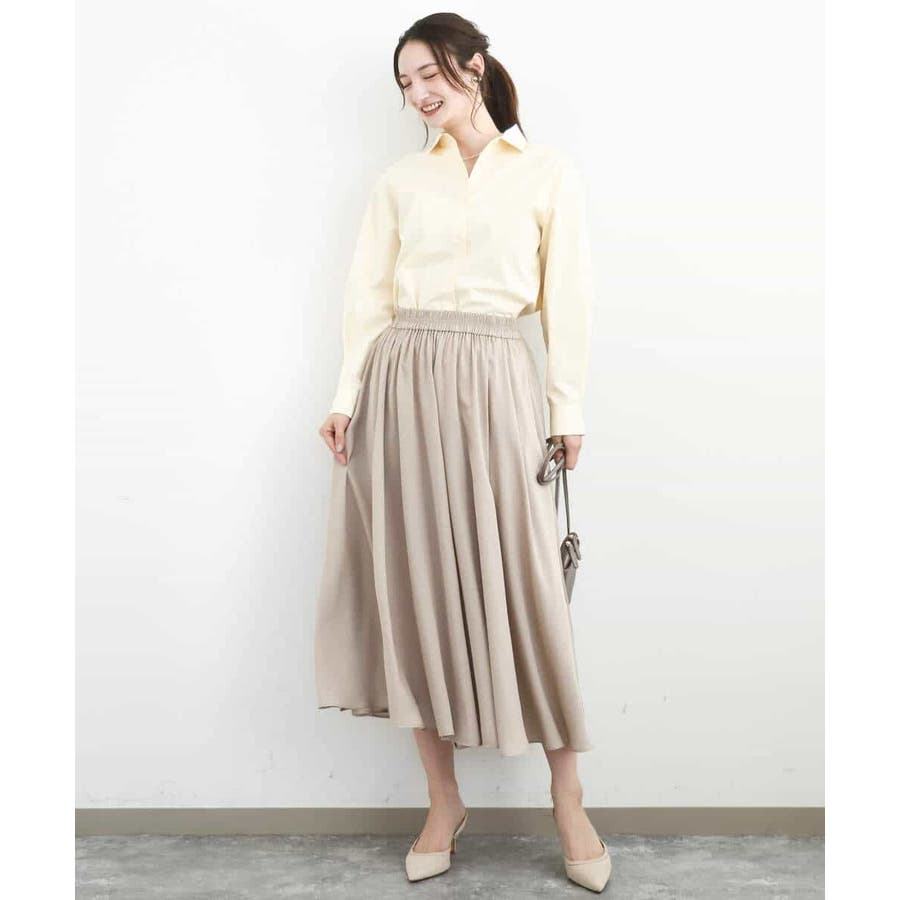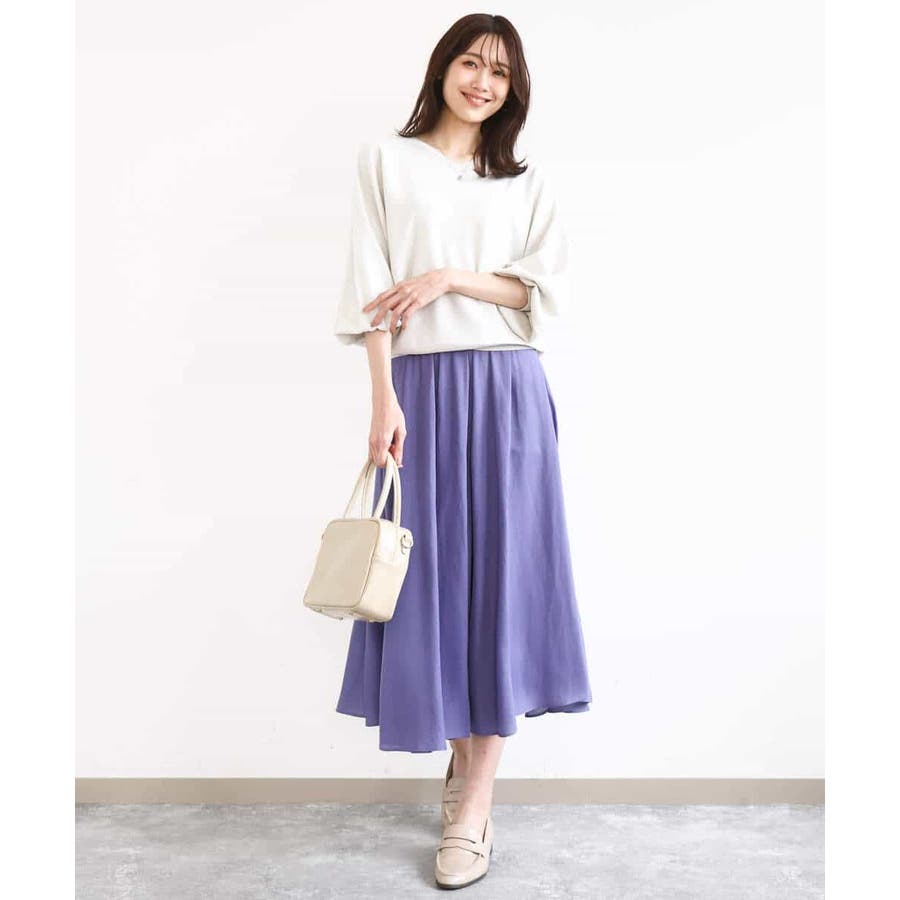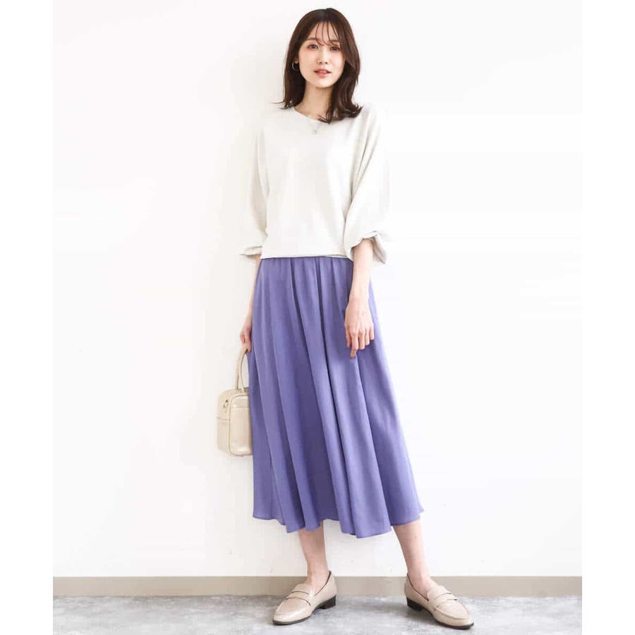 ブラウスをボトムにインしてきれいめに、Tシャツとさらっと合わせてカジュアルに。合わせるトップスや靴を選ばないボトムは汎用性◎。同素材のブラウスとセットアップでワンピース見えの着こなしも楽しめます。