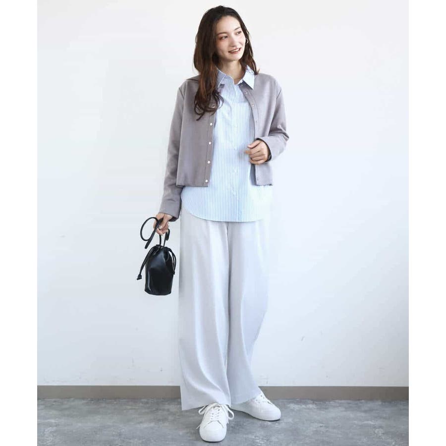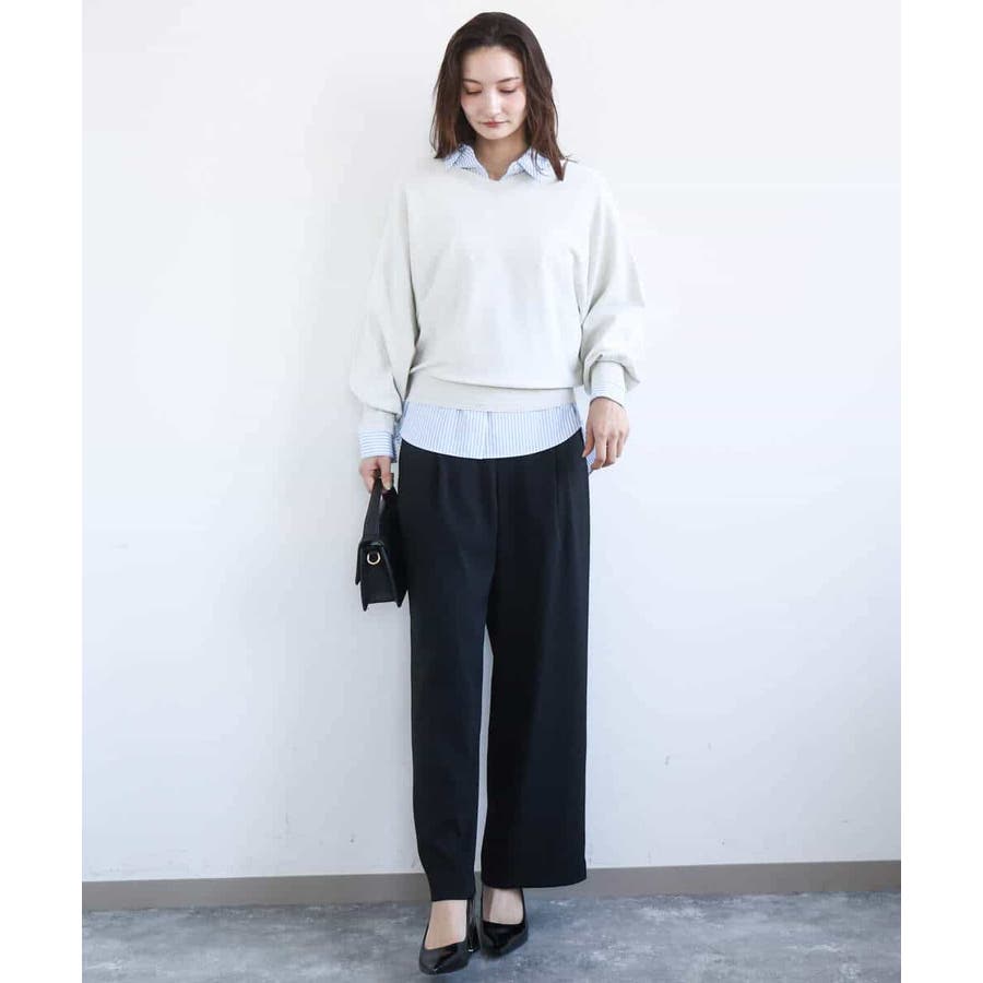 カジュアルにもきれいめにも、コーディネートを選ばないワイドパンツは着回し力が魅力。素材自体はきれい見えなので、ラフなアイテムを合わせてもカジュアルすぎずどこか大人っぽく着こなせます。ラクな着心地はご旅行などにもおすすめです。