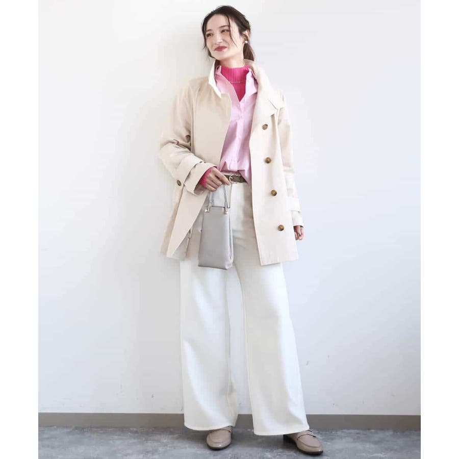 デニムのような見え感で穿ける、デニムライクパンツ。デニムに比べて伸縮性があり、動きやすくて穿き心地抜群です。洗える素材なので、お手入れがラクなのも嬉しいポイント。 どんなアイテムとも合わせやすく、春のスタイリングには特に欠かせない1本だと思います。オールシーズン使える素材感で、1本持っているとかなり重宝しそうです。着丈は152cmの私で、3cmヒールを合わせるときれいに穿けました。