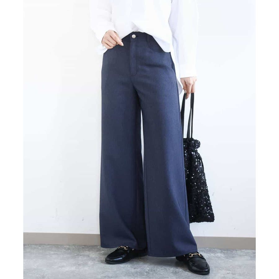 まるでデニムな見た目ながら扱いやすさが嬉しいデニムライクパンツ。シルエットは、すっきりとしたストレートワイドシルエット。アイボリーのみ透け防止のため裏地付き。