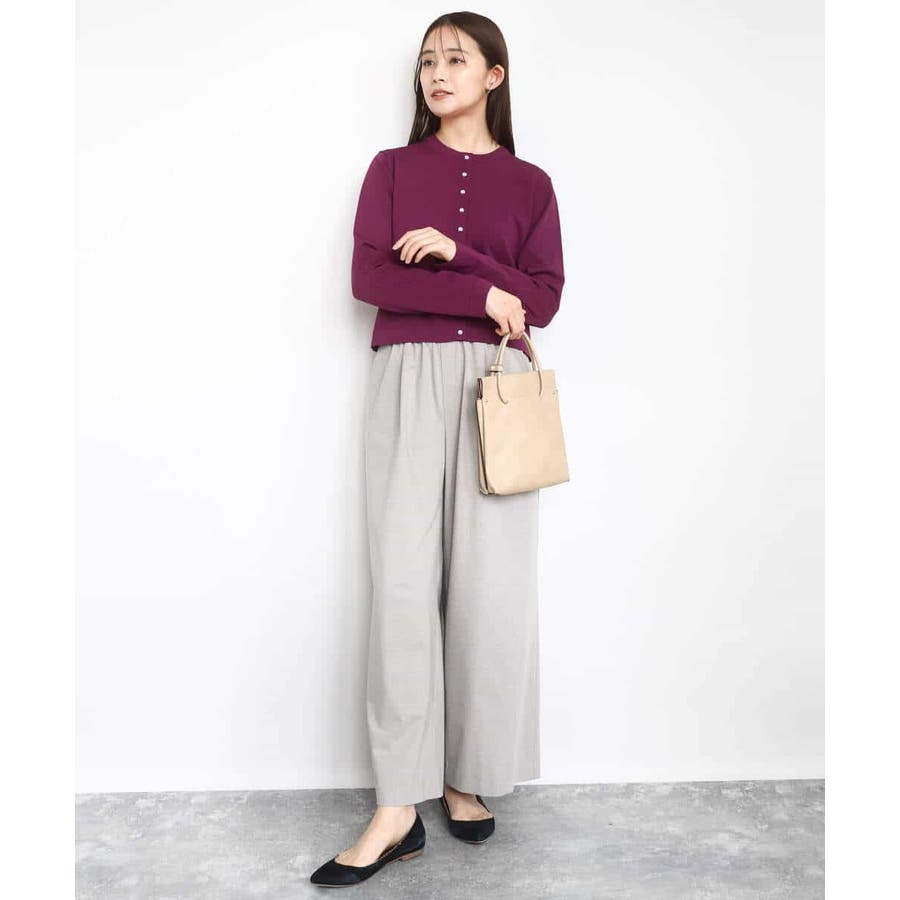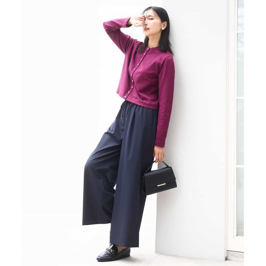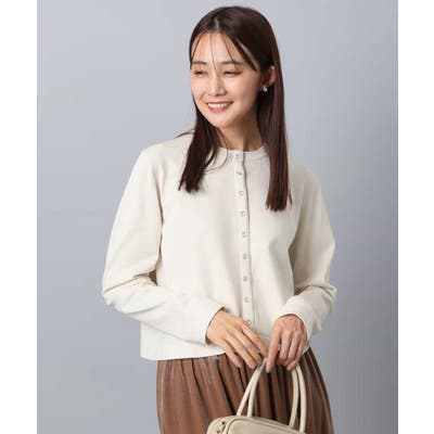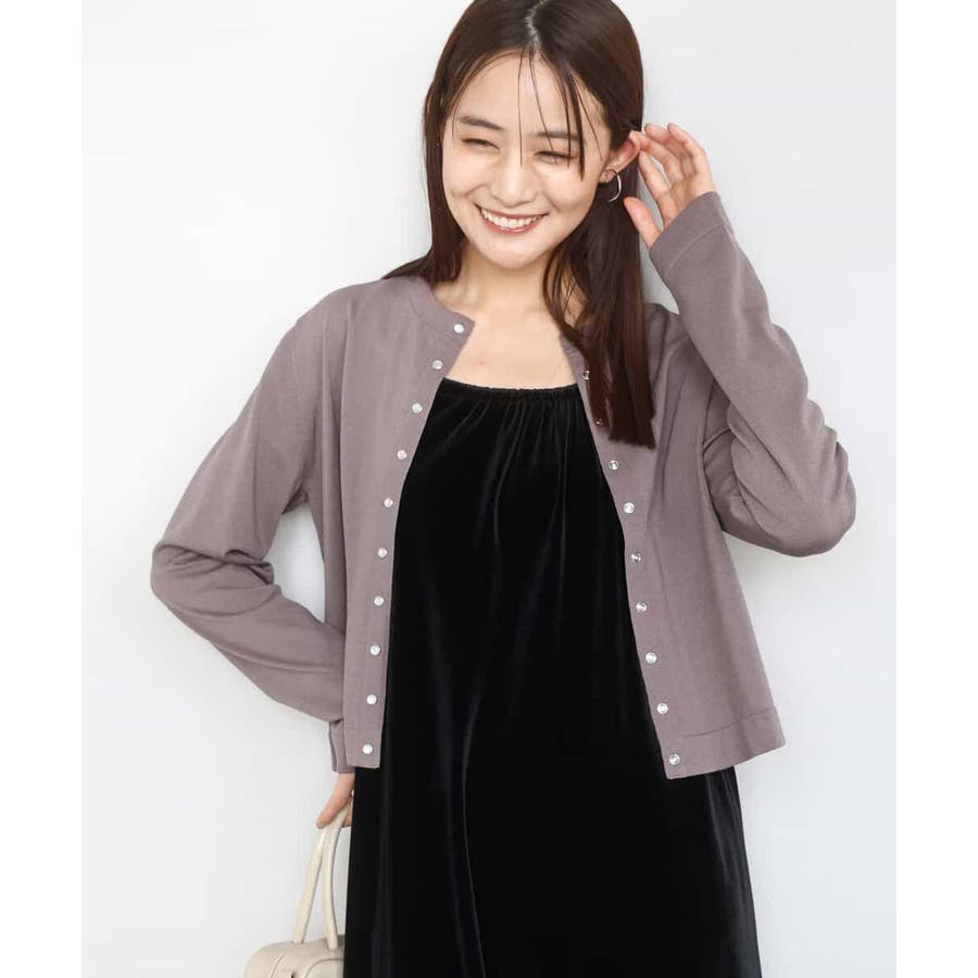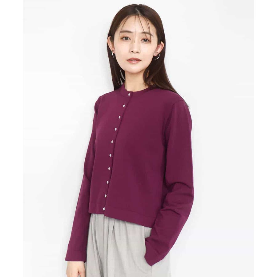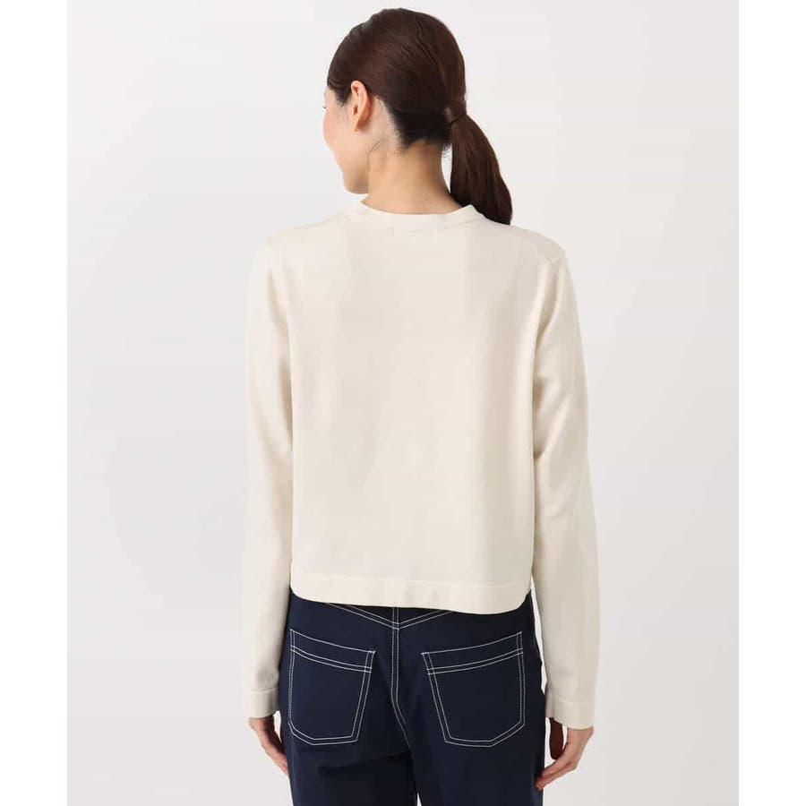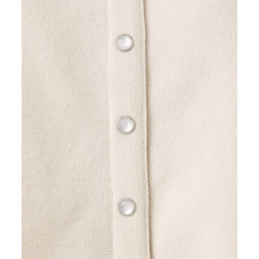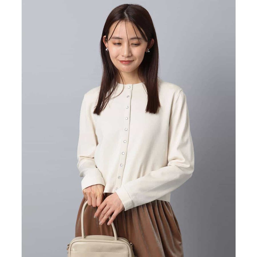 前立てに並んだドット釦がデザインポイントのニットカーディガン。シンプルなクルーネックデザインとコンパクトなサイズ感で、シーンを選ばずに活躍してくれます。