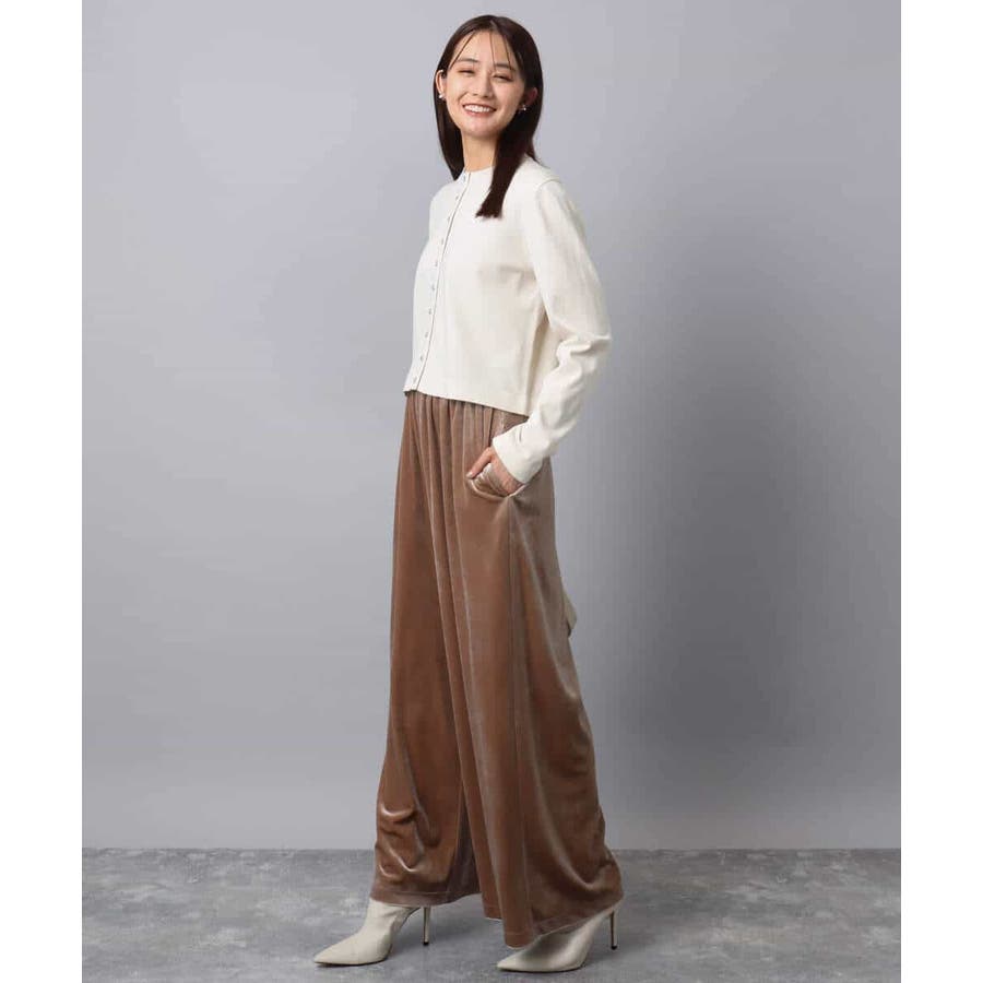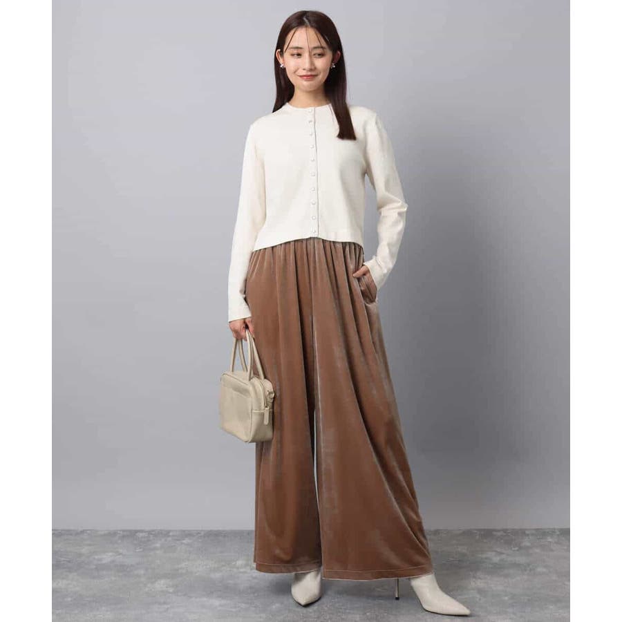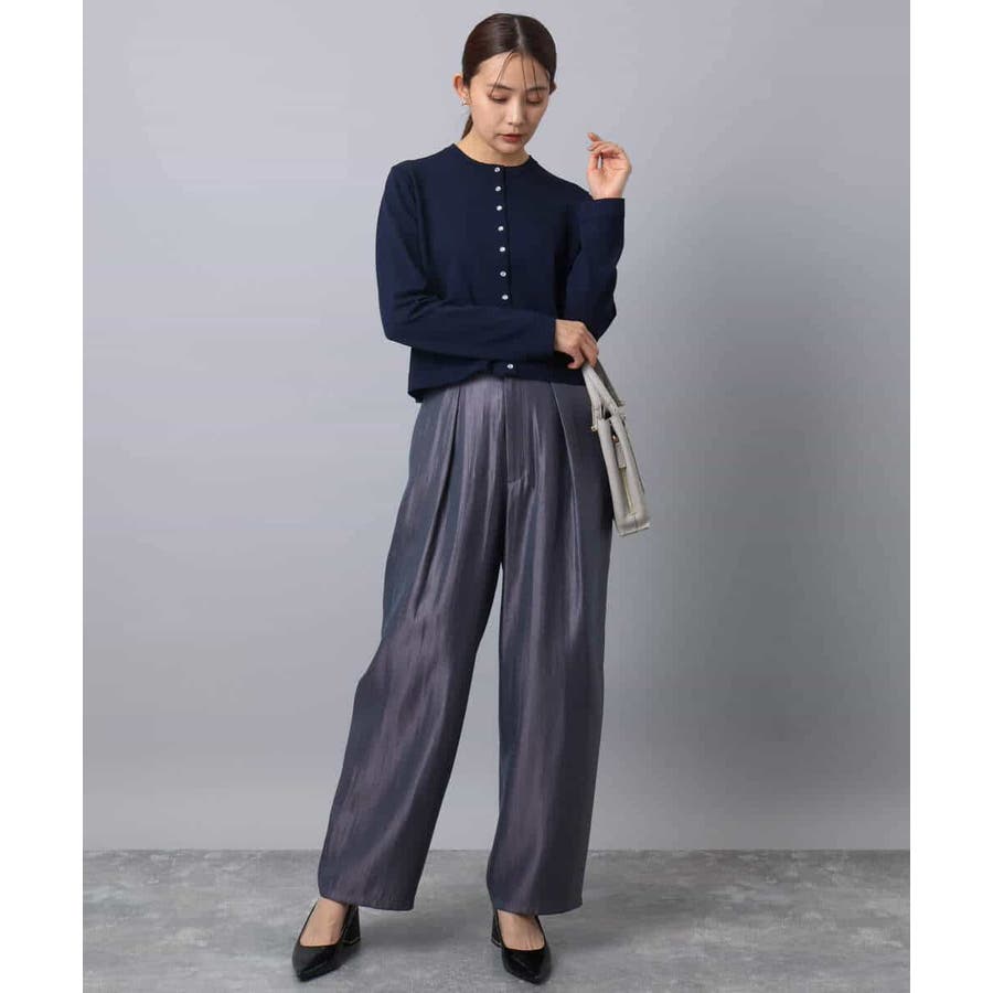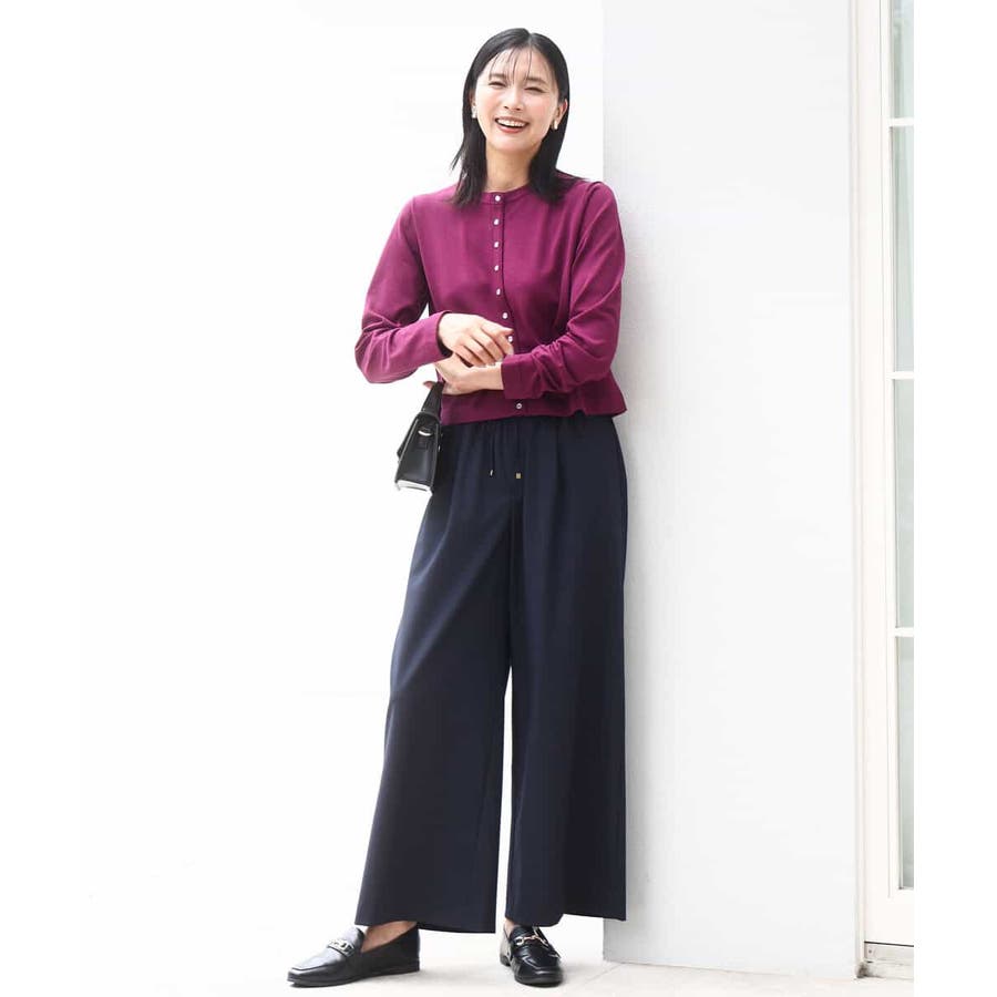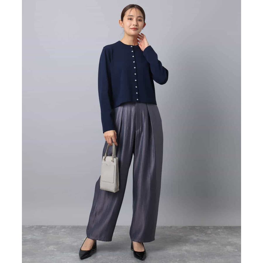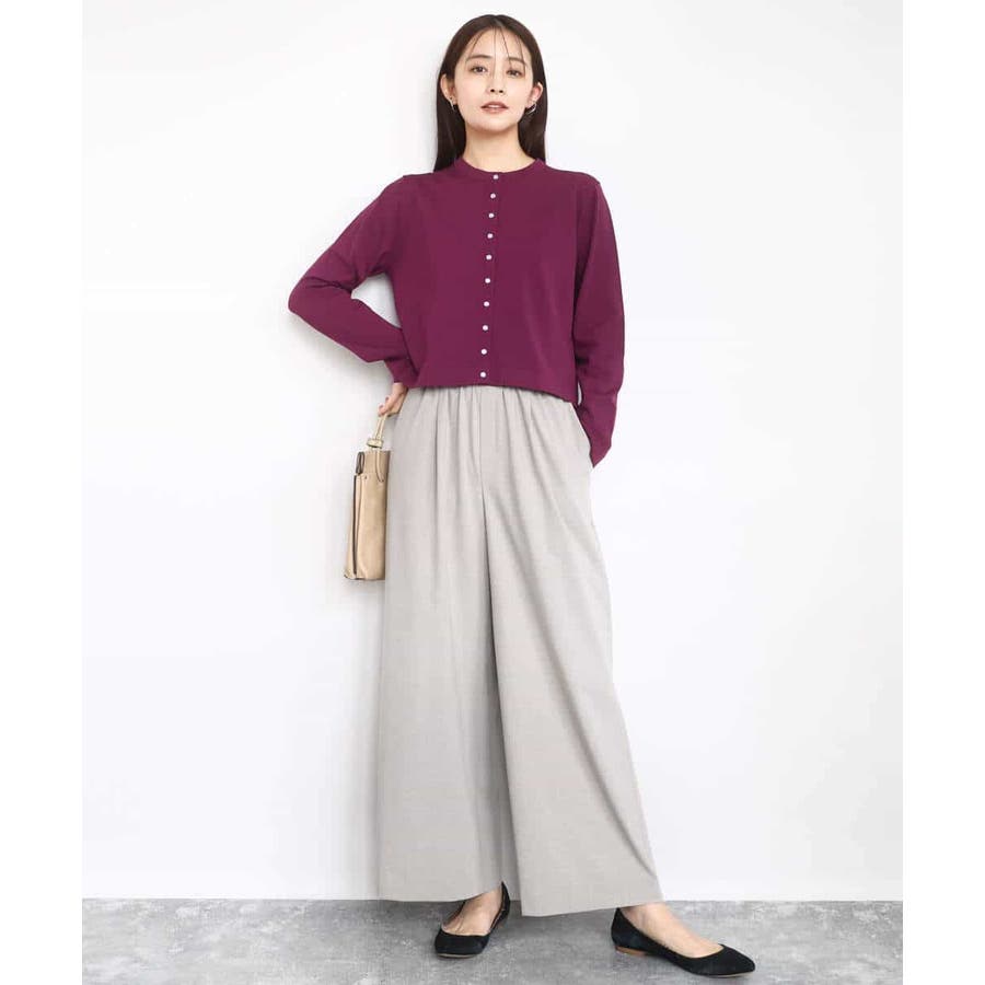 前立てに並んだドット釦がデザインポイントのニットカーディガン。シンプルなクルーネックデザインとコンパクトなサイズ感で、シーンを選ばずに活躍してくれます。