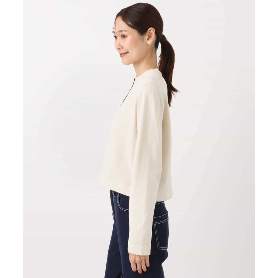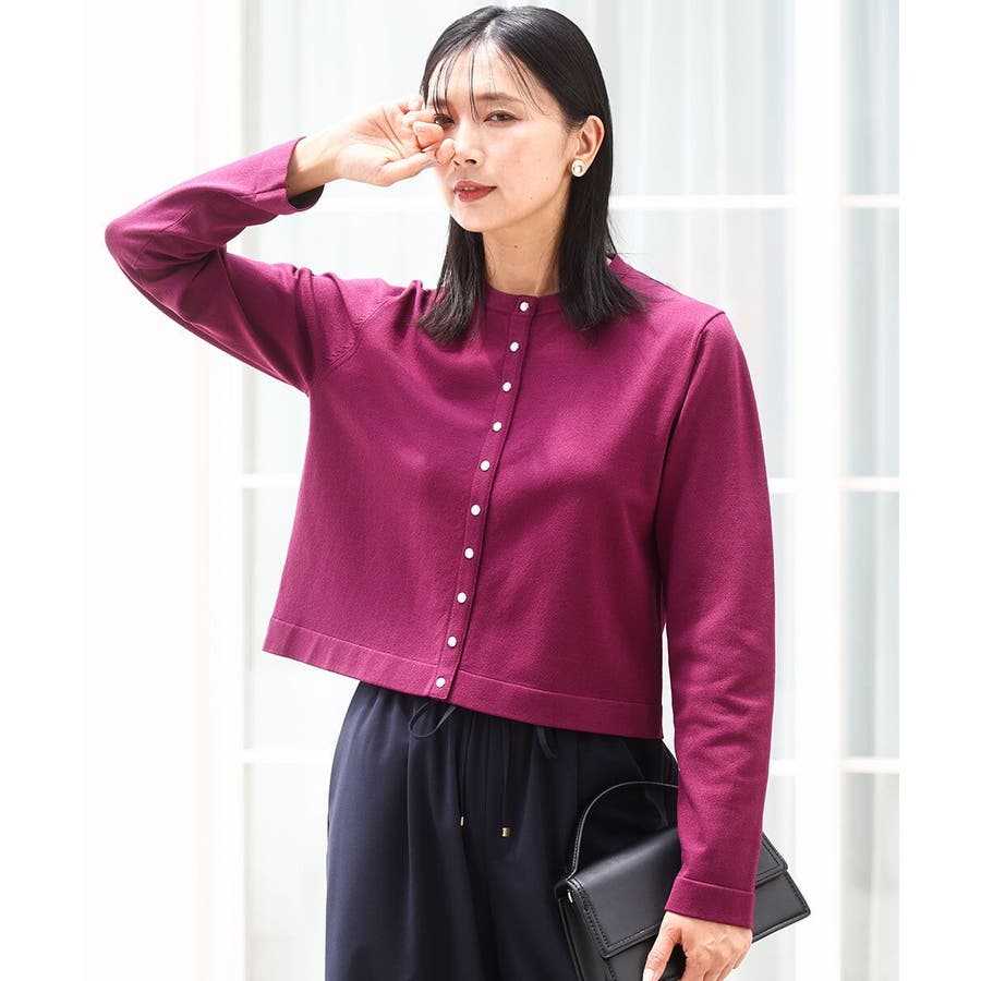 ワンピースやブラウスの上にさっと羽織るのはもちろん、釦を留めてプルオーバーとしての着用もおすすめ。クロップド丈がどんなボトムとの相性良く着こなせます。肩掛けや持ち運びにも重宝してくれそう。
