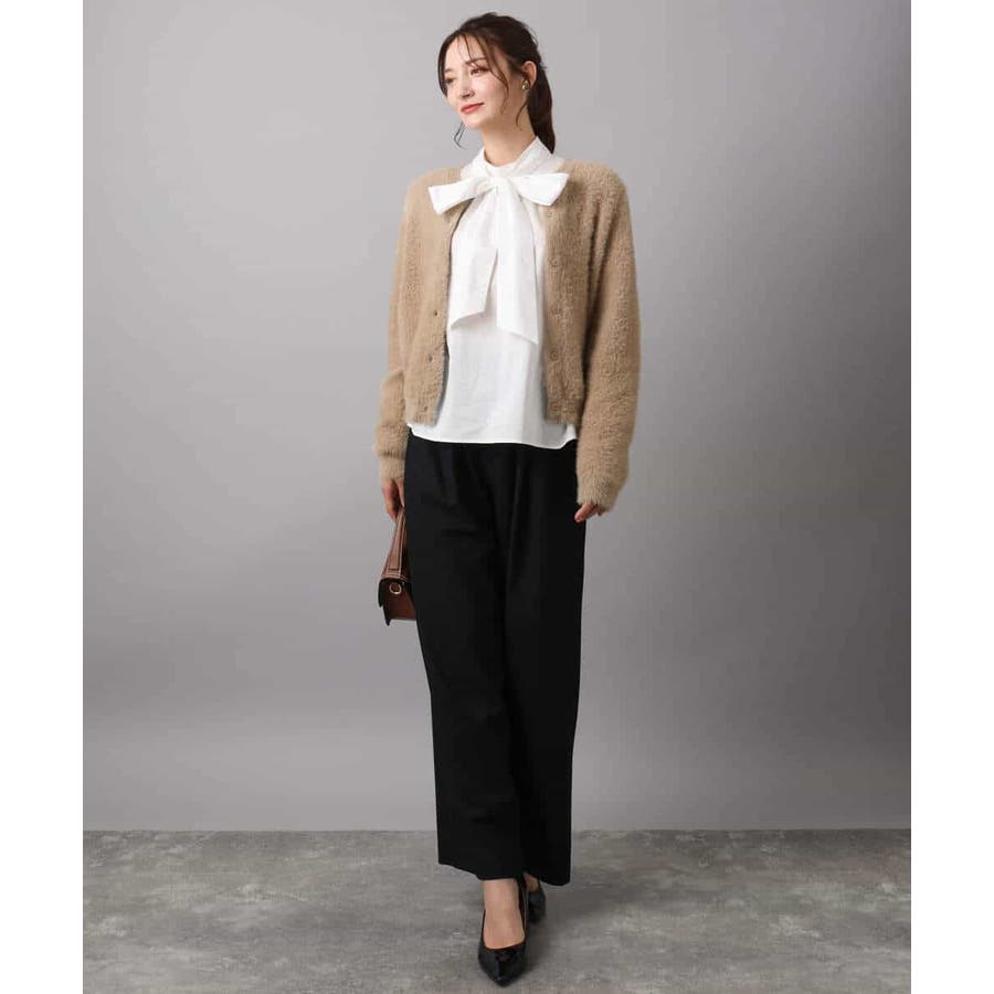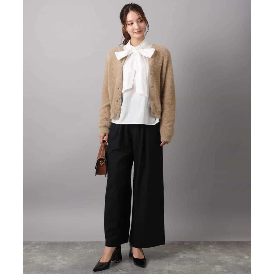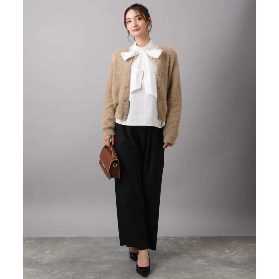 絶妙な着丈は合わせるボトムを選ばず、ワンピース合わせもバランスよく決まります。ボウブラウスい合わせたり、釦を閉めてプルオーバーのように着こなすのもおすすめ。