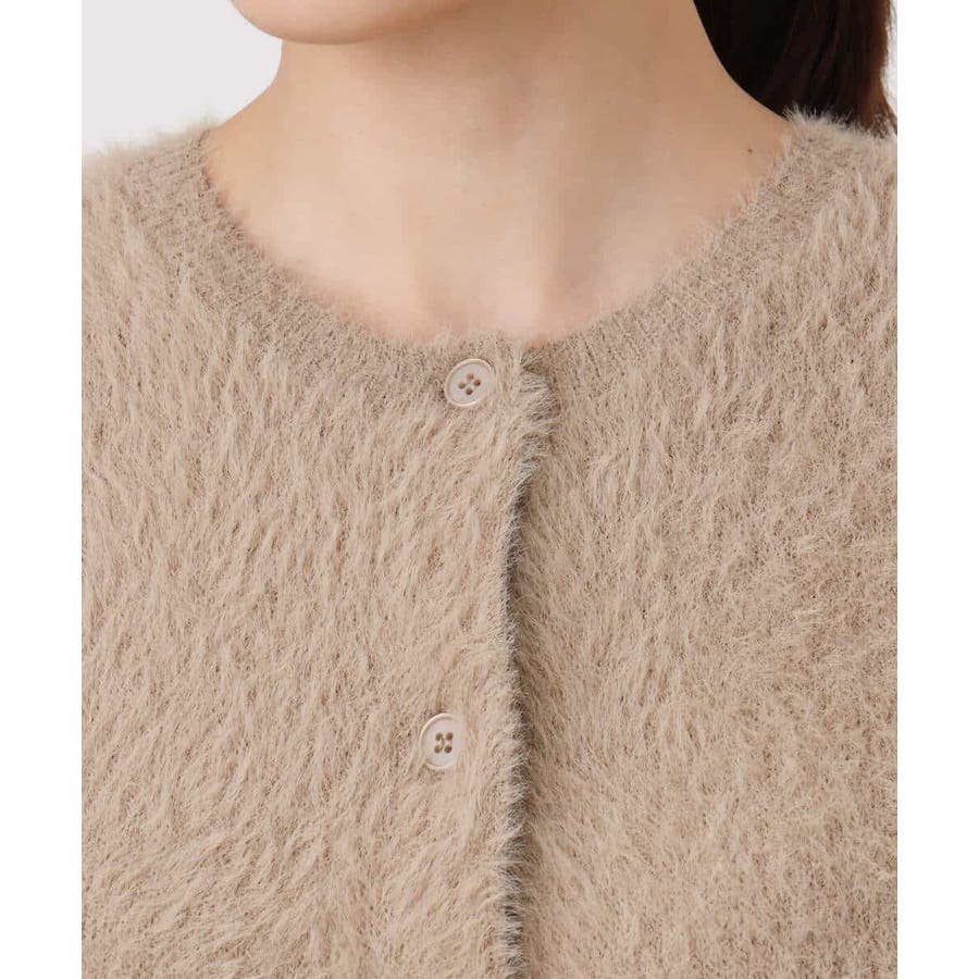 シーズンムードを高めてくれるシャギーニットカーディガン。Wフェイスの編地で垂れ感と型崩れを軽減してくれます。何にでも合わせやすいベーシックな形とコンパクトな丈感。