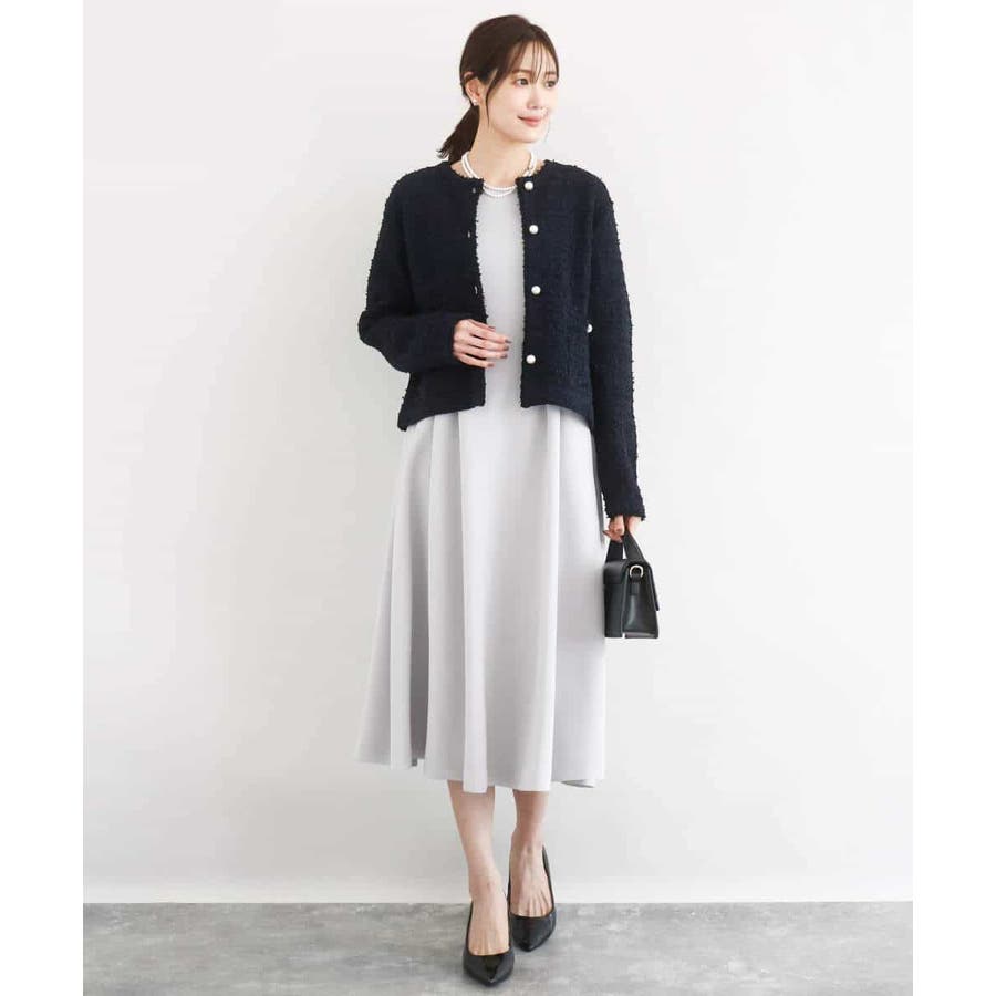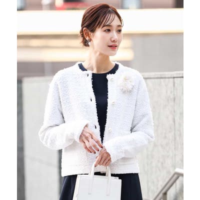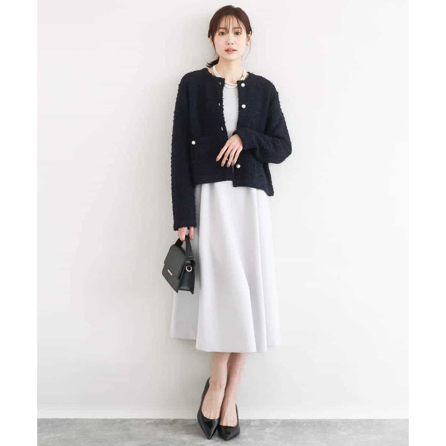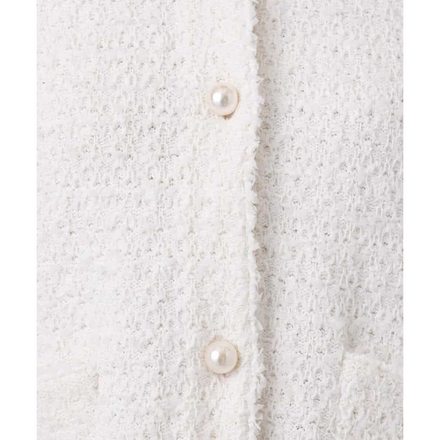 オン・オフで着られるニットツイードカーディガン。しっかりと肉感があるので、カーディガンながらジャケット見えも叶えてくれる一枚。大きなパールボタンが上品な雰囲気を演出しており、普段はもちろん、フォーマルシーンにも最適です。手軽に着られるので一枚もっていると重宝すること間違いなしです。ニット特有のチクチク感もなく着られるので、羽織りとしてはもちろん、一枚でプルオーバーのように着こなすのもおすすめです◎