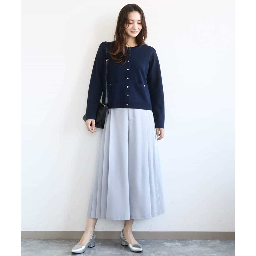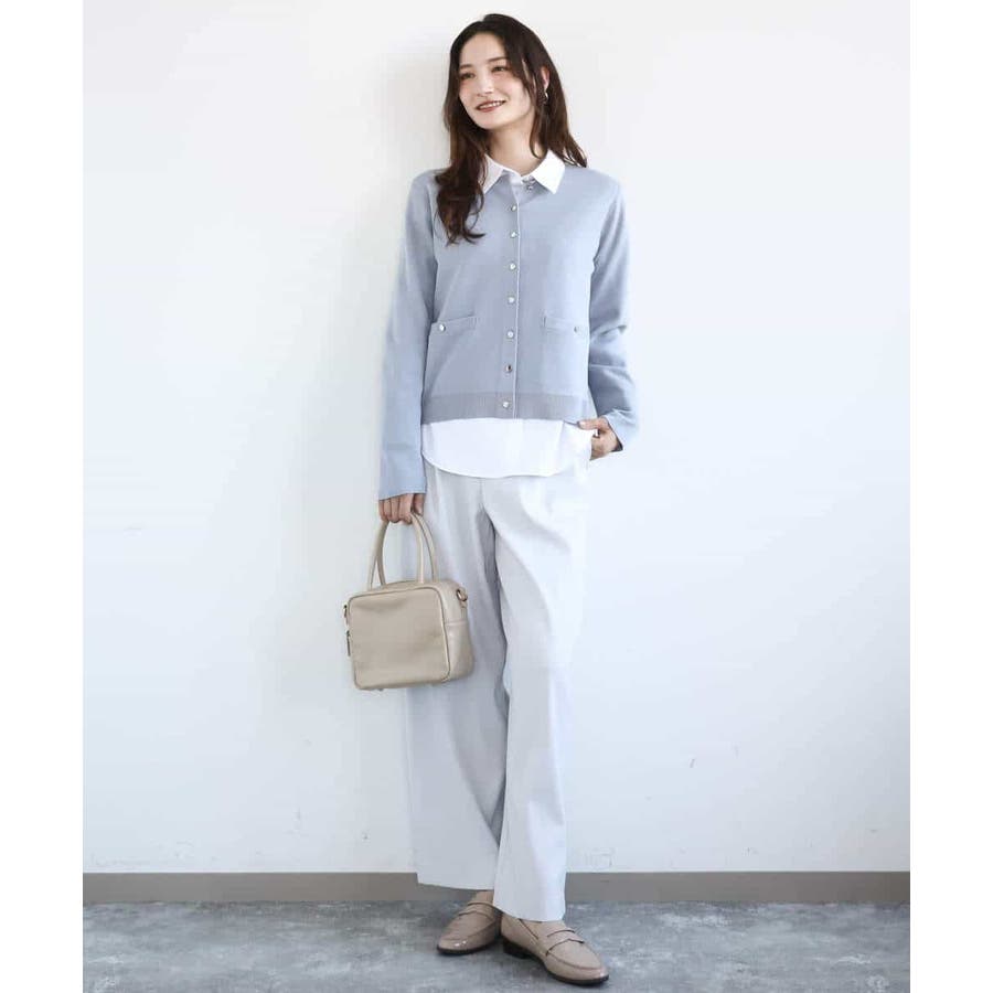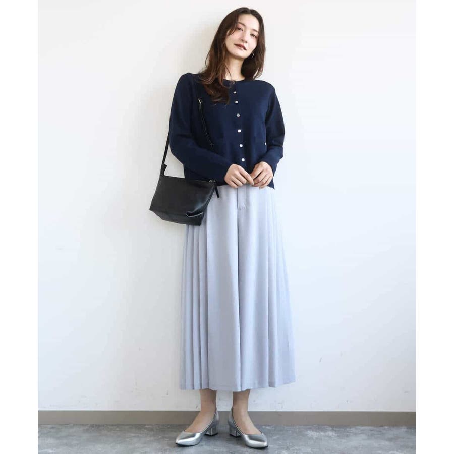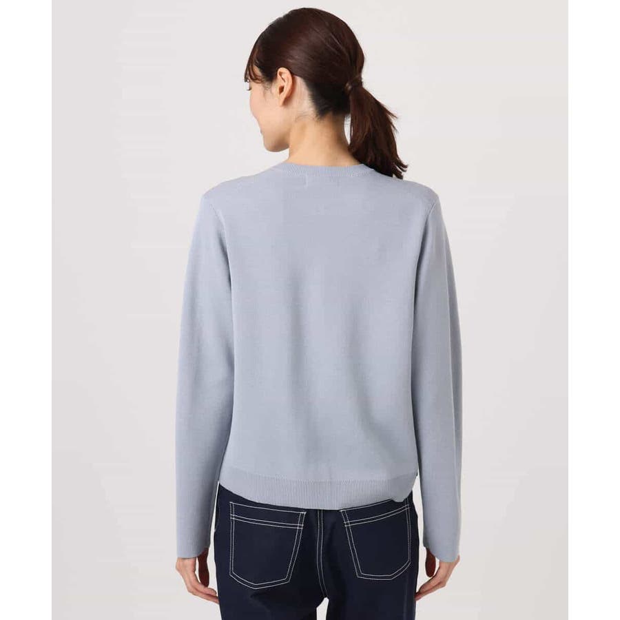 きれいめな目面のニットはさらりとした着心地。程よい肉感もありシーズンレスで着こなしやすい素材感です。