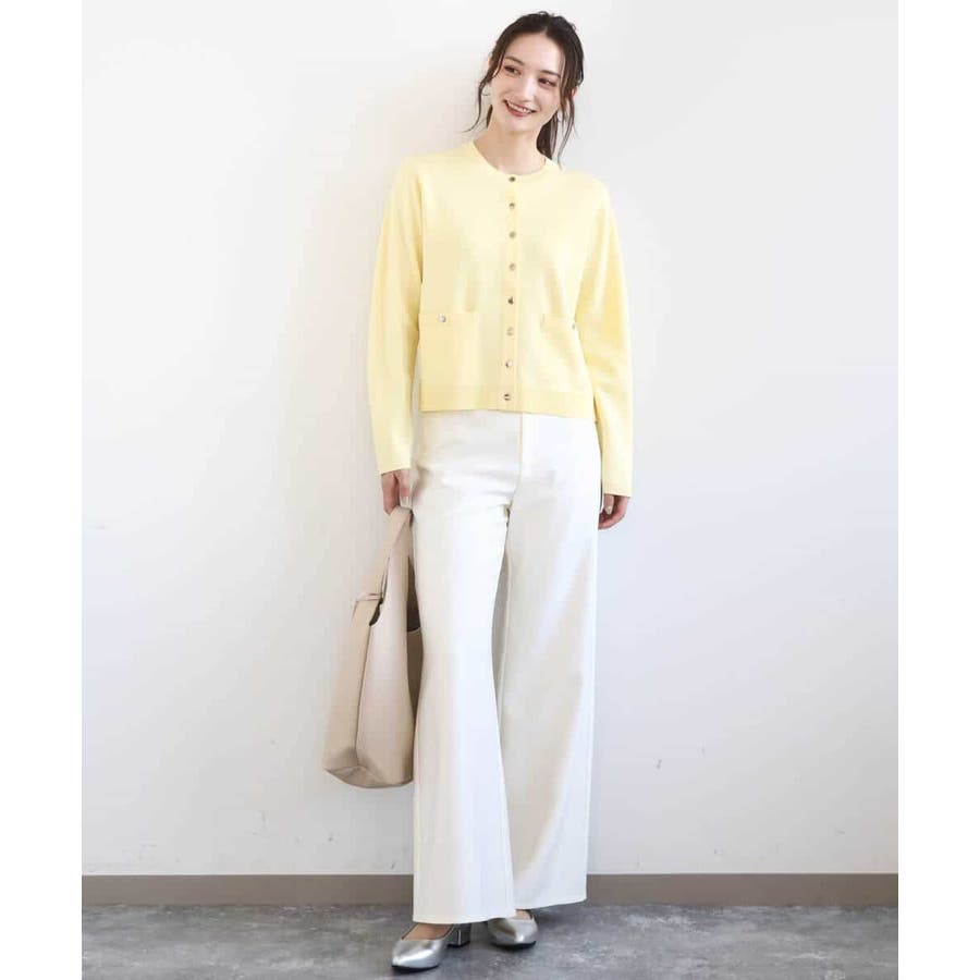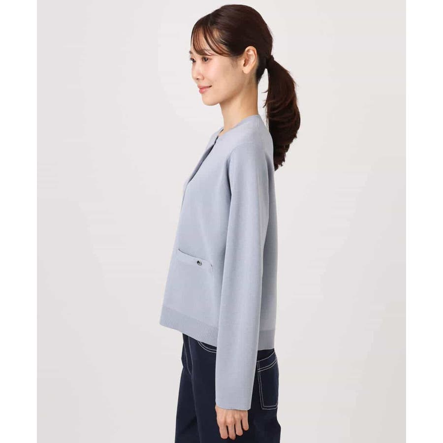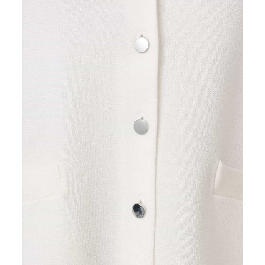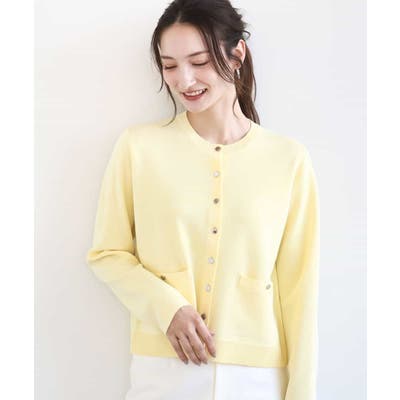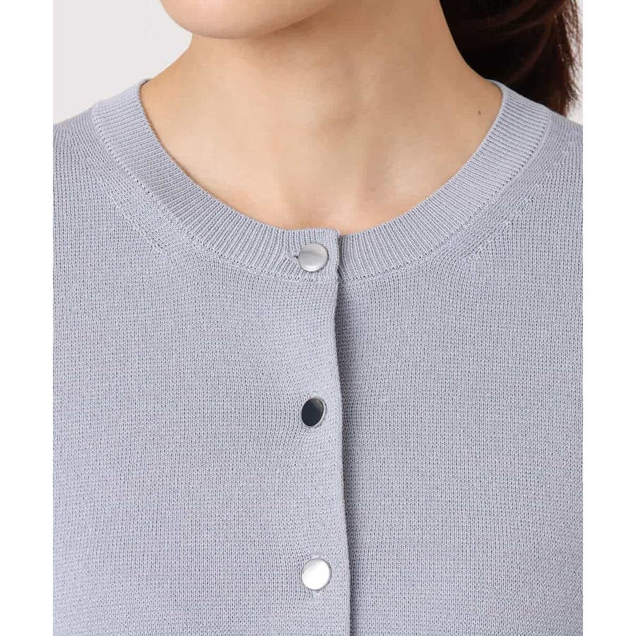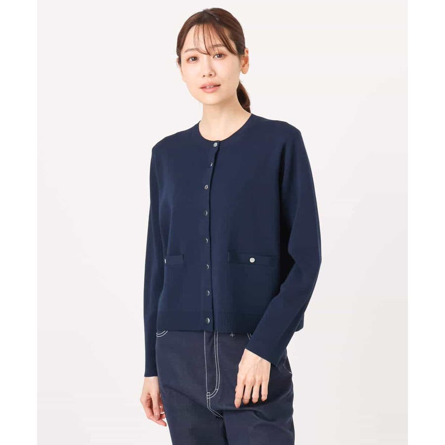 コンパクトな着丈にすっきりとしたシルエットがきちんとさのあるニットカーディガン。ジャケットライクなポケットディティールやシルバーの小さめなメタル釦を並べたデザインはフレンチなイメージにもぴったり。