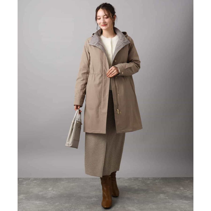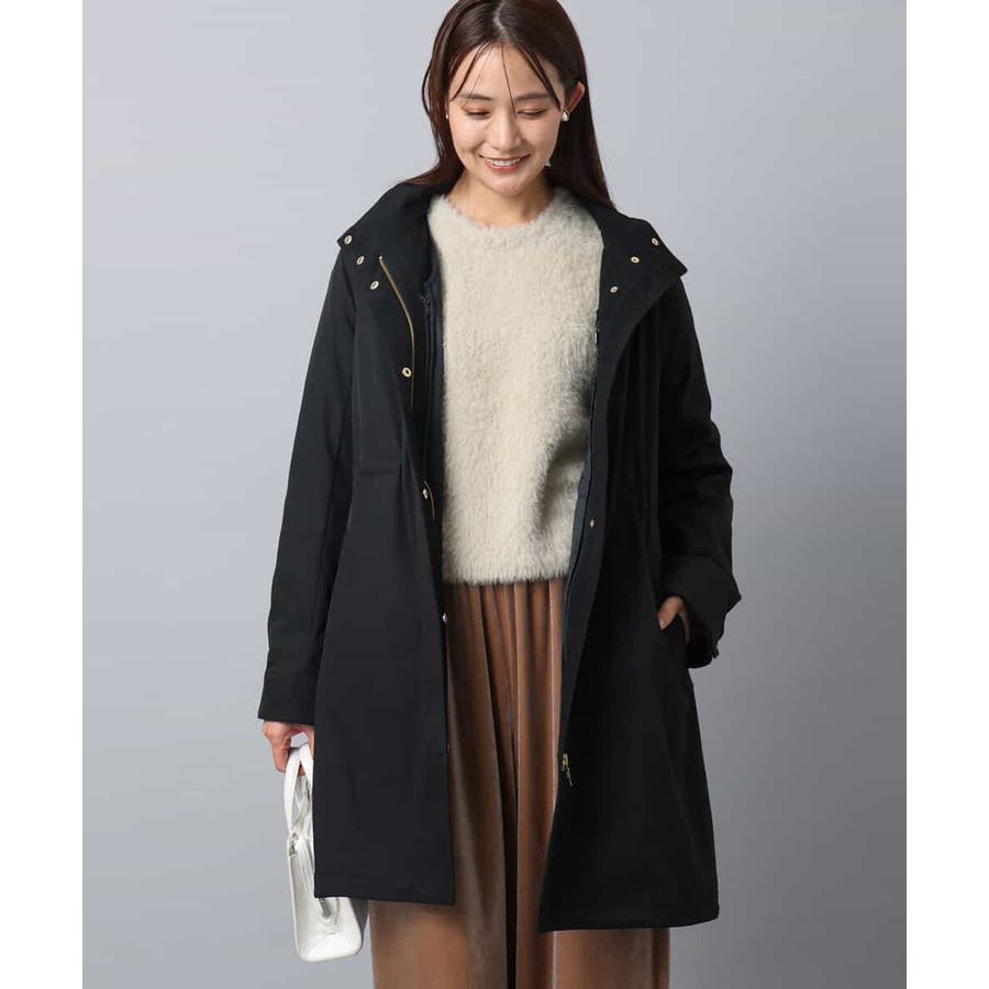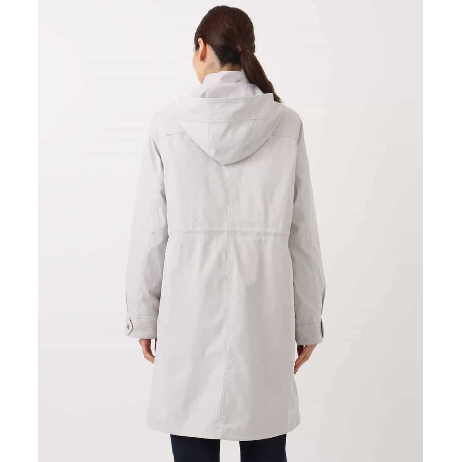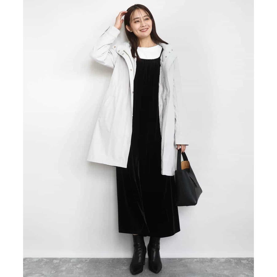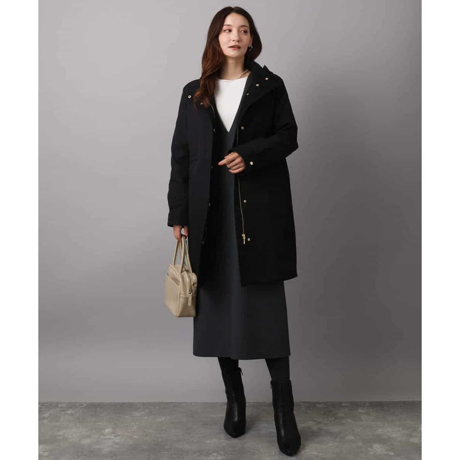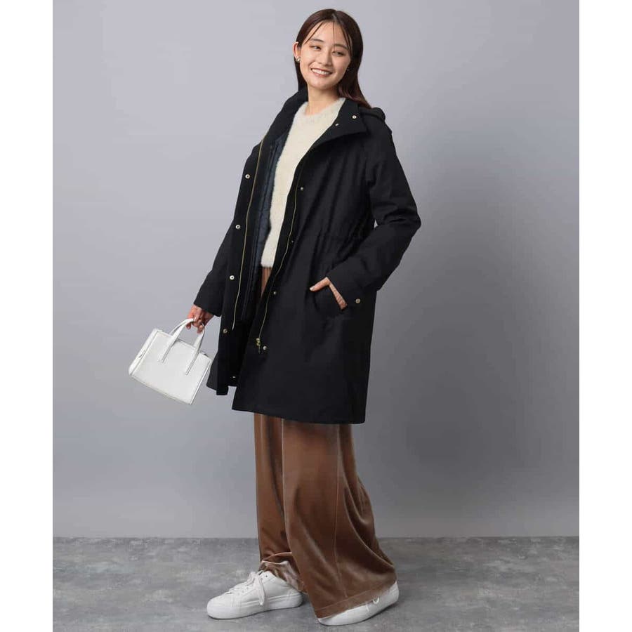 取り外し可能なフードデザインは、コーディネートに合わせて使い分けて。膝丈で着こなせる長めの着丈はパンツにもスカートにもボトムを選ばず着回せます。