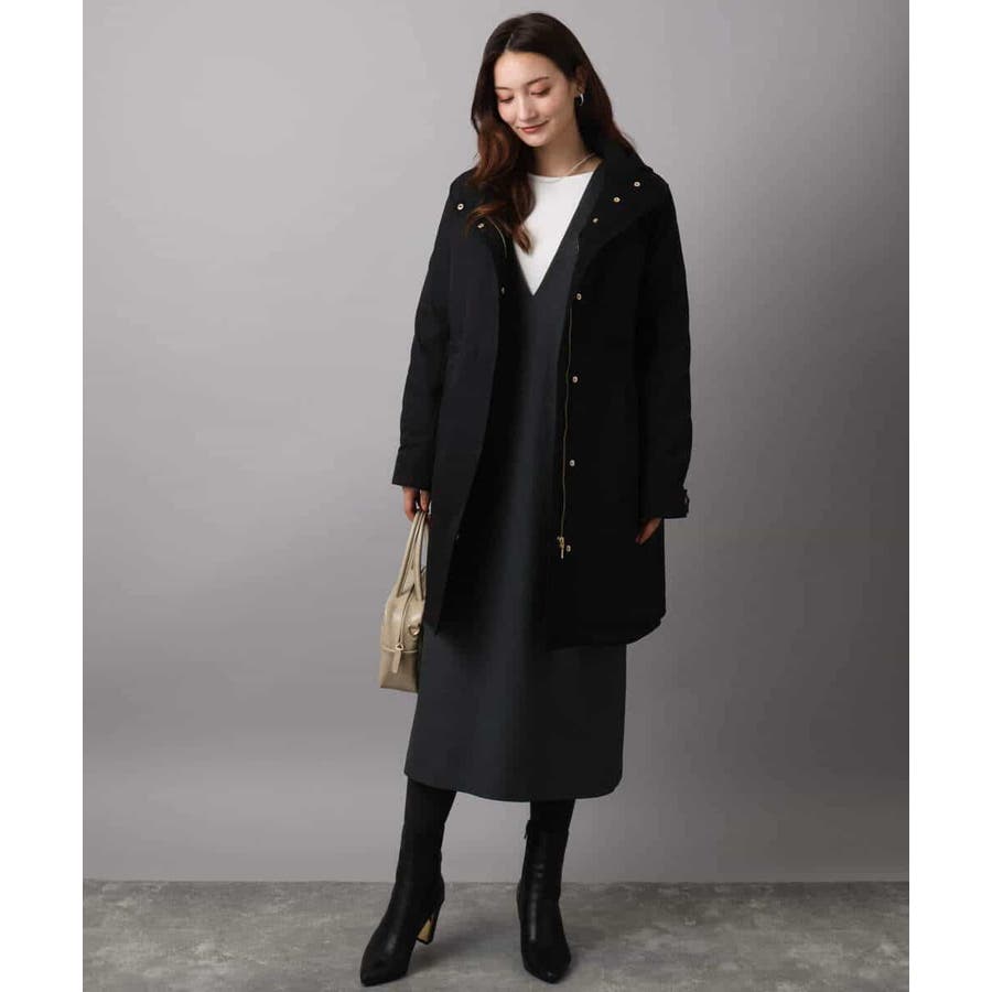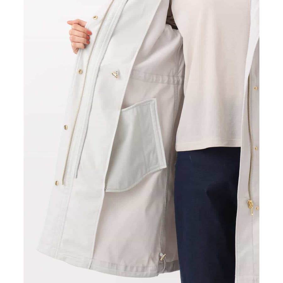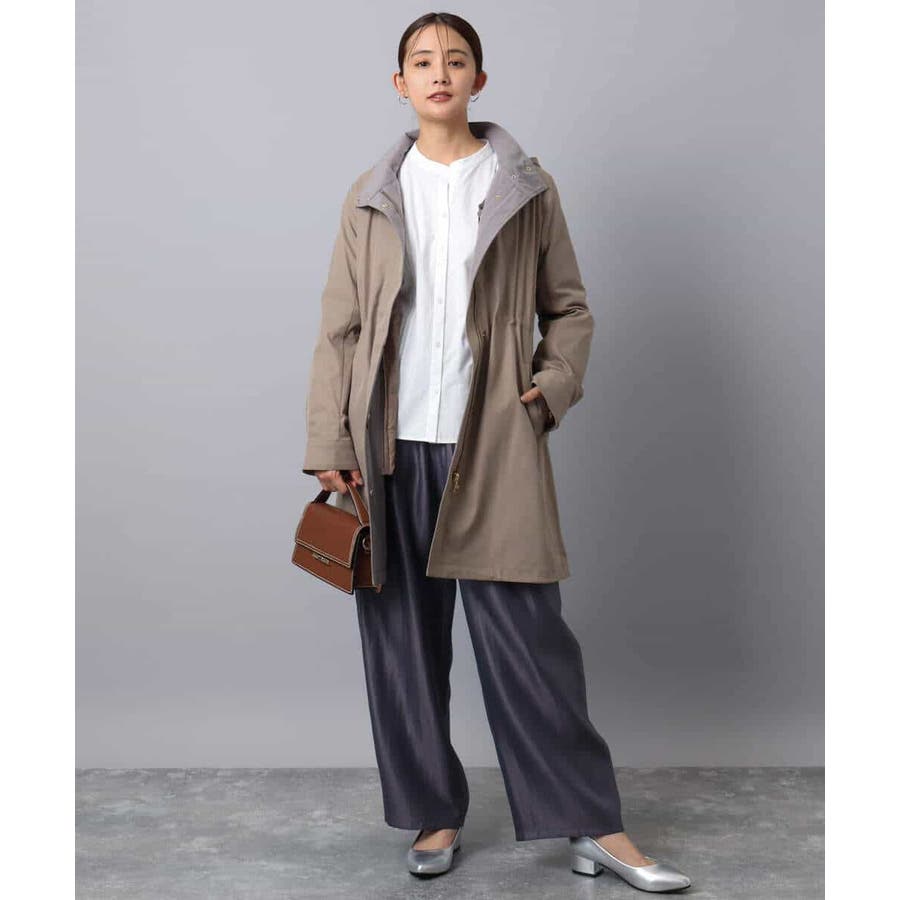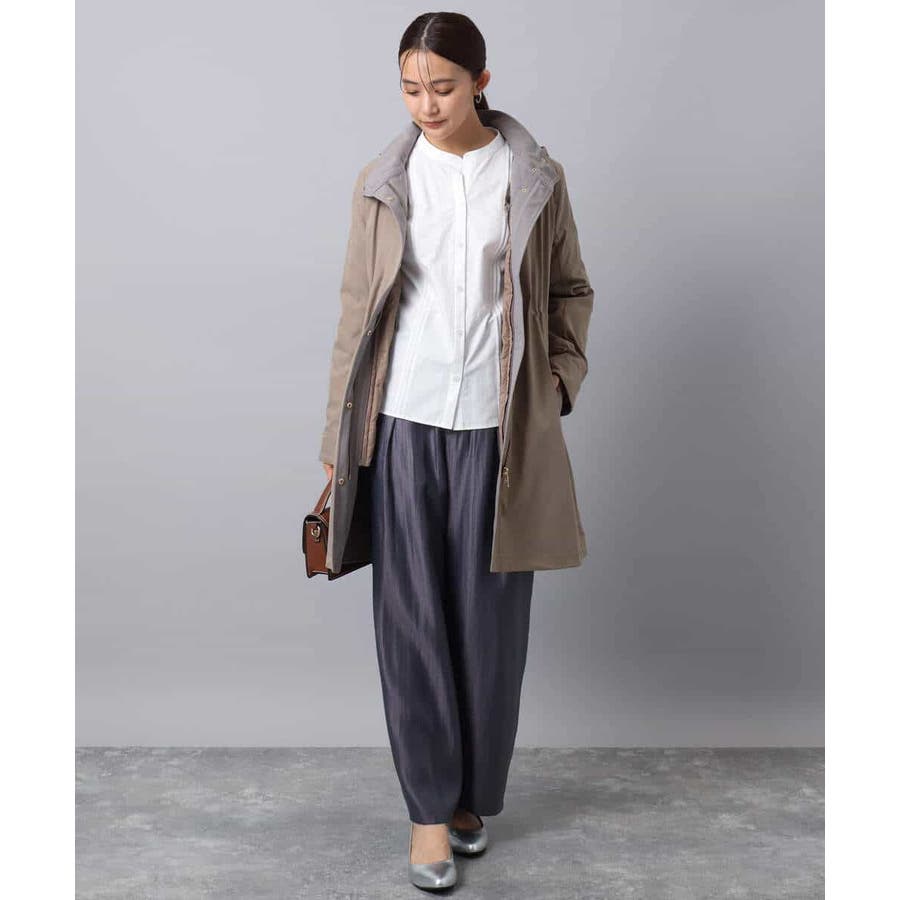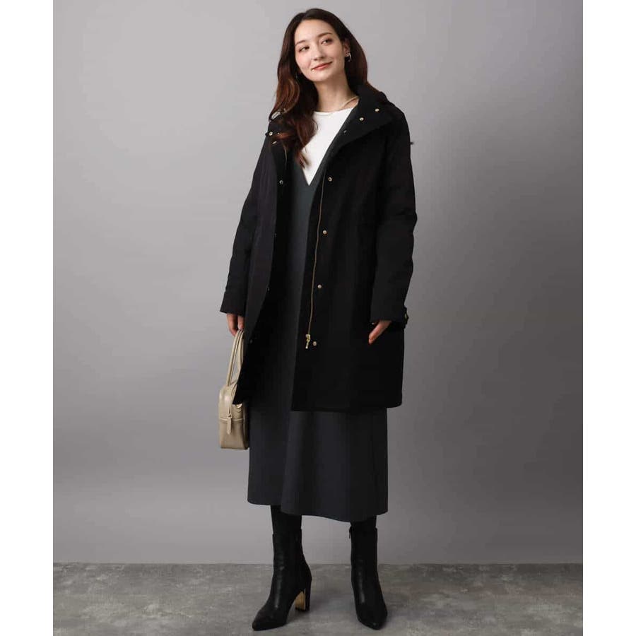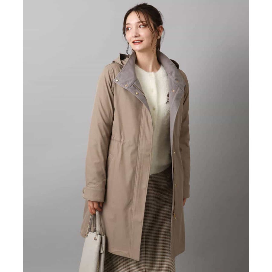 取り外し可能なフードデザインは、コーディネートに合わせて使い分けて。膝丈で着こなせる長めの着丈はパンツにもスカートにもボトムを選ばず着回せます。
