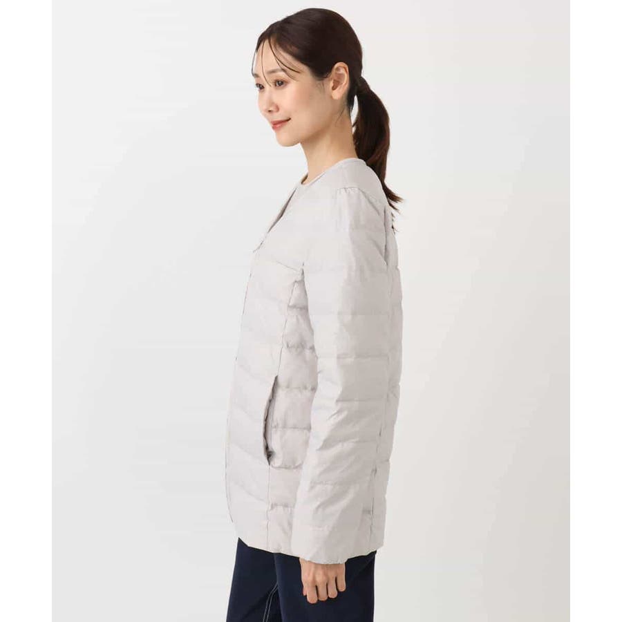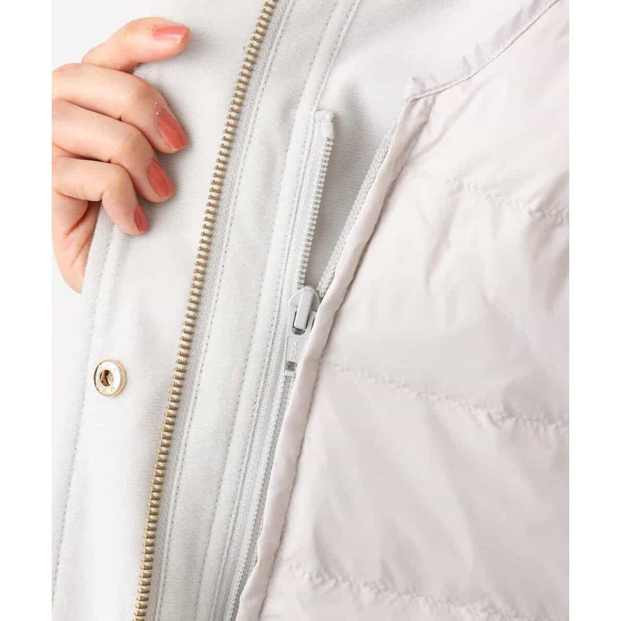 インナーのダウン単体でも着用可能なモッズコート。サイズ感を見直し、着た時のすっきりな見た目はそのままに、少しゆとりを入れ窮屈さを緩和しました。またフードの形状も見直し、きれいに立ち上がるパターンに。裾にもスピンドルを入れ、立体的なシルエットにもできるようにし、ポケットの袋布もこれまでより大きくするなど、細かなところにもこだわりました。首元周りの見返し(肌側)とポケットの袋布に起毛の別素材を使用し、より暖かく感じられるデザインに。首元周りの起毛素材をたっぷりと広範囲にあしらうことでさらに暖かみがアップしました。インナーダウンが付いていても、あまり膨らみすぎないよう仕上げたモッズコートは、秋冬春と3シーズンで活躍してくれるはず。Vネックのインナーダウンも手持ちの他のコートとも合わせて着用いただけます。ライナーだけで着用した時も、これまでと比べてゆったりとした着心地になっています。